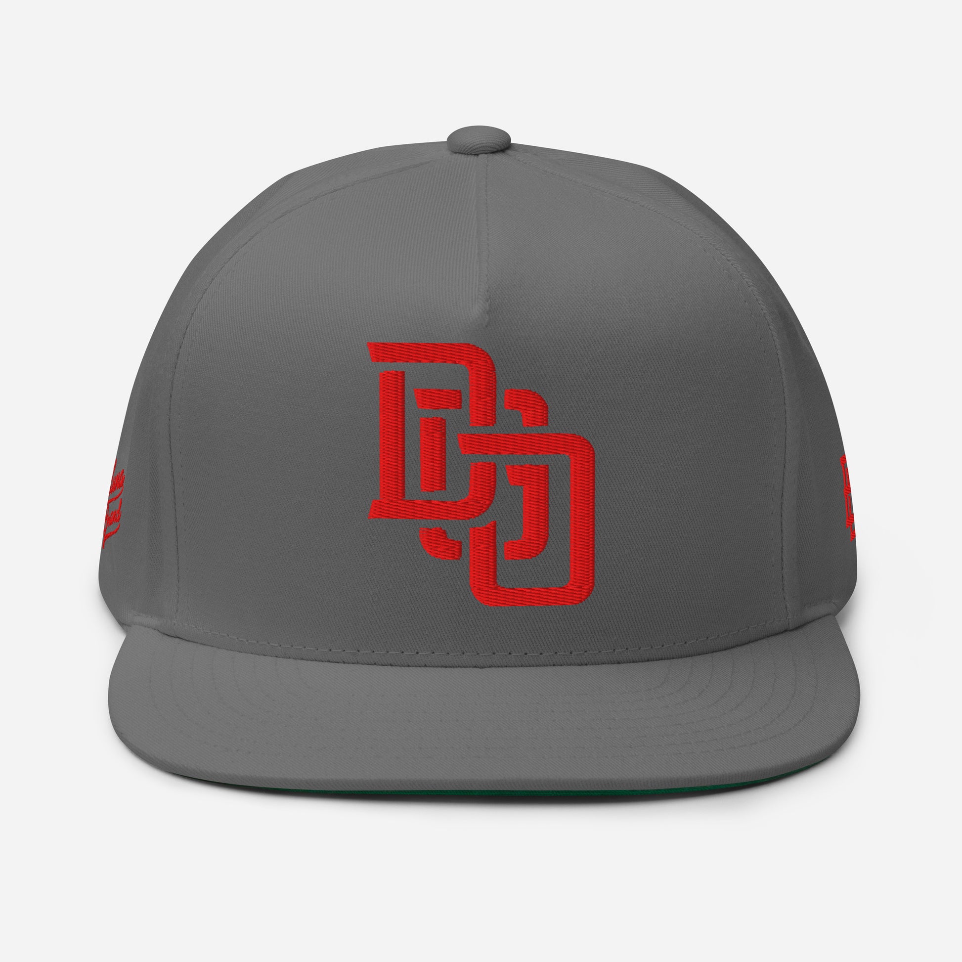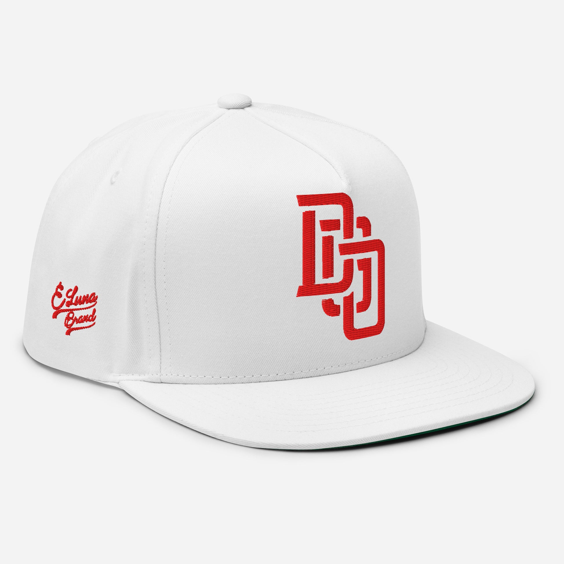 "DGO" Flat Bill Cap | Yupoong 6007 | E Luna Brand PREMIUM Quadcrest 4 Red Thread Logos: Front, Left, Right Signature & Back [3D Puff Edition]