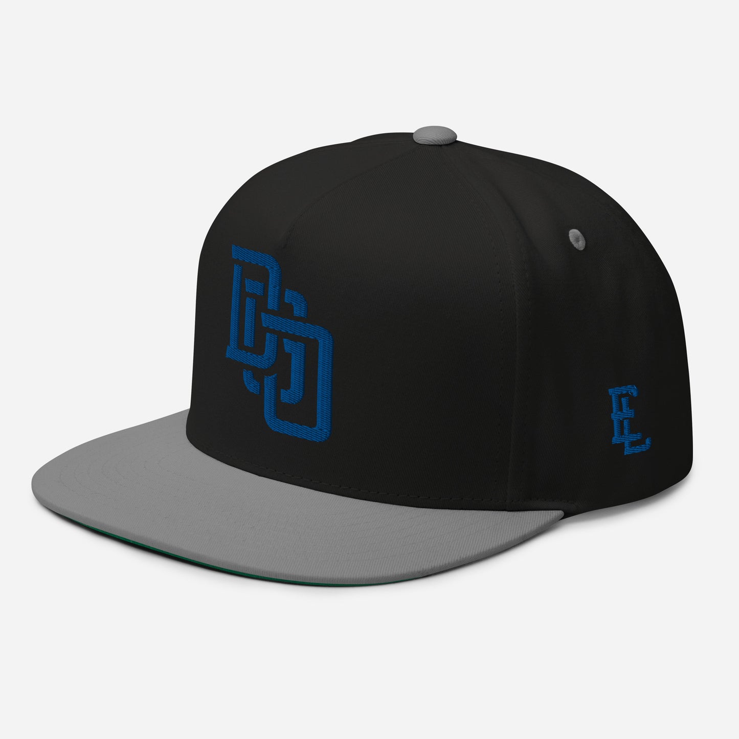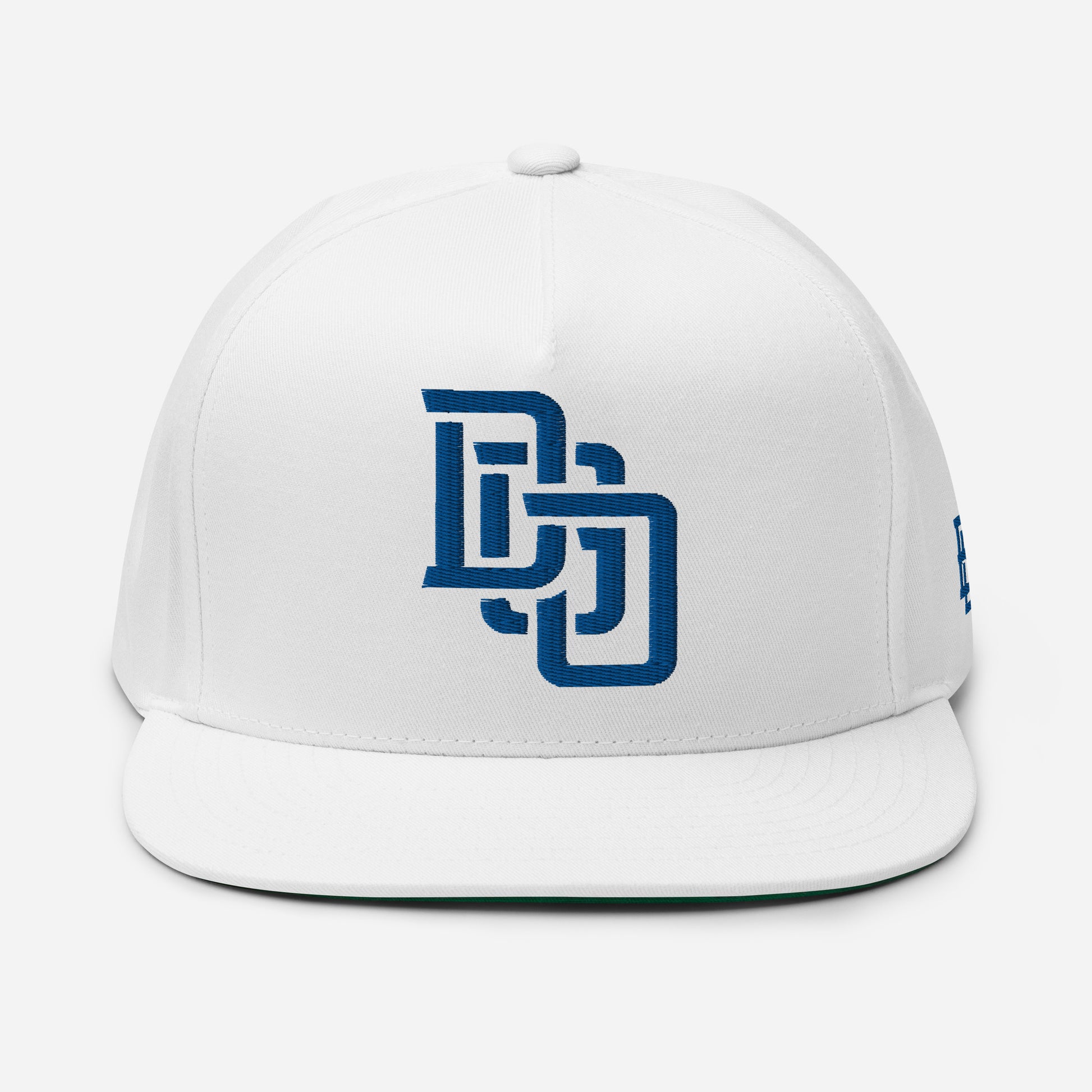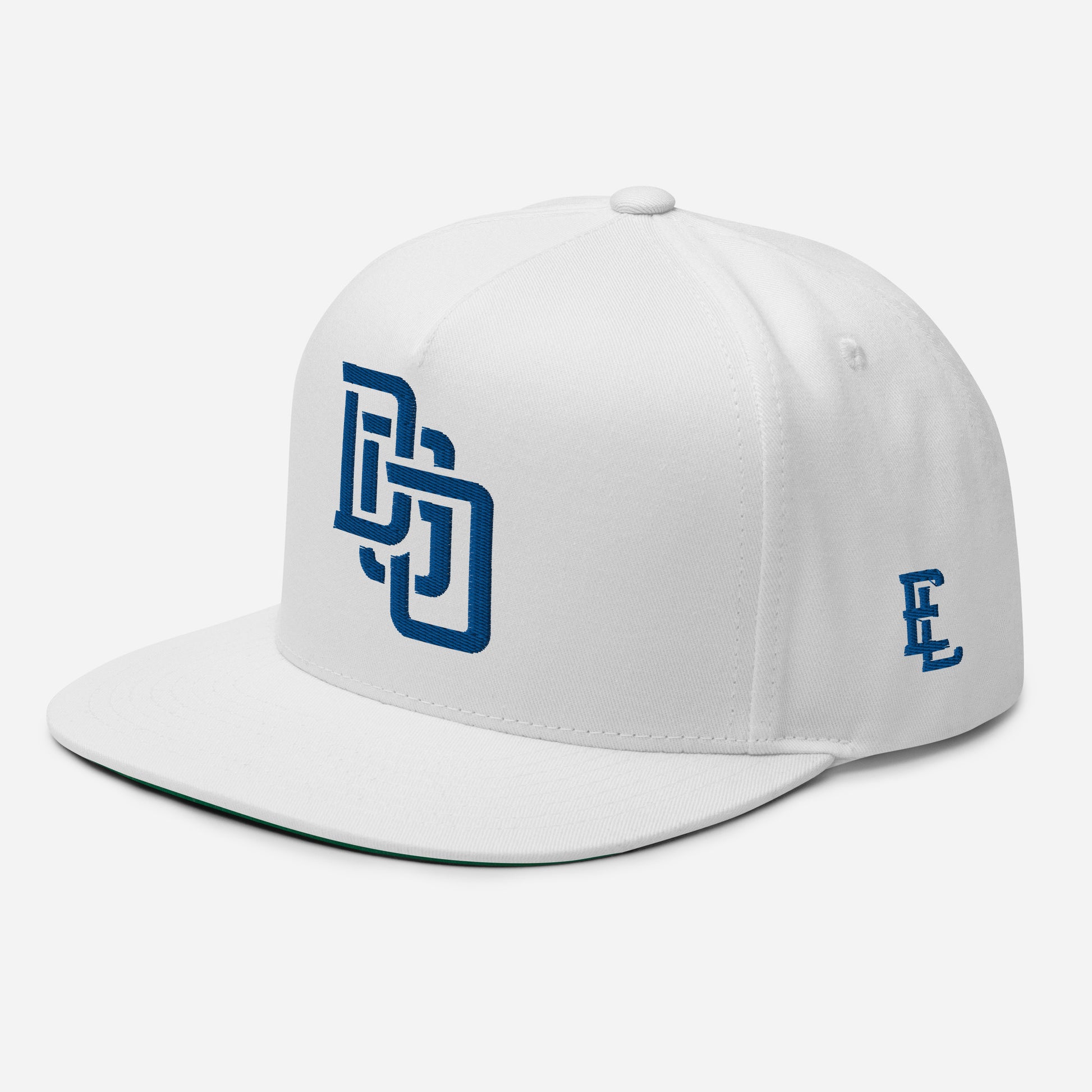 "DGO" Flat Bill Cap | Yupoong 6007 | E Luna Brand ESSENTIAL Duocrest 2 Royal Thread Logos: Front & Left