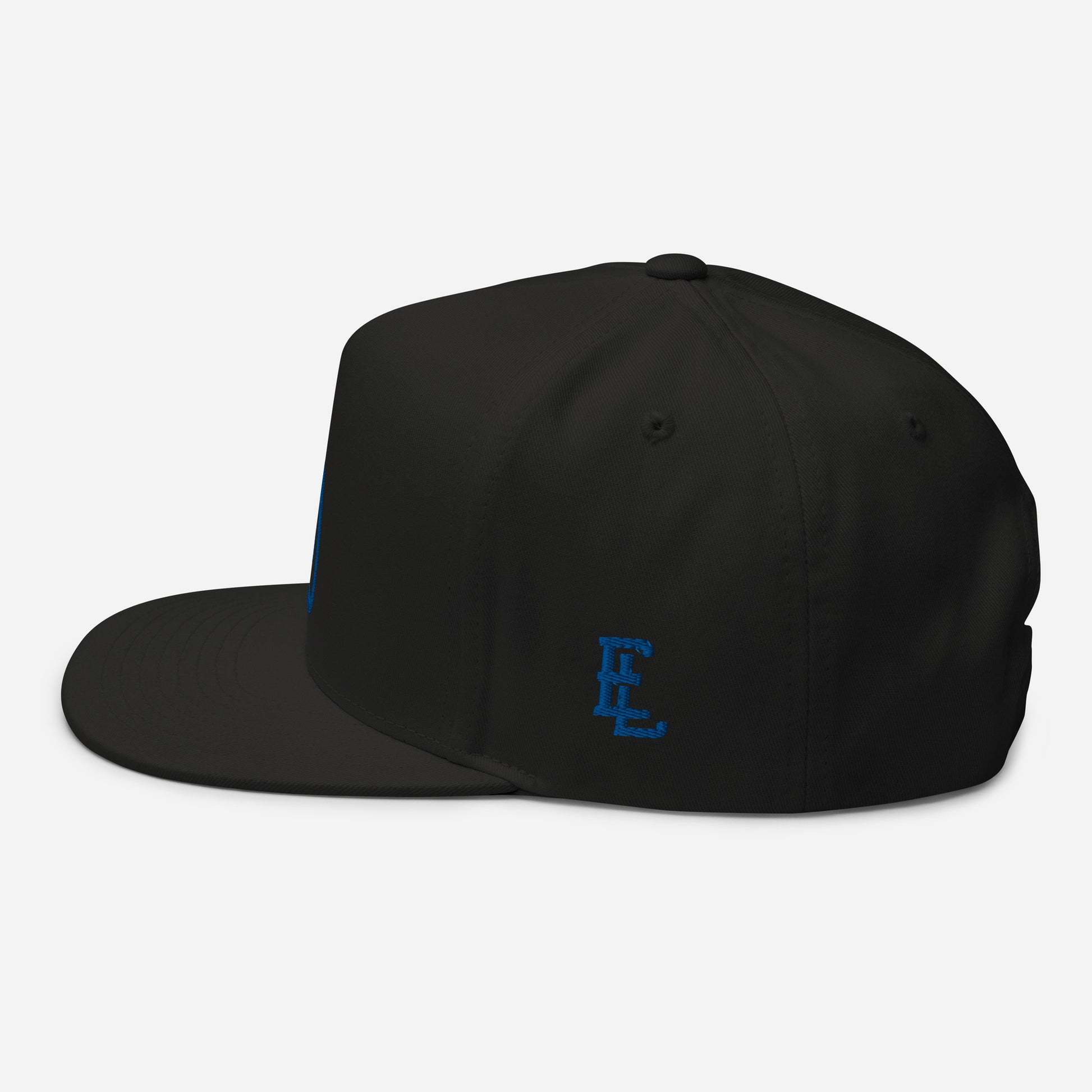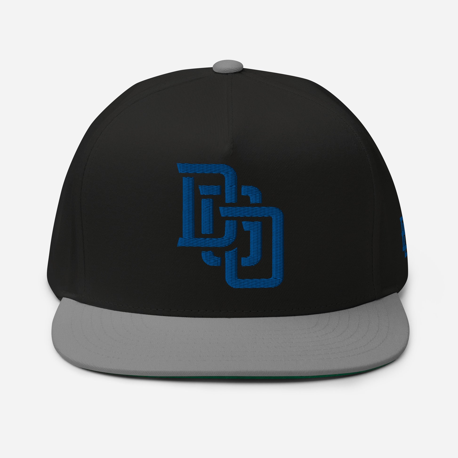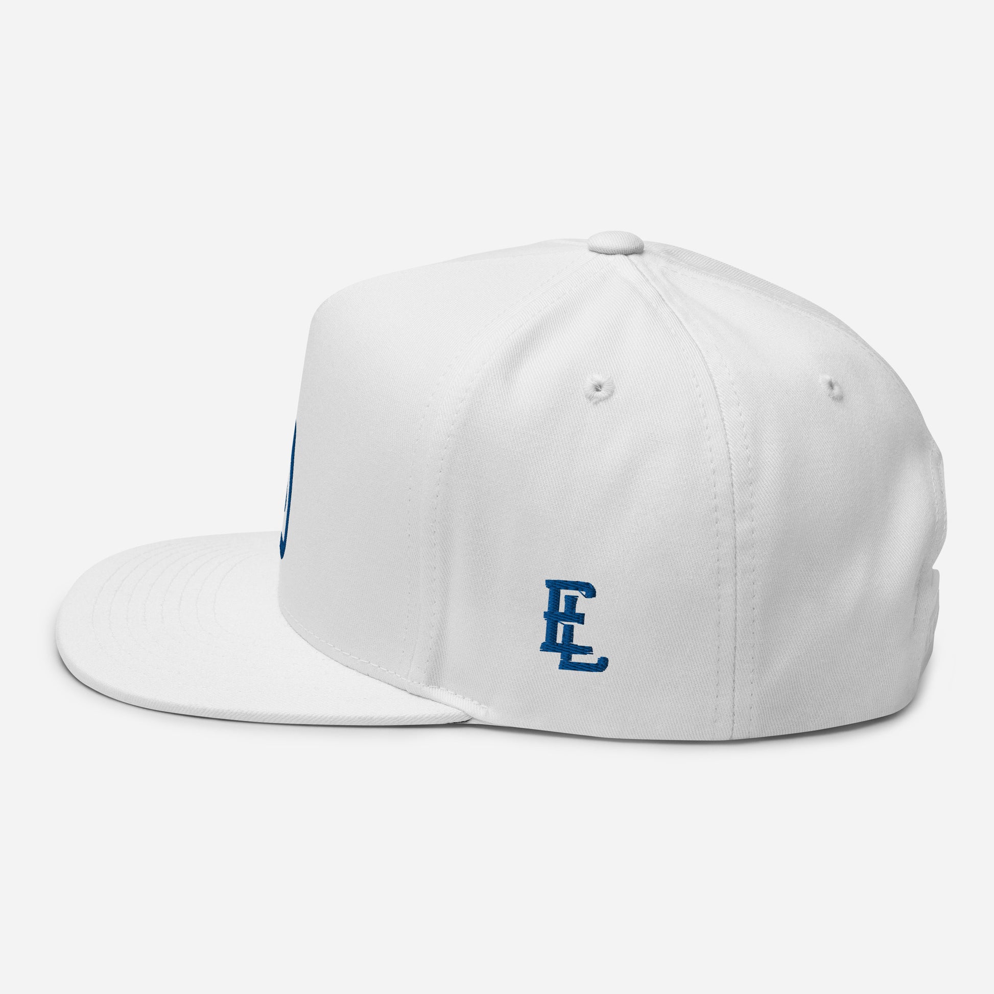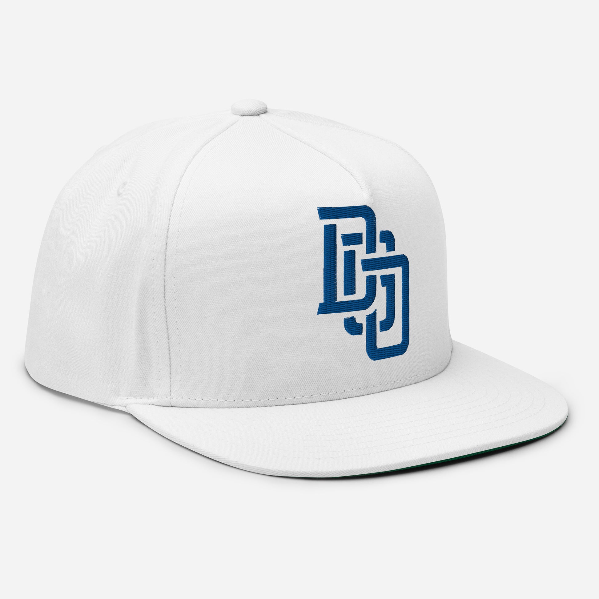 "DGO" Flat Bill Cap | Yupoong 6007 | E Luna Brand ESSENTIAL Duocrest 2 Royal Thread Logos: Front & Left