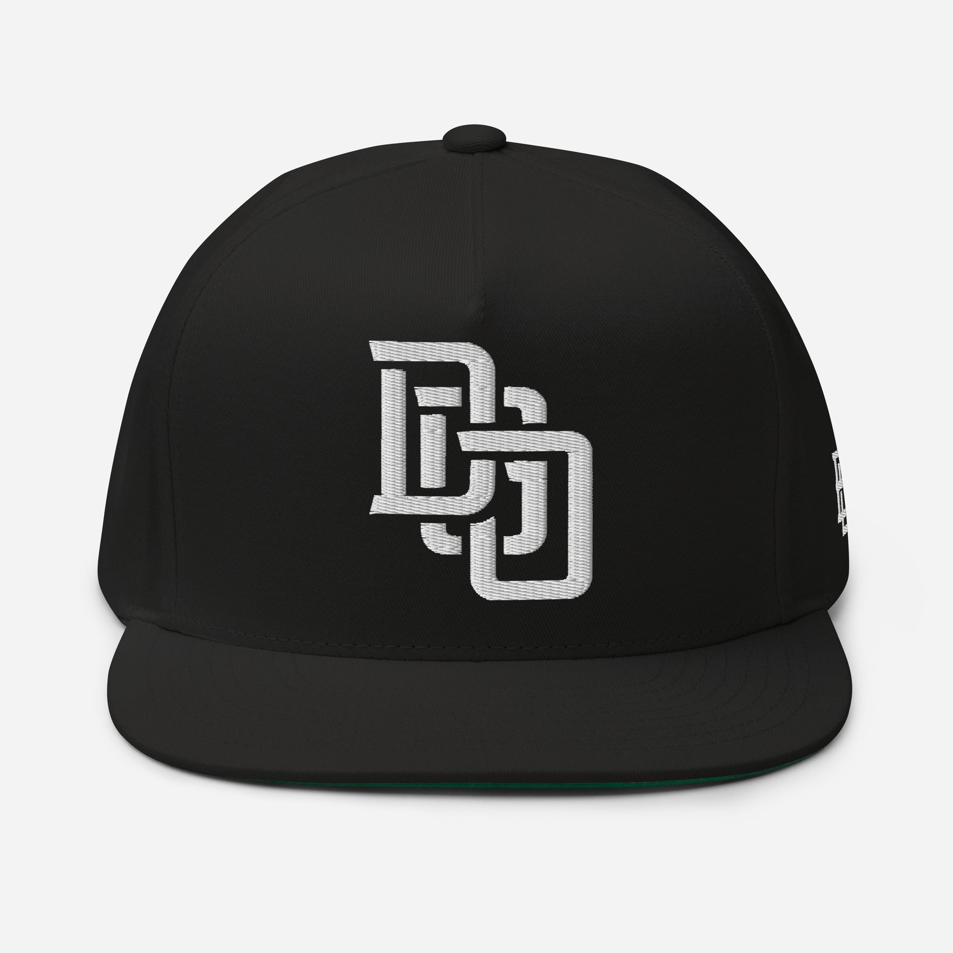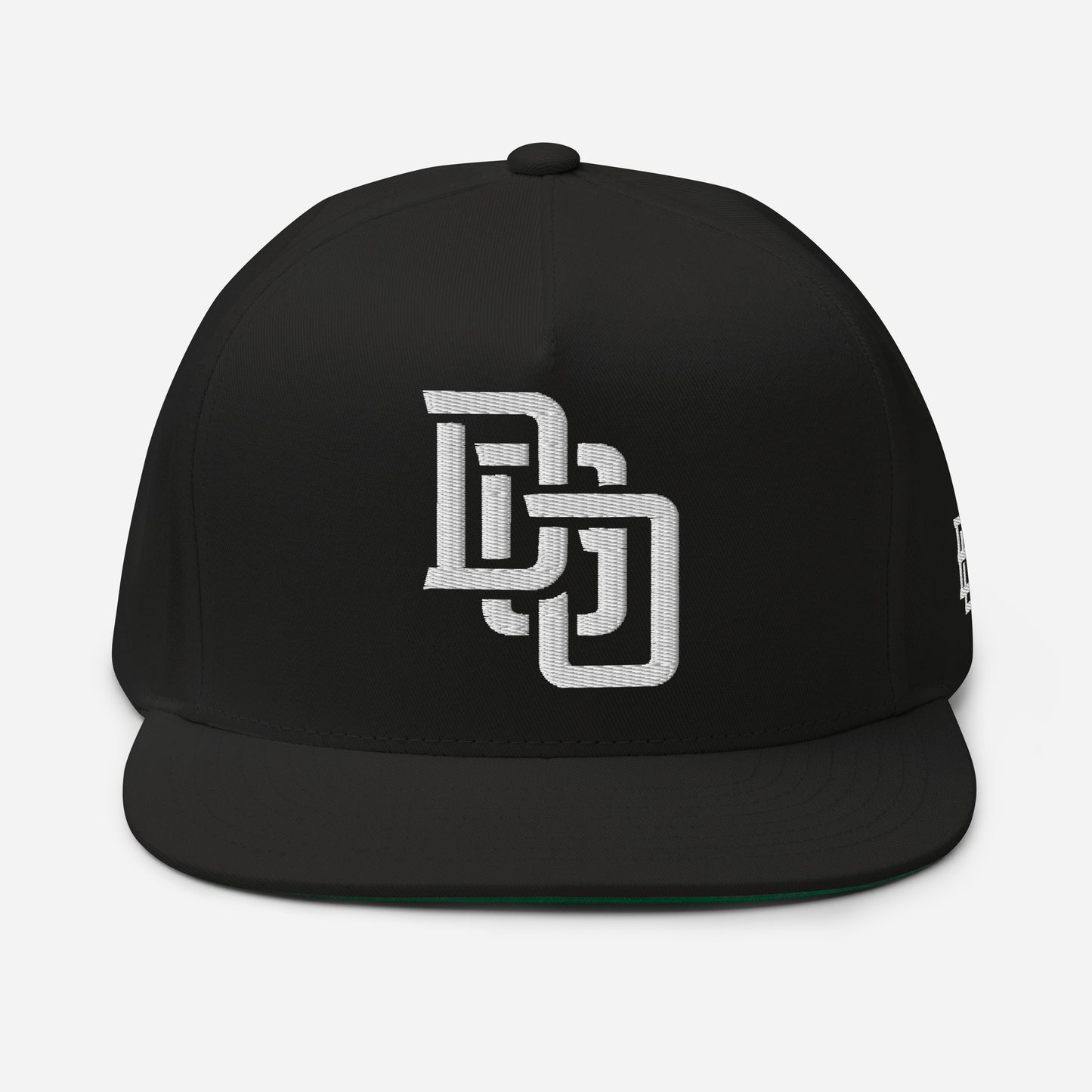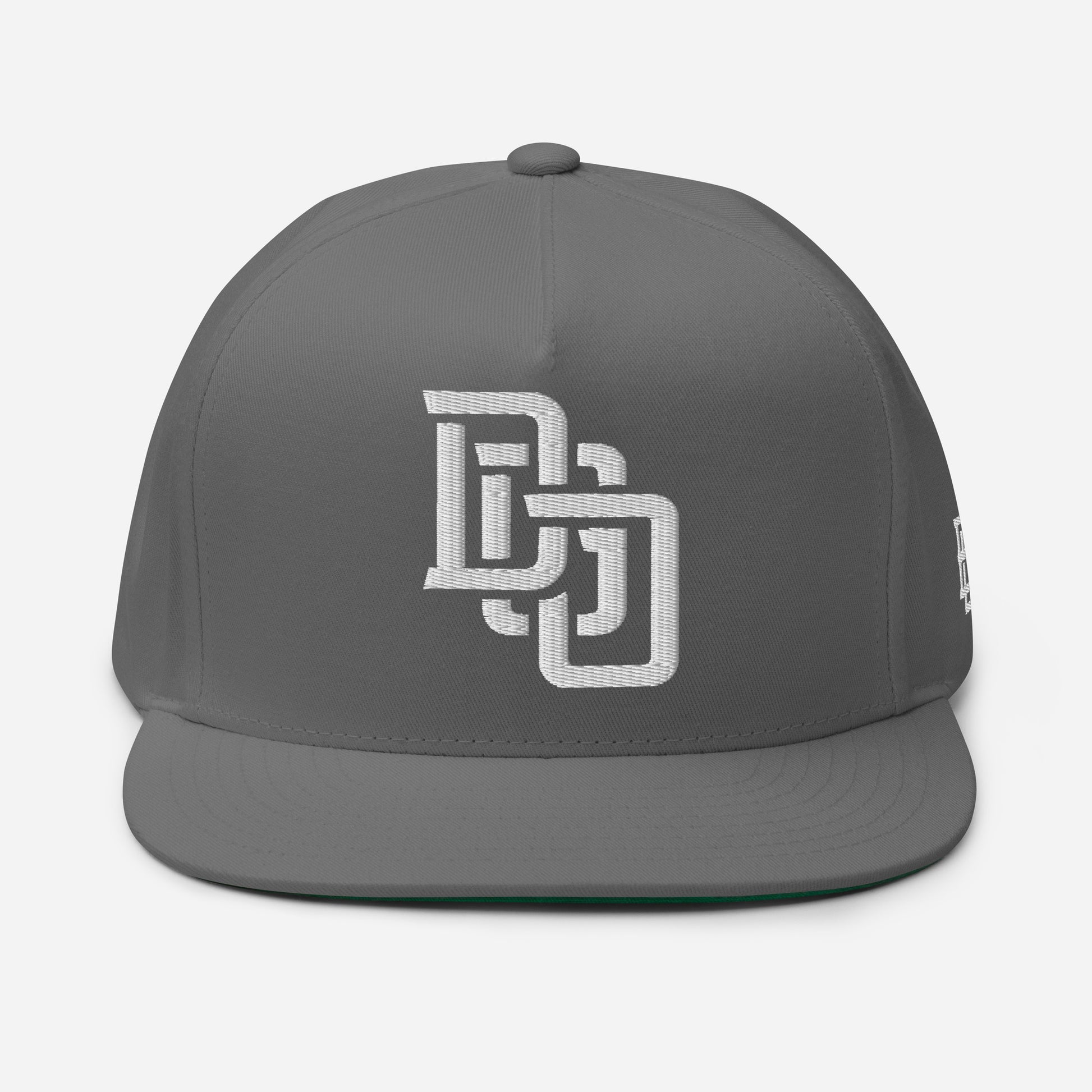 "DGO" Flat Bill Cap | Yupoong 6007 | E Luna Brand ESSENTIAL Duocrest 2 White Thread Logos: Front & Left