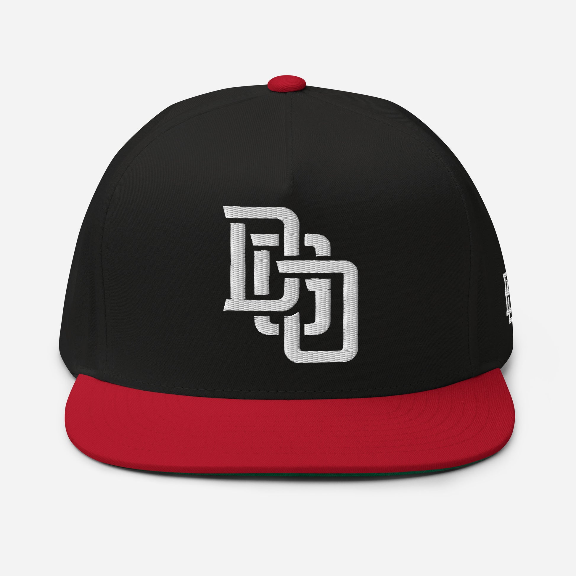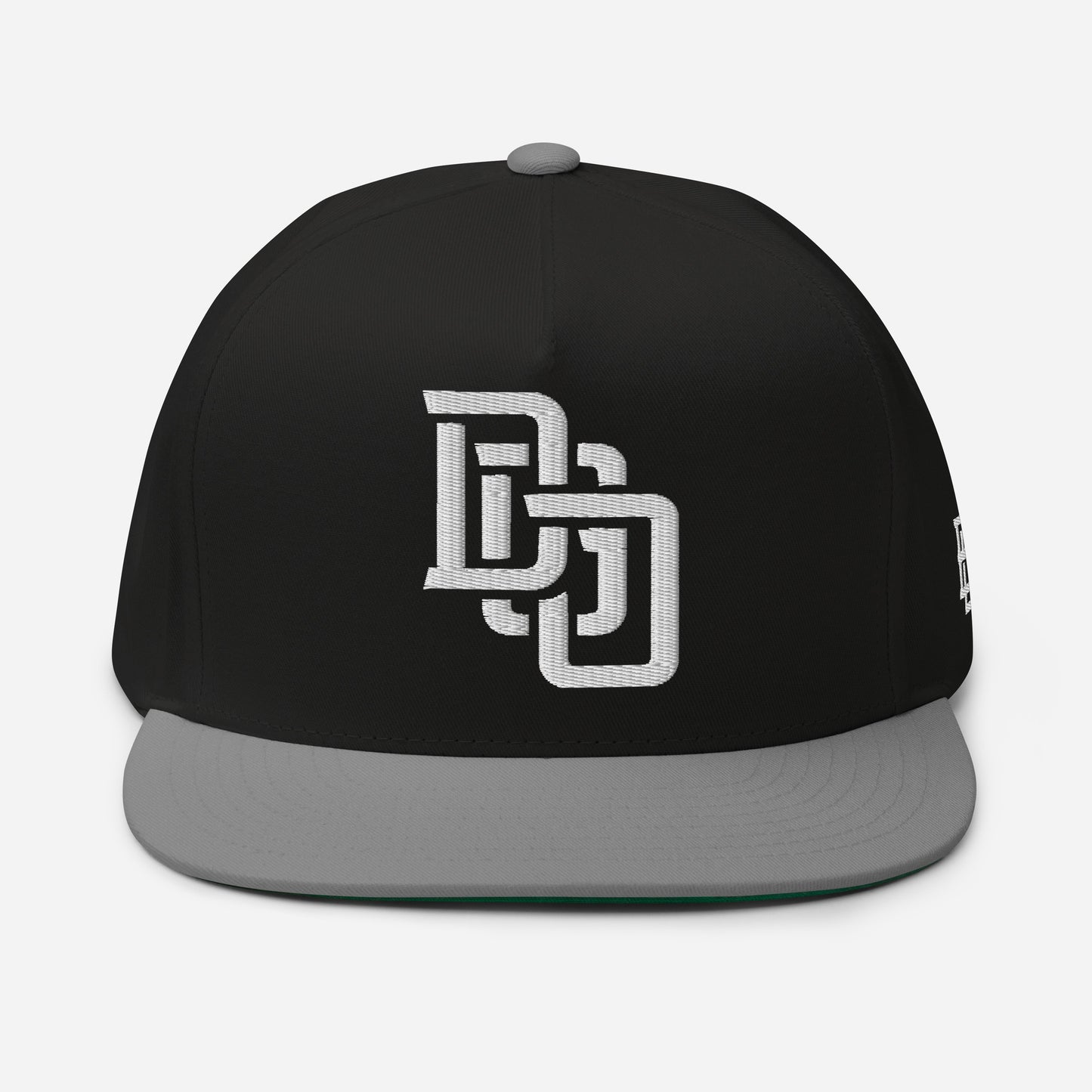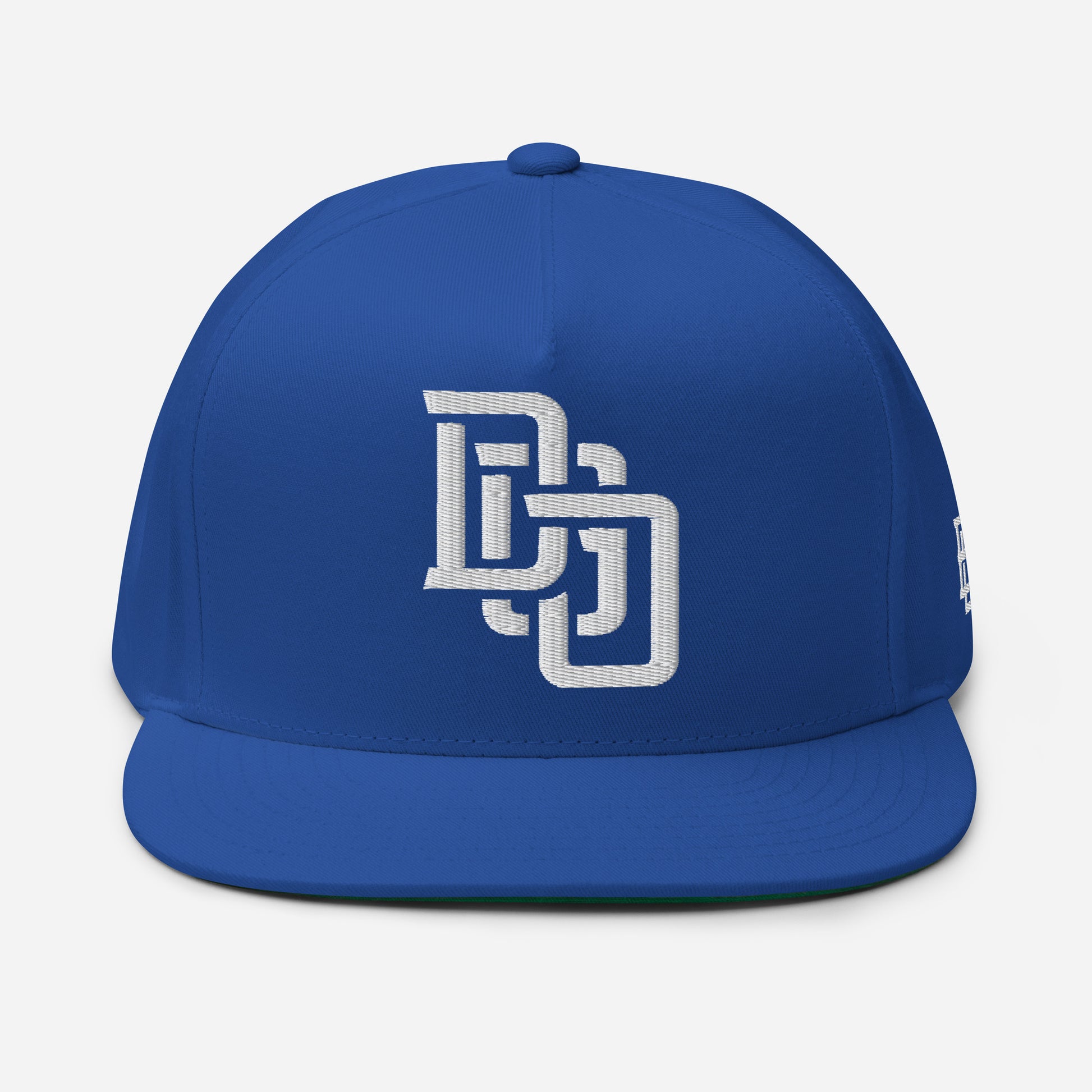 "DGO" Flat Bill Cap | Yupoong 6007 | E Luna Brand ESSENTIAL Duocrest 2 White Thread Logos: Front & Left
