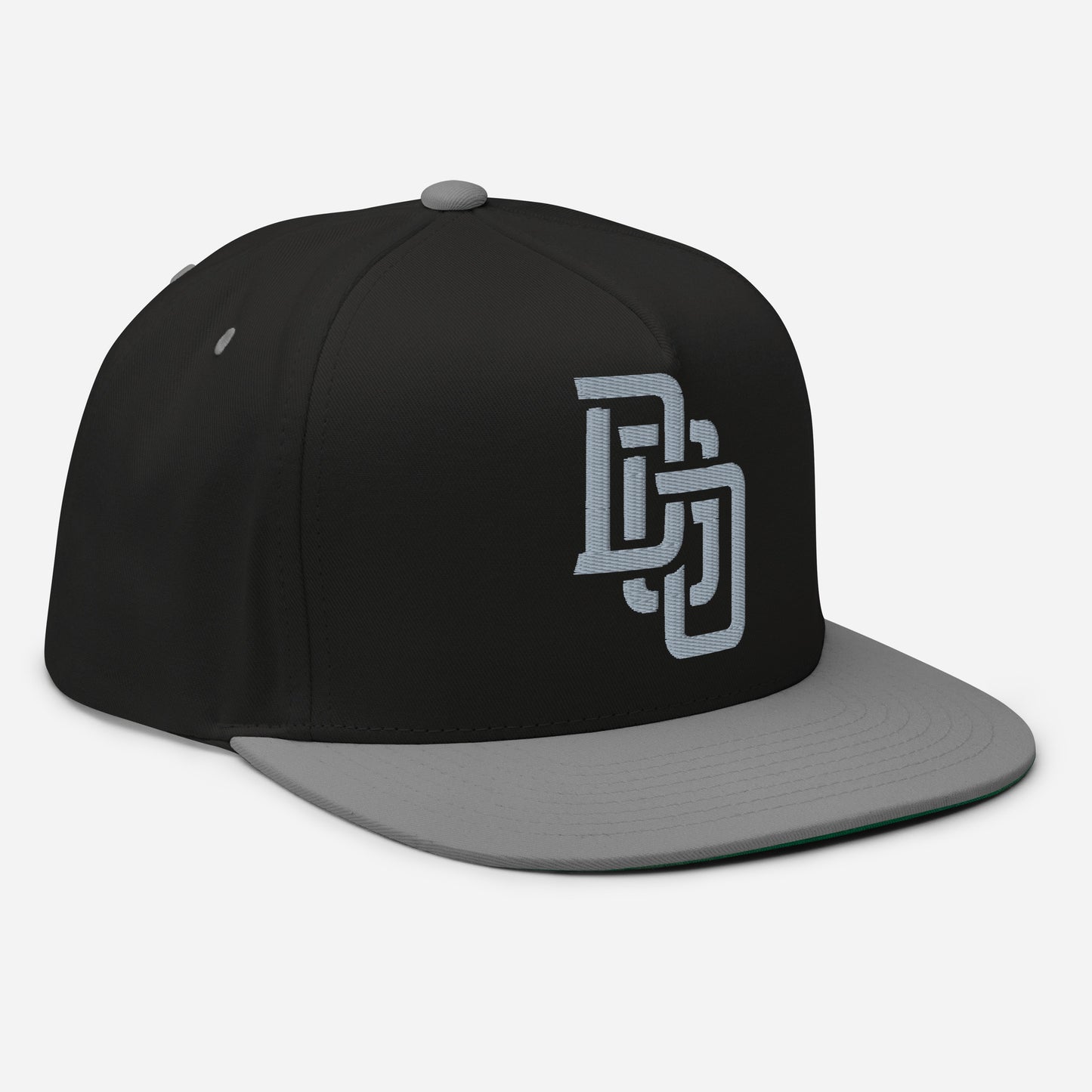 "DGO" Flat Bill Cap | Yupoong 6007 | E Luna Brand SELECT Tricrest 3 Grey Thread Logos: Front, Left & Back [3D Puff Edition]