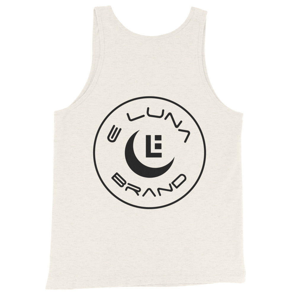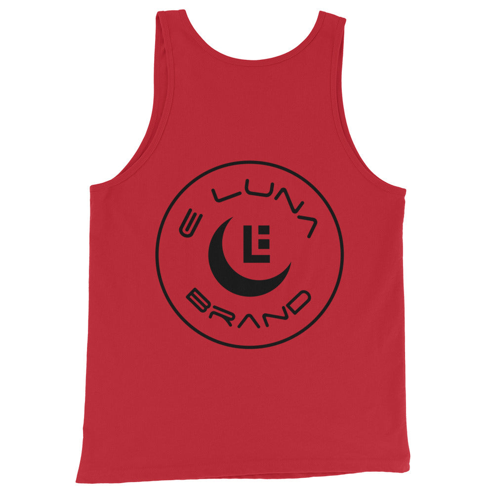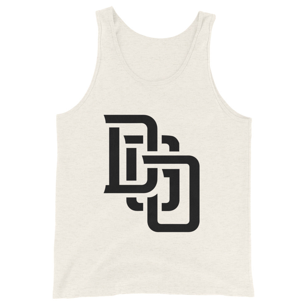 "DGO" Men’s Staple Tank Top | Bella + Canvas 3480 | E Luna Brand CHOICE Duocrest 2 Black Logos: Front Center (Large) & Back (Large)