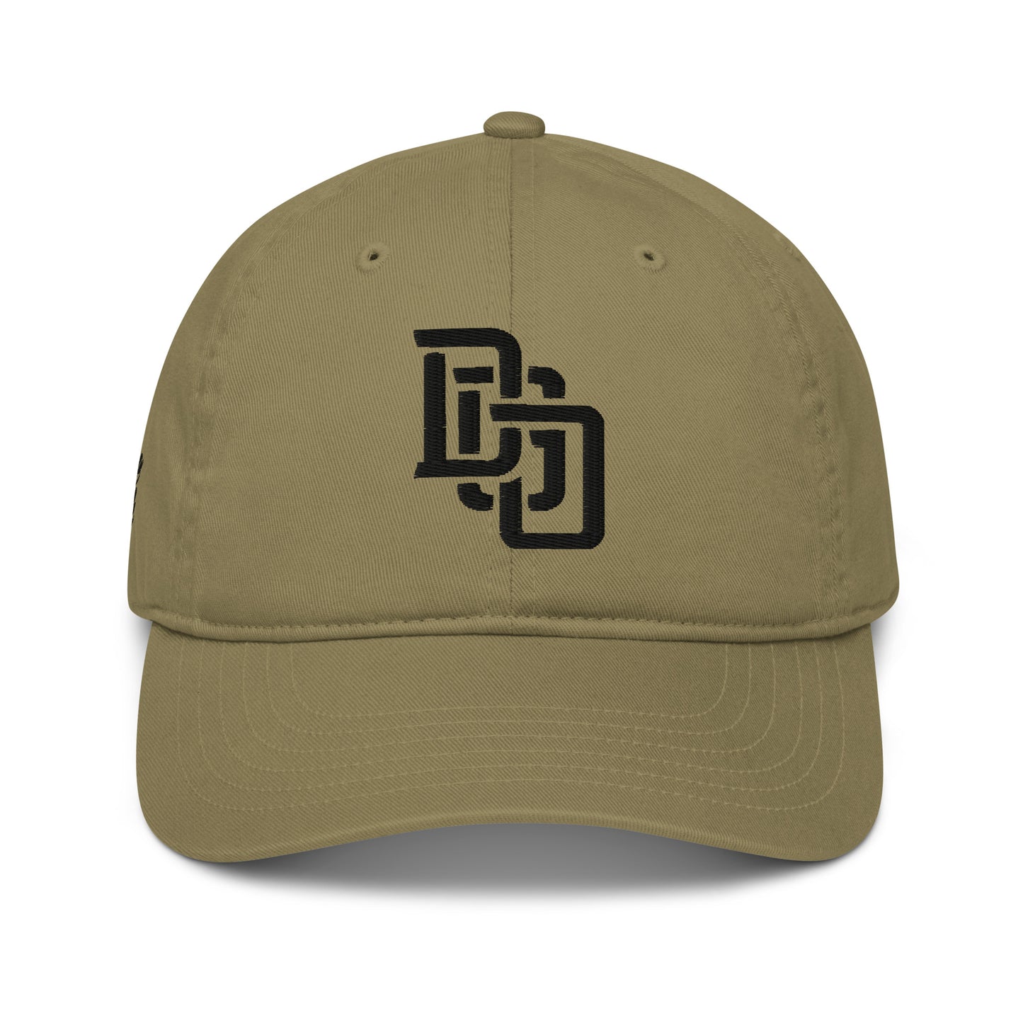 "DGO" Organic Baseball Cap | Econscious EC7000 | E Luna Brand PREMIUM Quadcrest 4 Black Thread Logos: Front, Left, Right Signature & Back [3D Puff Edition]