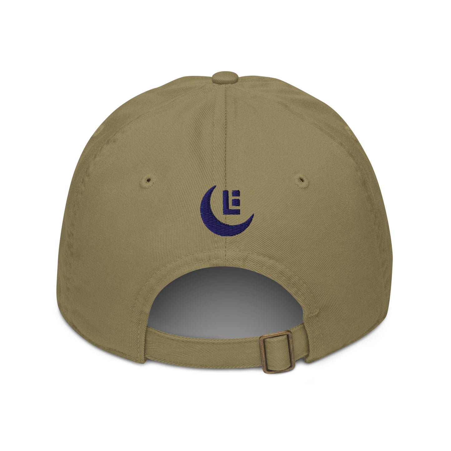 "DGO" Organic Baseball Cap | Econscious EC7000 | E Luna Brand PREMIUM Quadcrest 4 Navy Thread Logos: Front, Left, Right Signature & Back [3D Puff Edition]