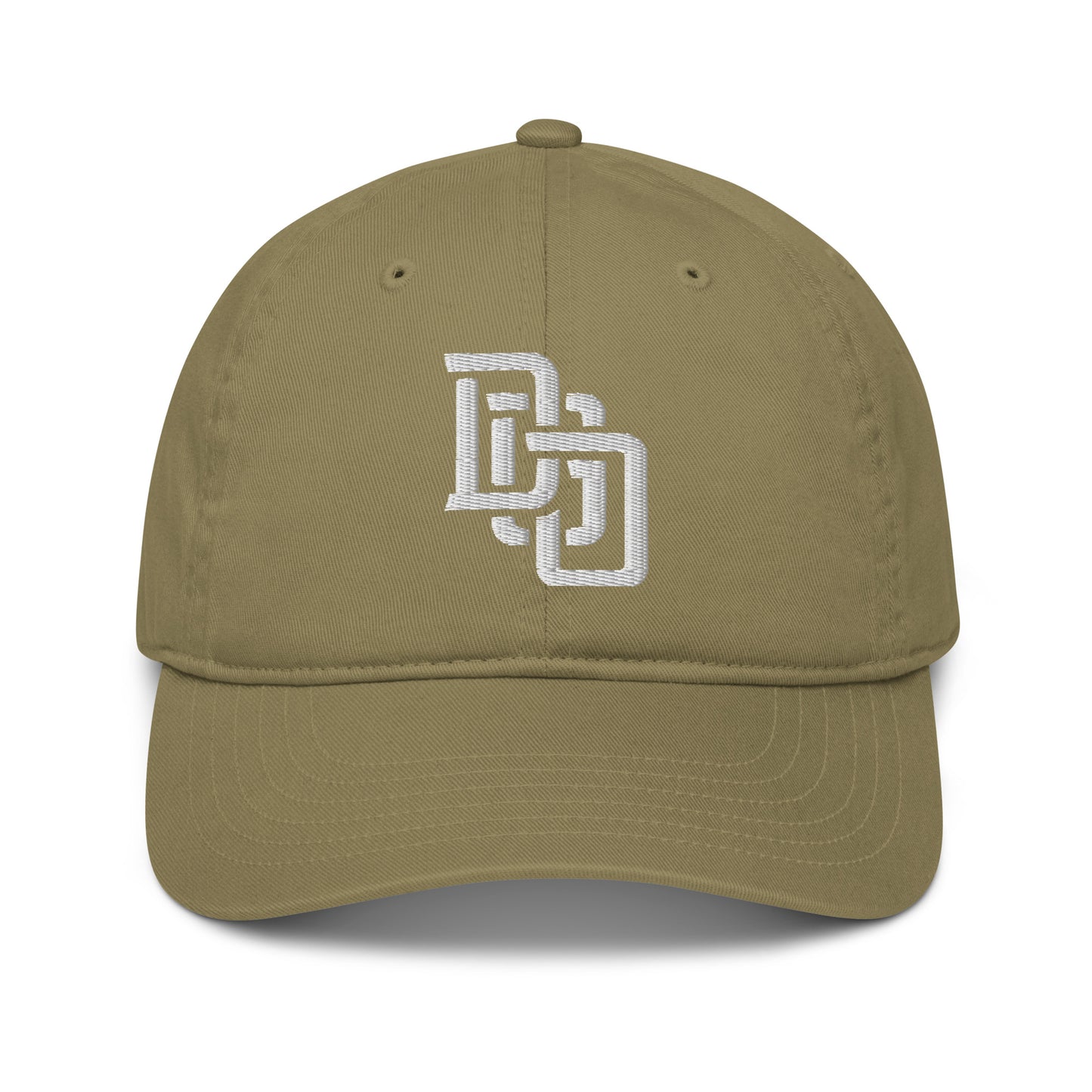 "DGO" Organic Baseball Cap | Econscious EC7000 | E Luna Brand ESSENTIAL Duocrest 2 White Thread Logos: Front & Left