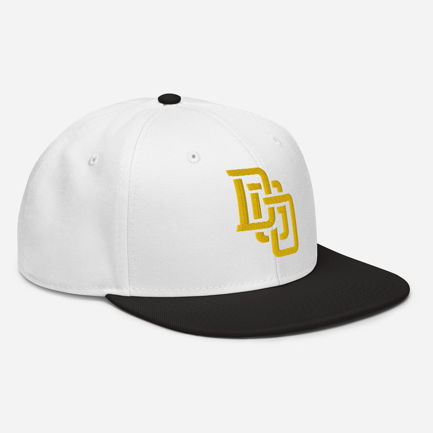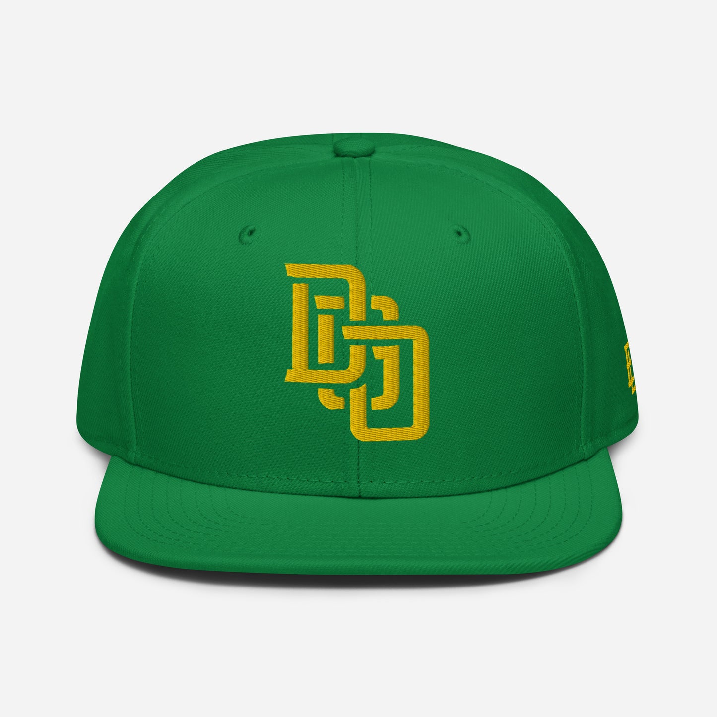 "DGO" Snapback | Otto Cap 125-978 | E Luna Brand ESSENTIAL Duocrest 2 Gold Thread Logos: Front & Left