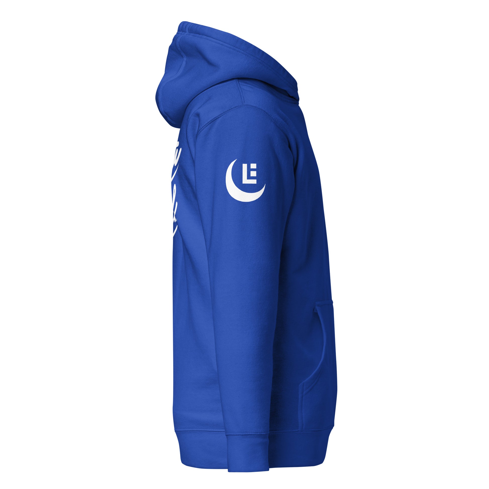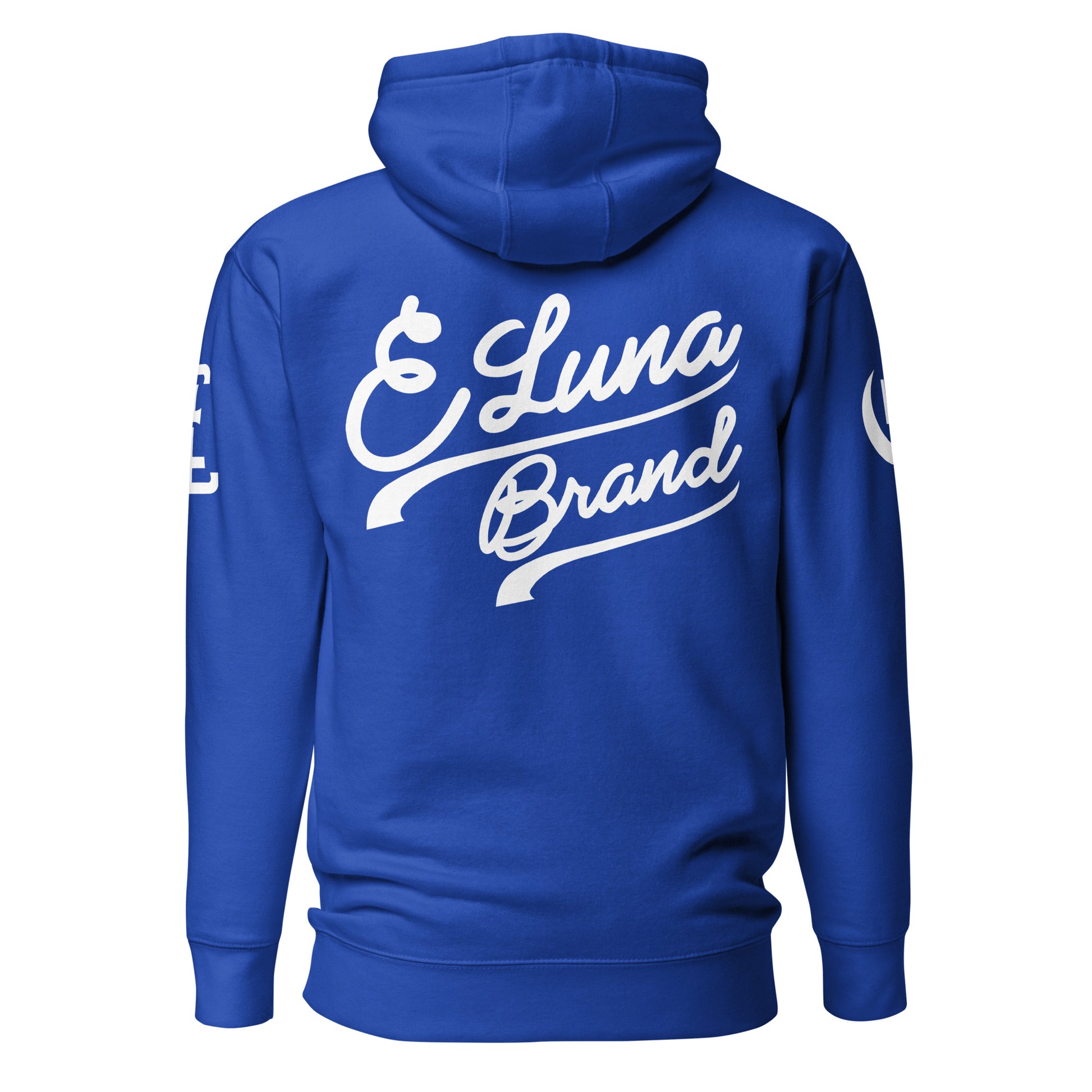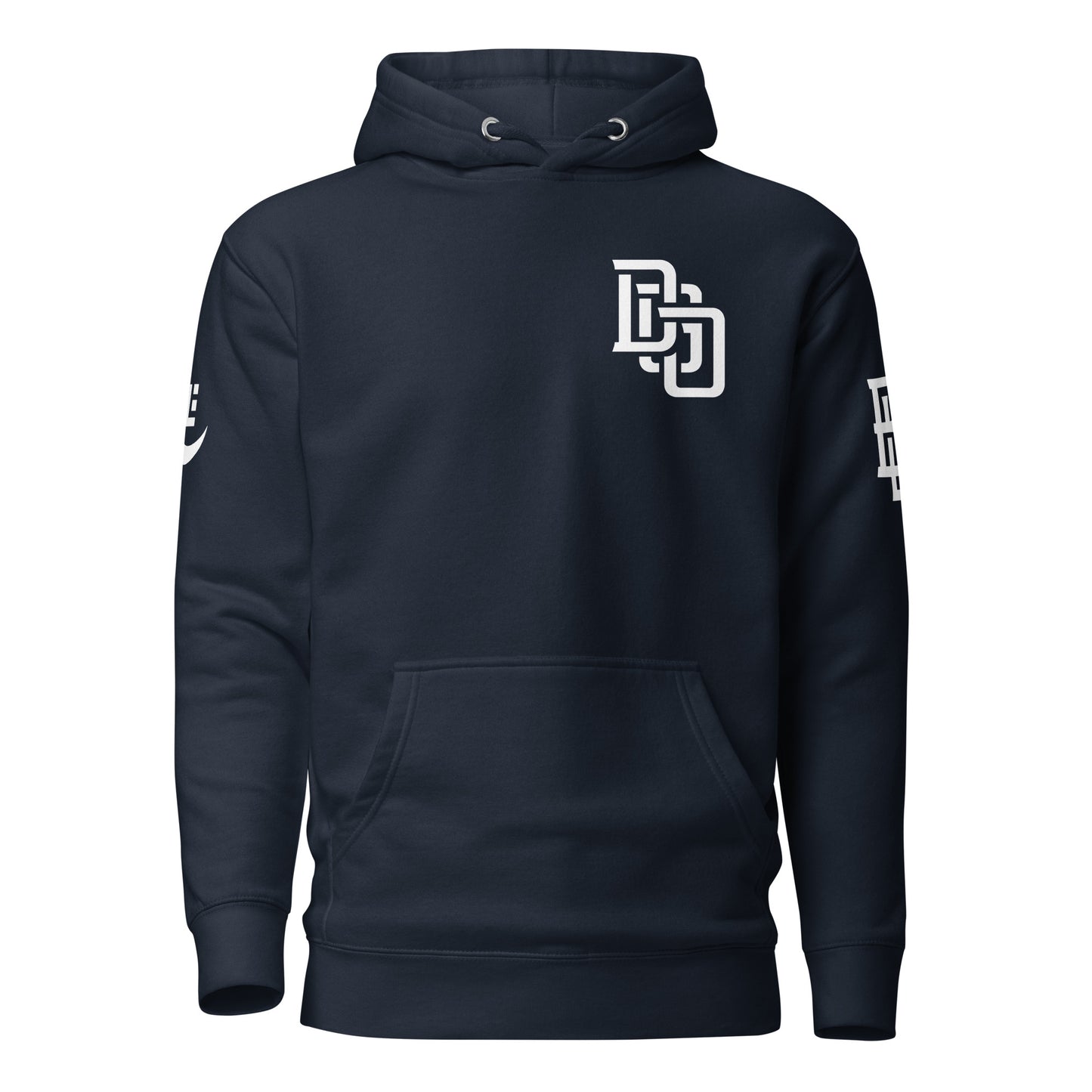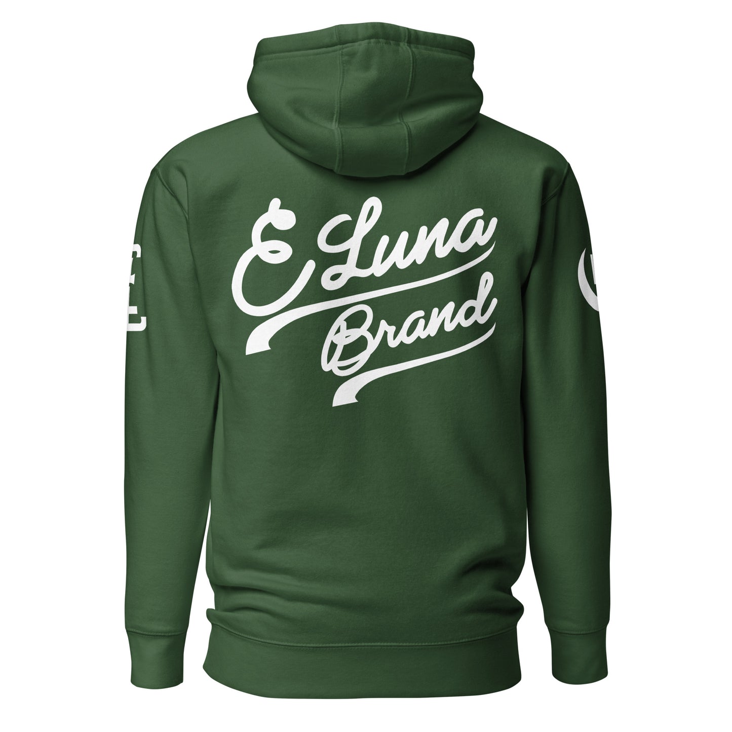 "DGO" Unisex Premium Hoodie | Cotton Heritage M2580 | E Luna Brand LEGACY Quadcrest 4 White Logos: Front Upper Left, Left/Right Arm & Back Signature (Large)