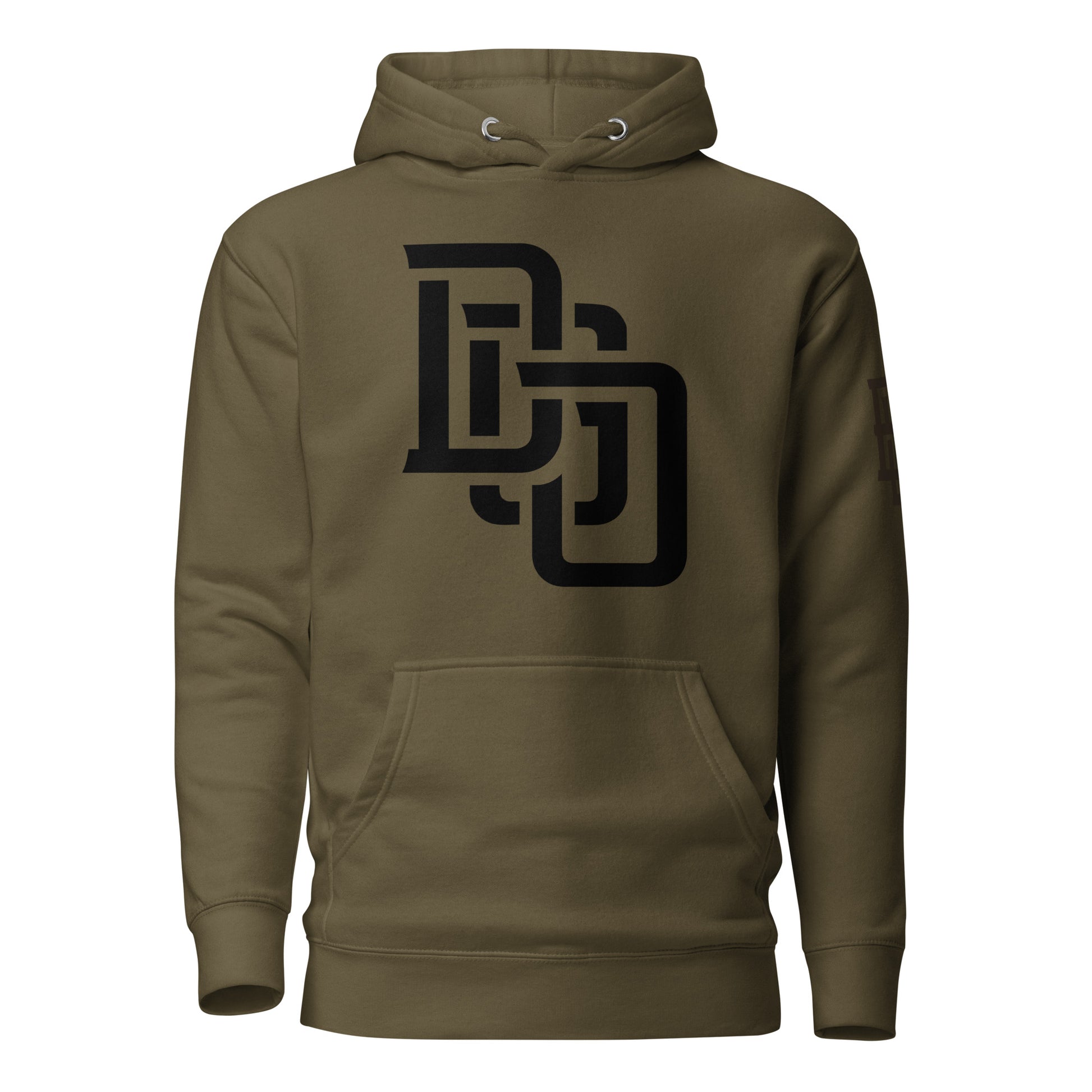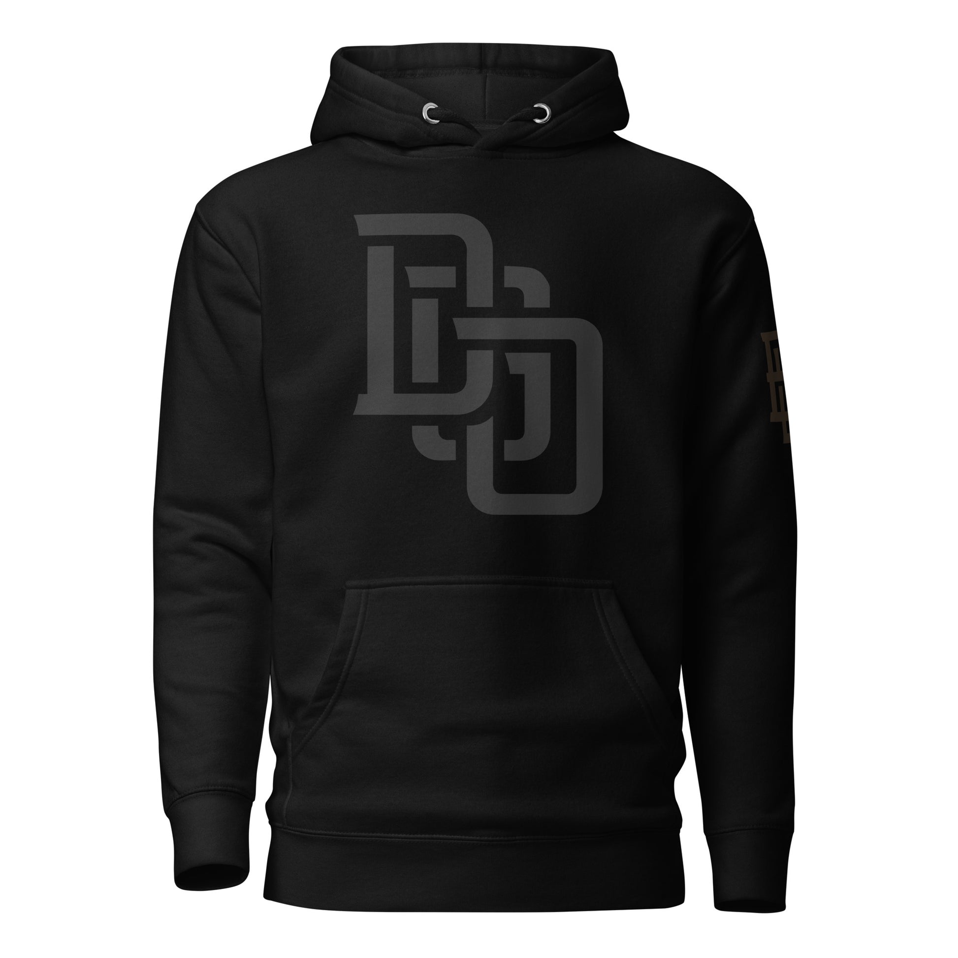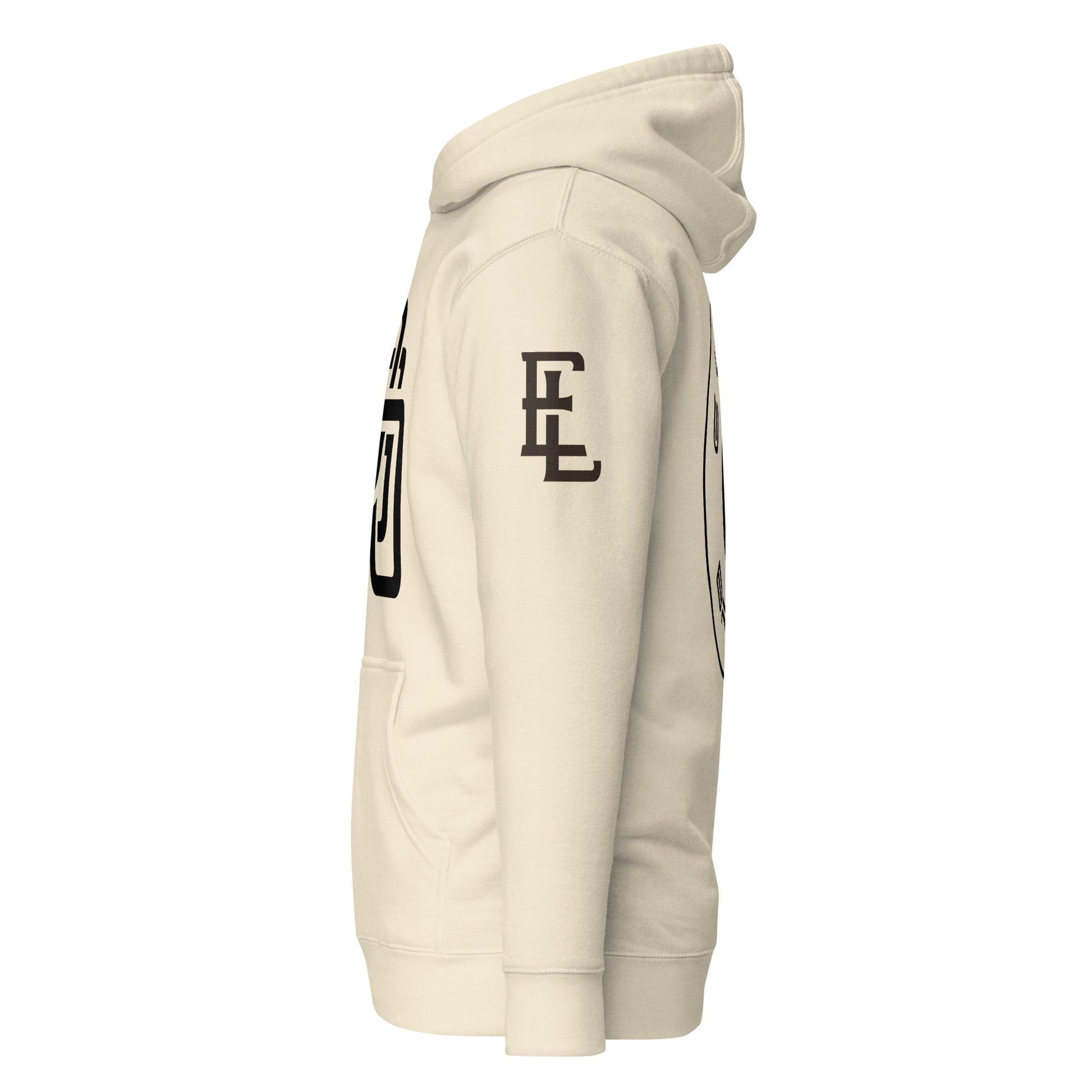 "DGO" Unisex Premium Hoodie | Cotton Heritage M2580 | E Luna Brand ELEMENT Tricrest 3 Black Logos: Front Center (Large), Left Arm & Back (Large)