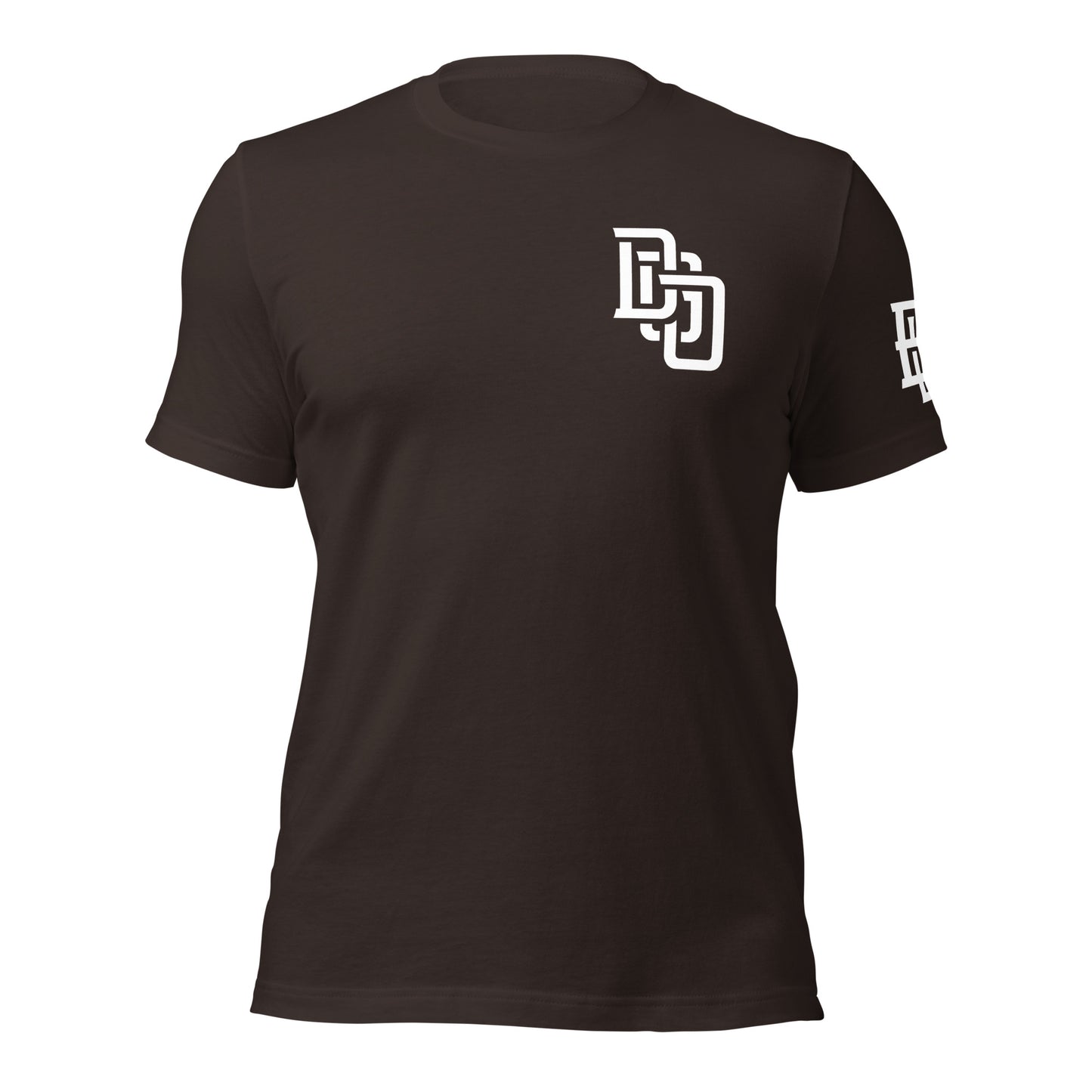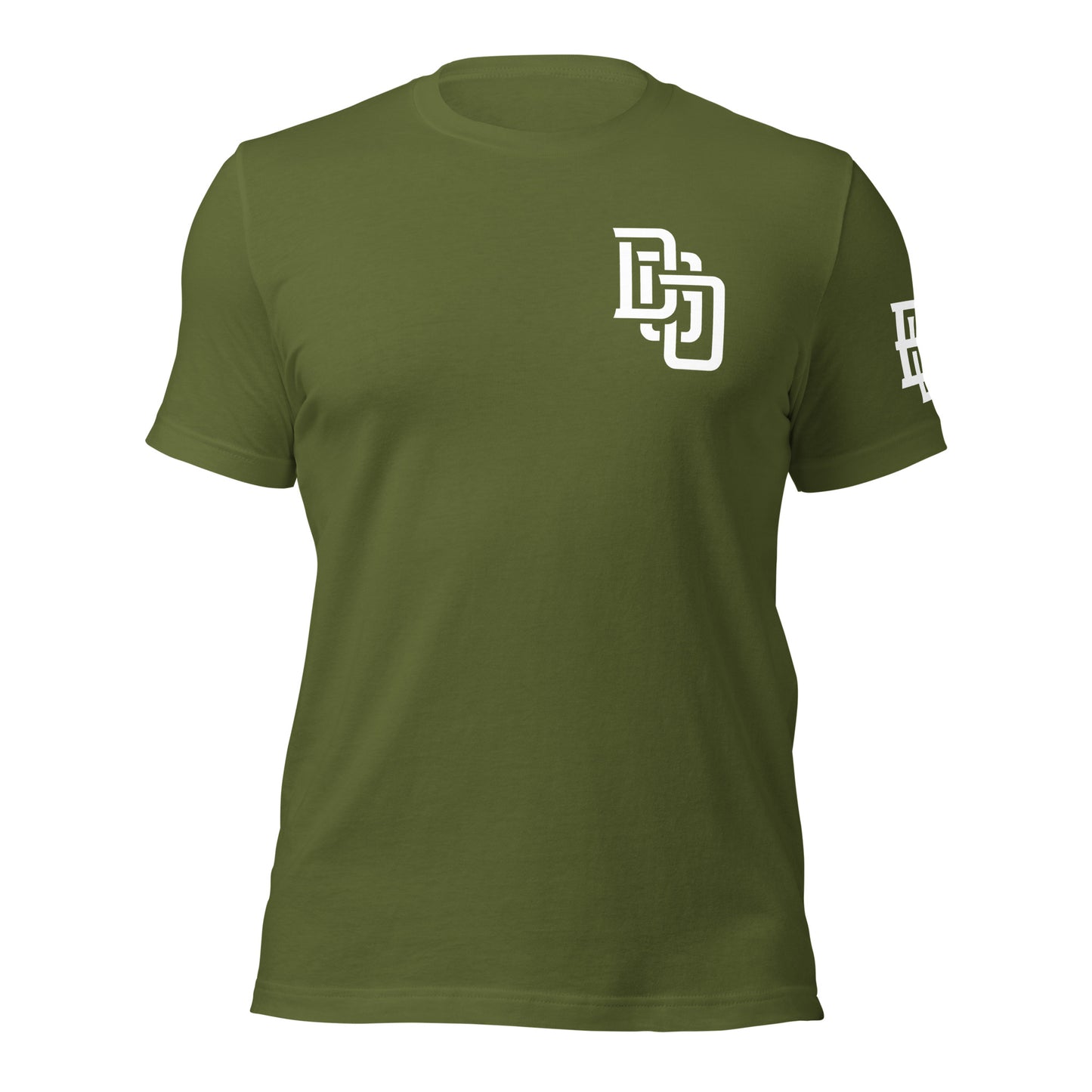 "DGO" Unisex Staple T-Shirt | Bella + Canvas 3001 | E Luna Brand ESSENCE Tricrest 3 White Logos: Front Upper Left, Left Arm & Outside Back Label