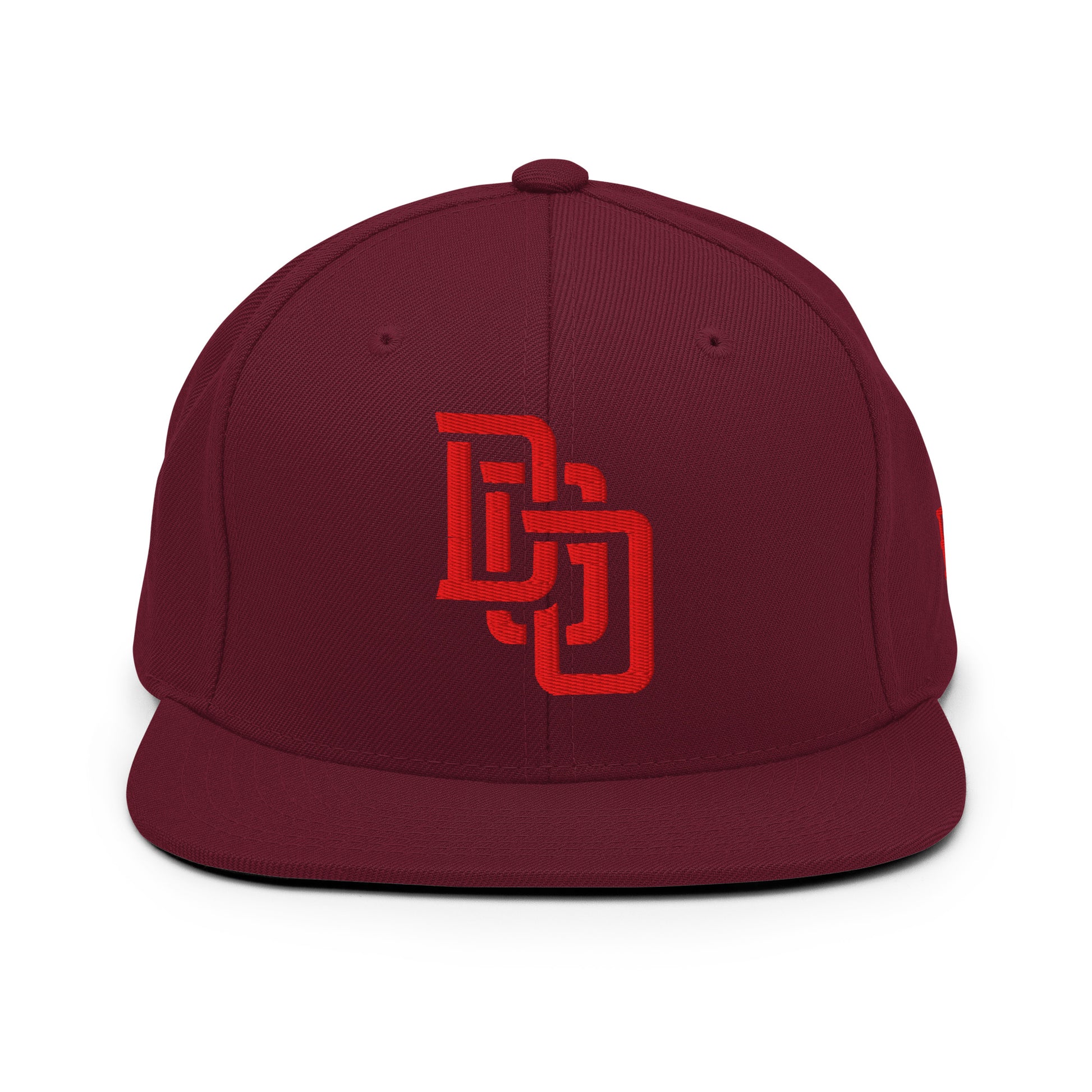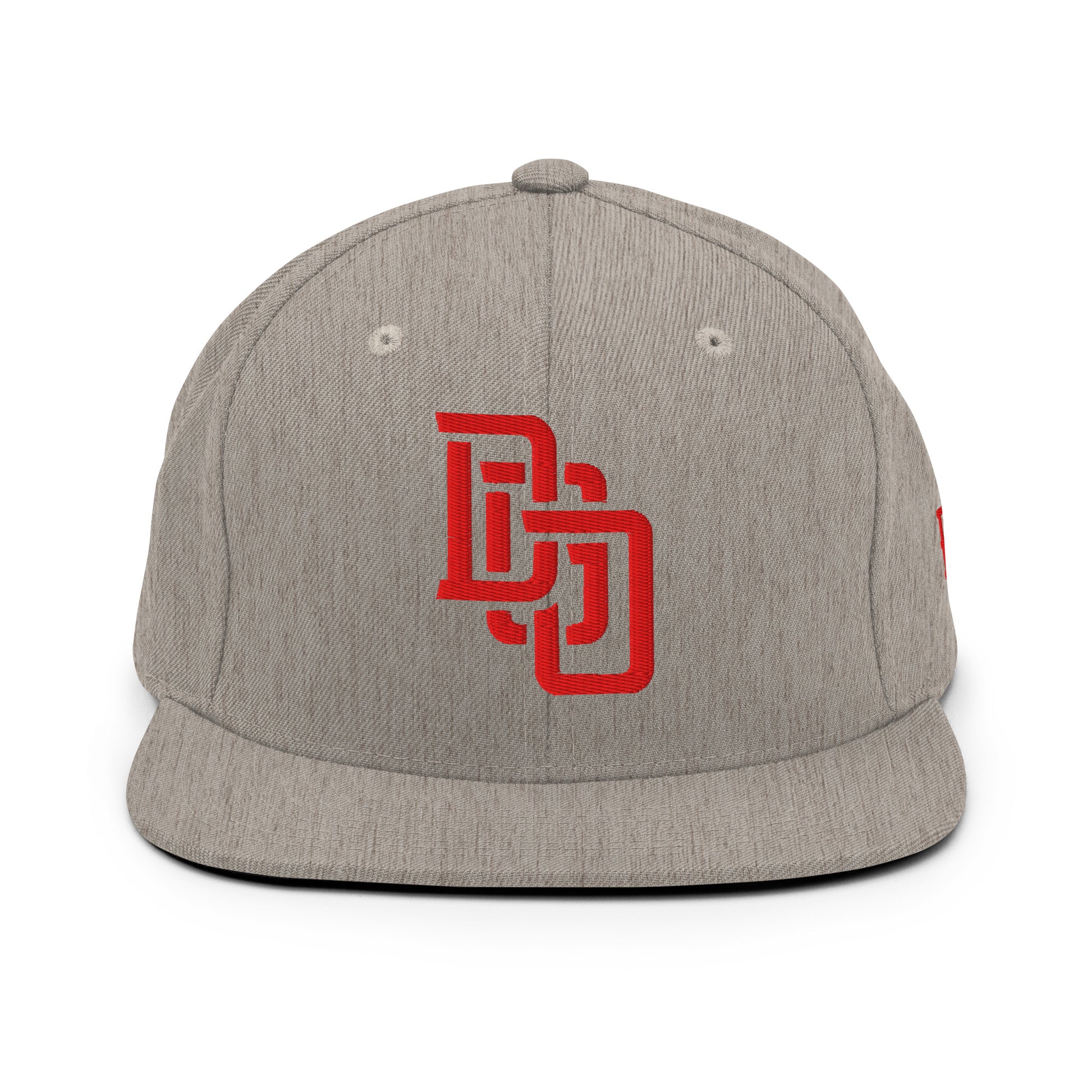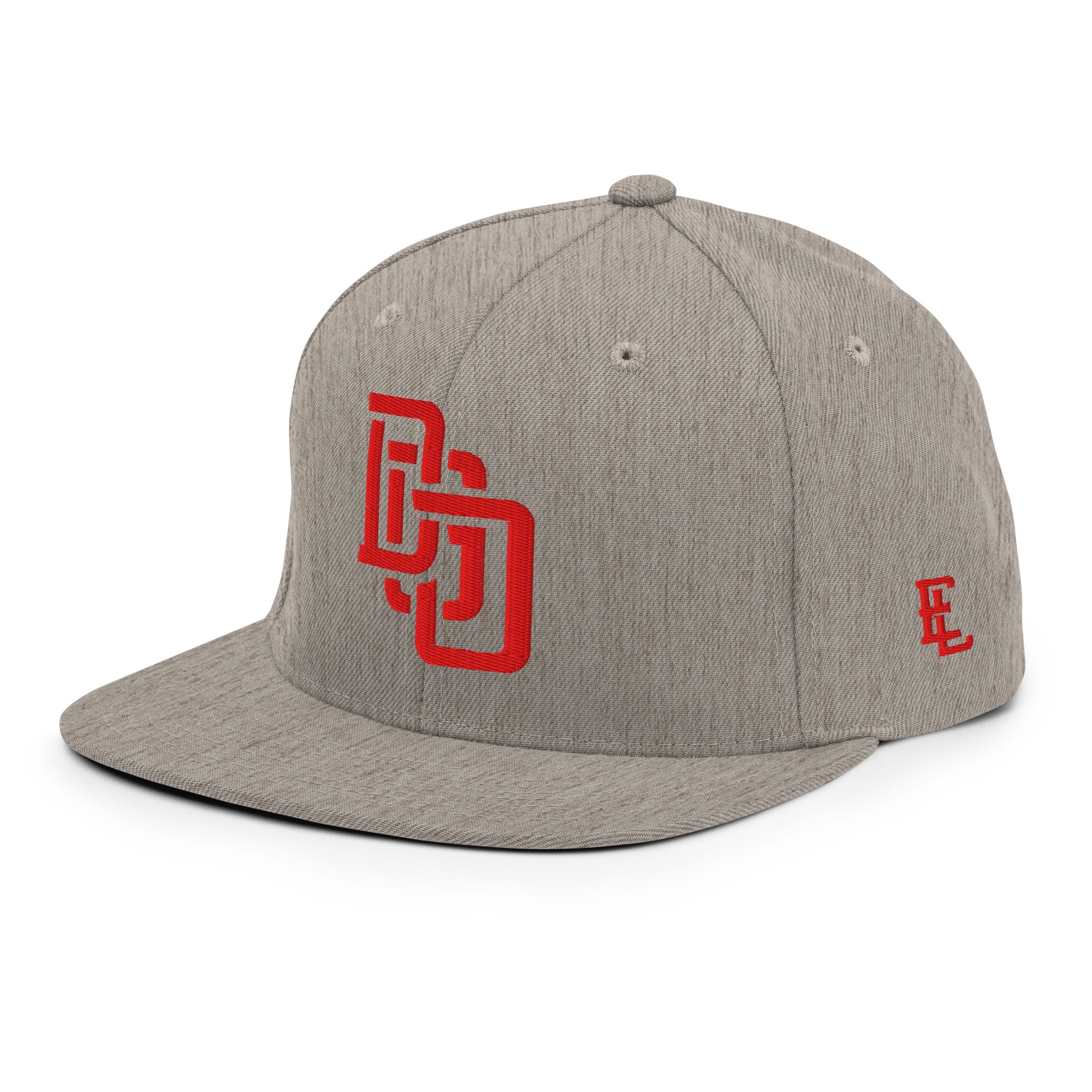 "DGO" Wool Blend Snapback Hat | Yupoong 6089M | E Luna Brand ESSENTIAL Duocrest 2 Red Thread Logos: Front & Left