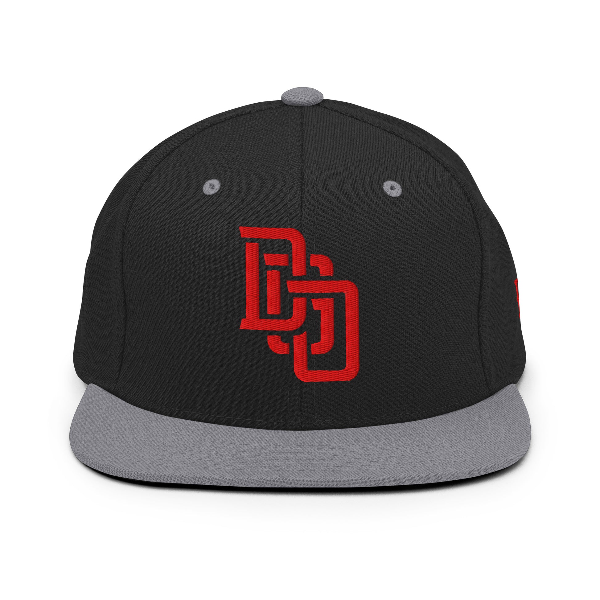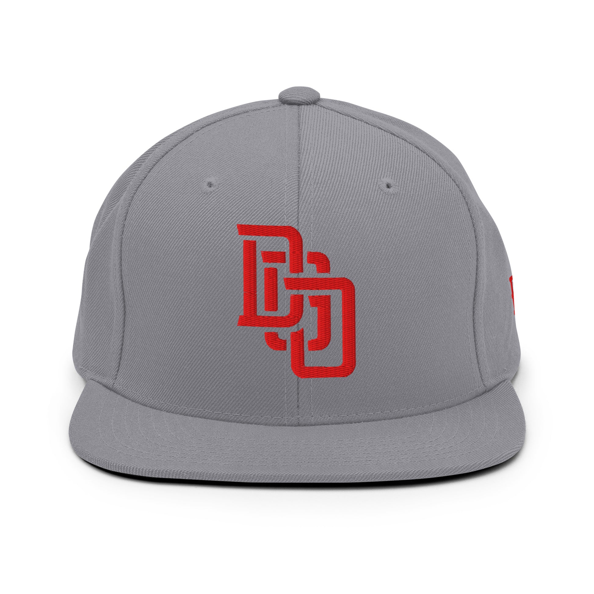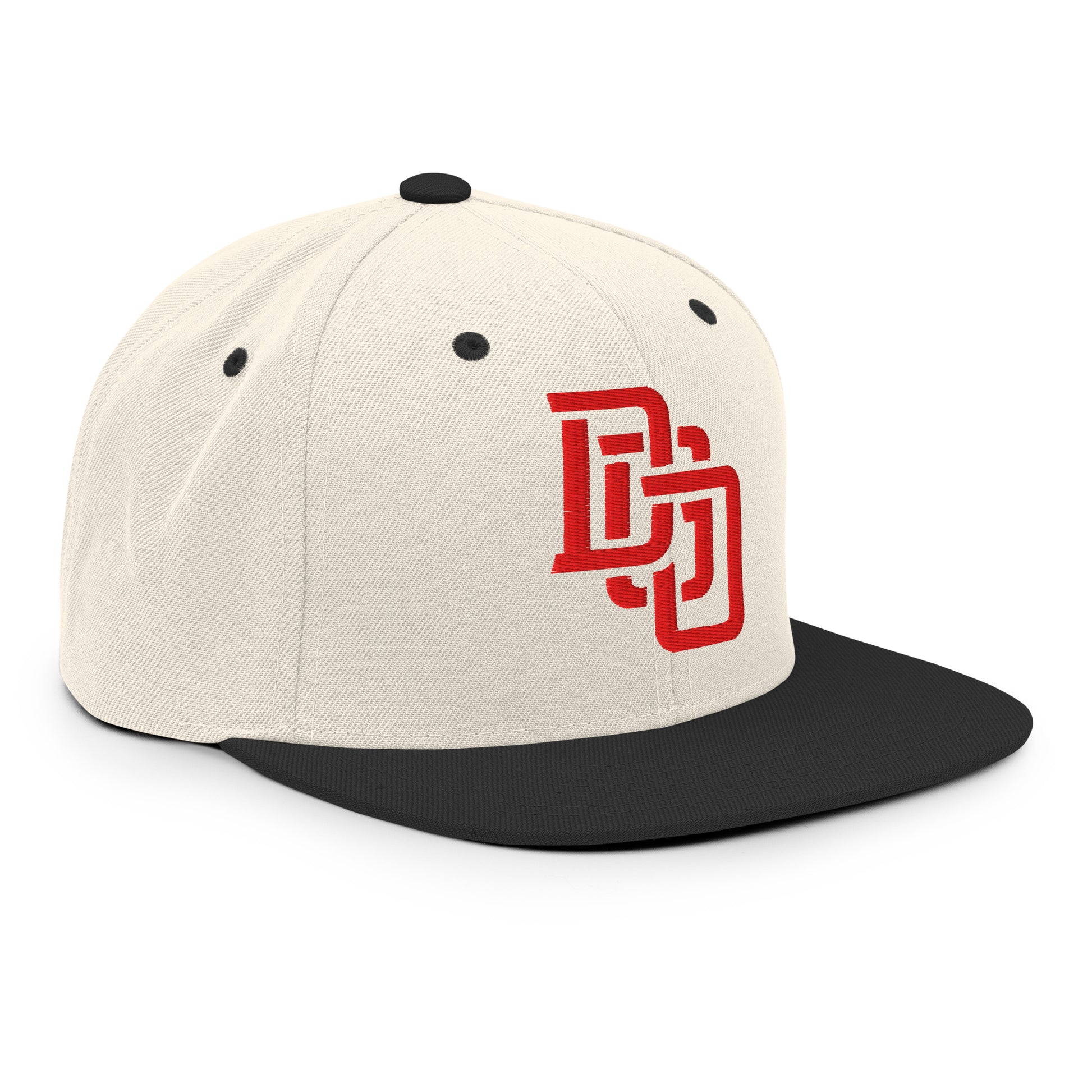 "DGO" Wool Blend Snapback Hat | Yupoong 6089M | E Luna Brand ESSENTIAL Duocrest 2 Red Thread Logos: Front & Left