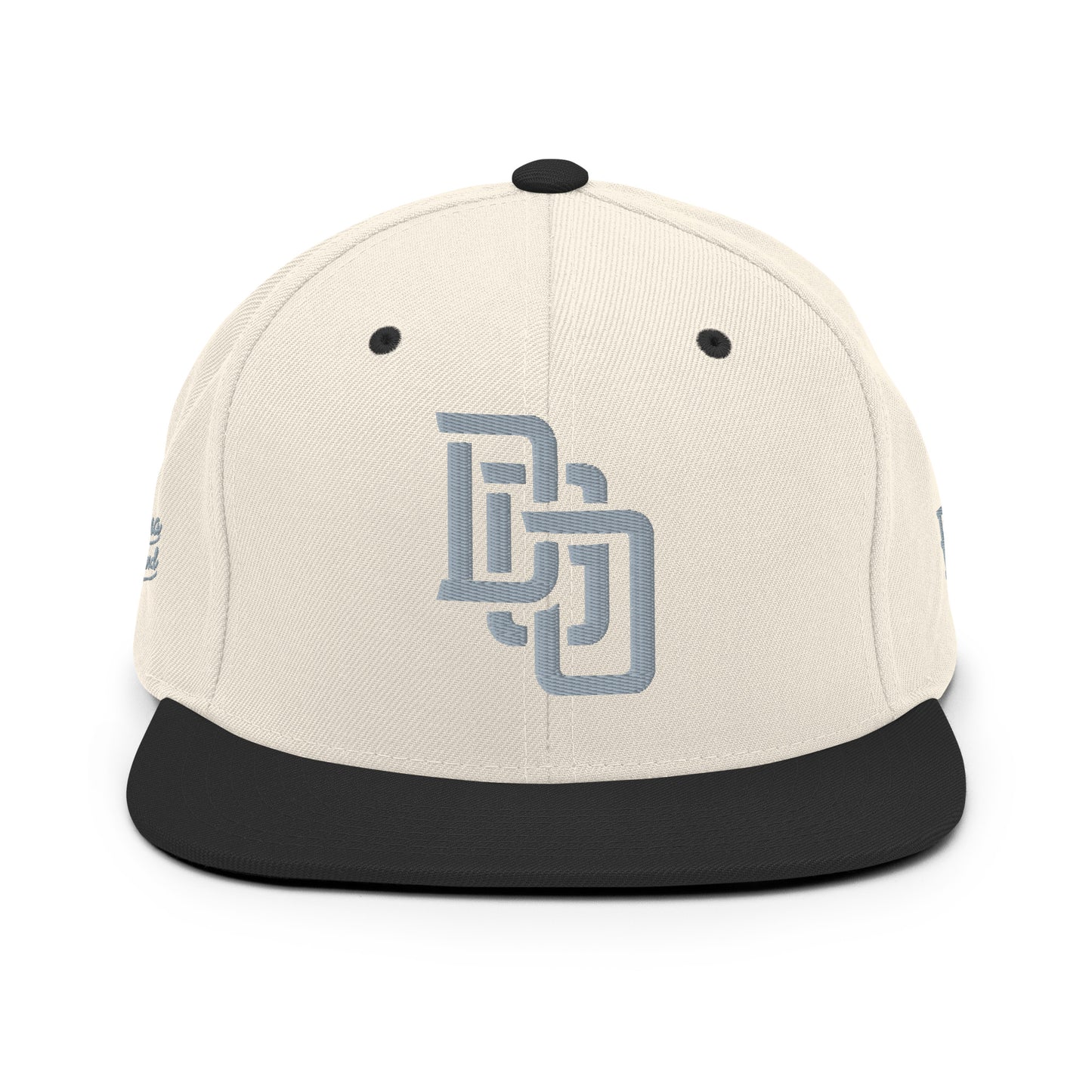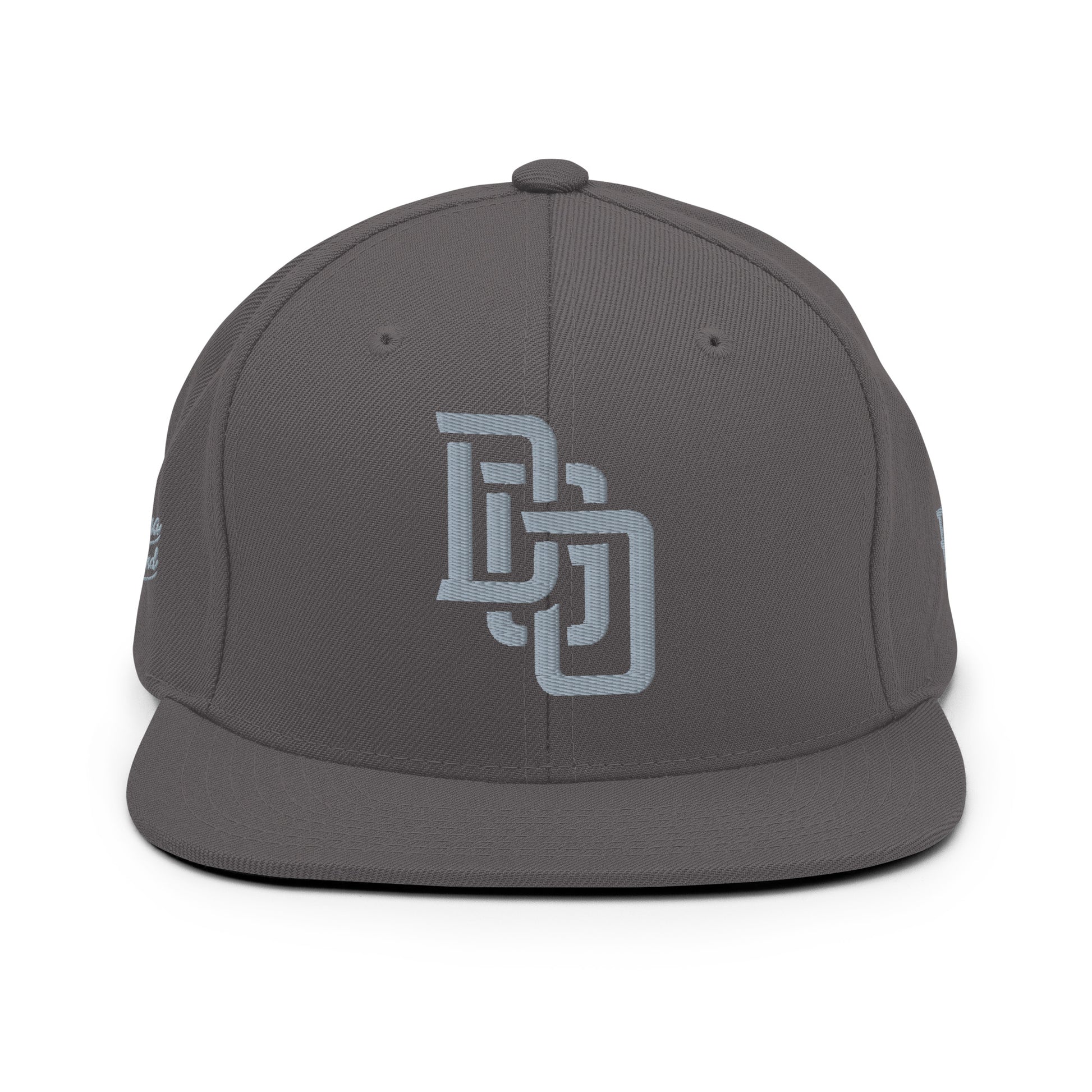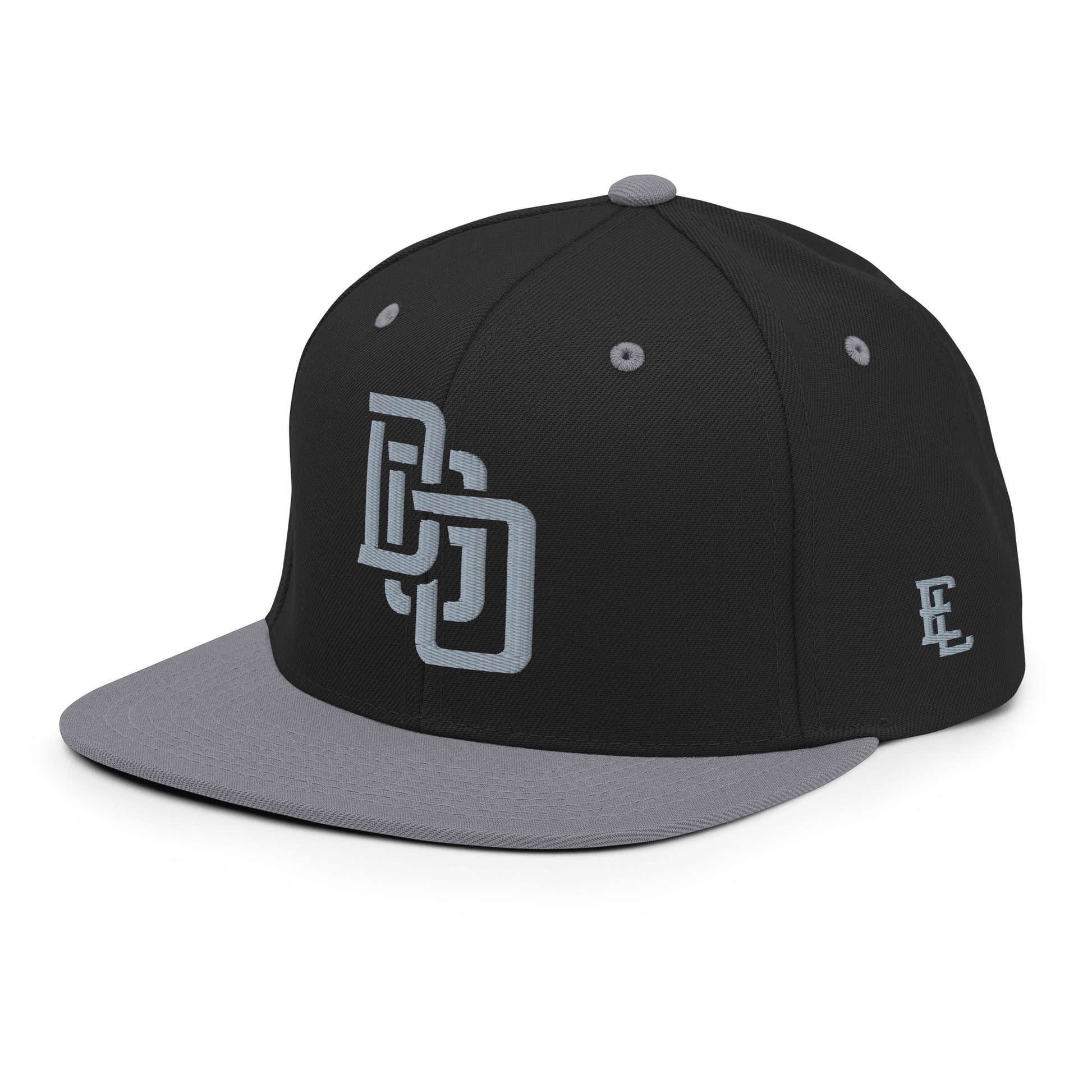 "DGO" Wool Blend Snapback Hat | Yupoong 6089M | E Luna Brand PREMIUM Quadcrest 4 Grey Thread Logos: Front, Left, Right Signature & Back [3D Puff Edition]