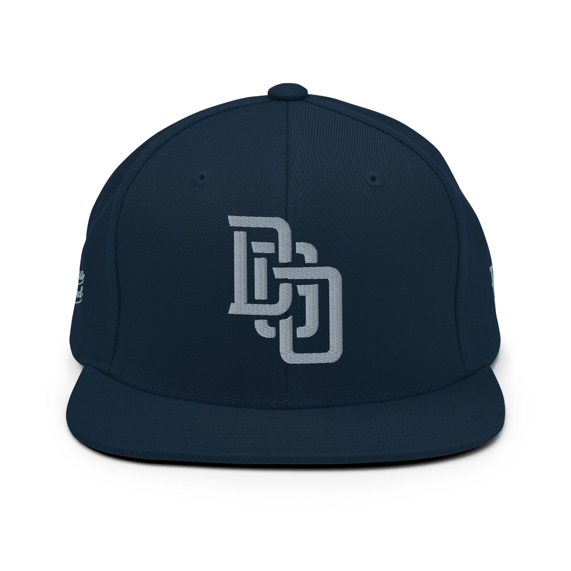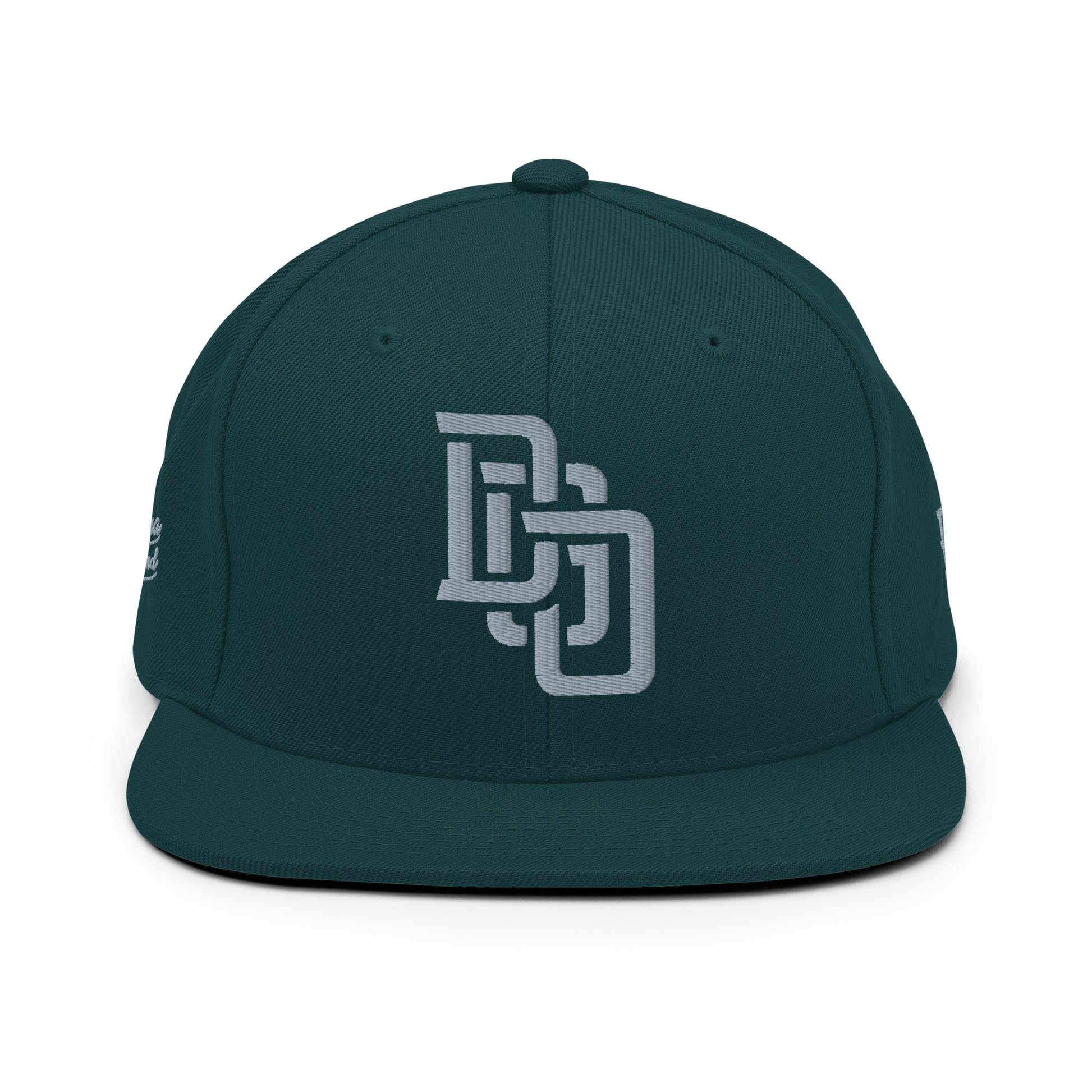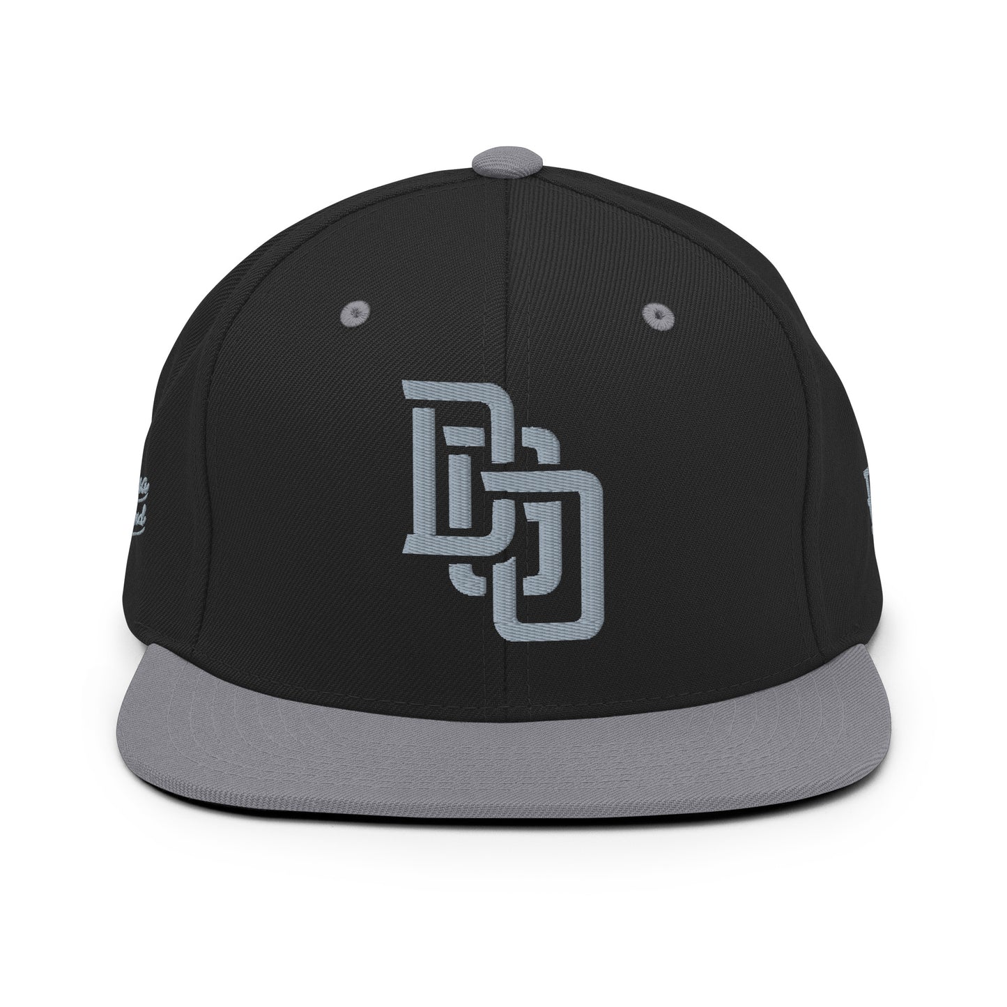 "DGO" Wool Blend Snapback Hat | Yupoong 6089M | E Luna Brand PREMIUM Quadcrest 4 Grey Thread Logos: Front, Left, Right Signature & Back [3D Puff Edition]