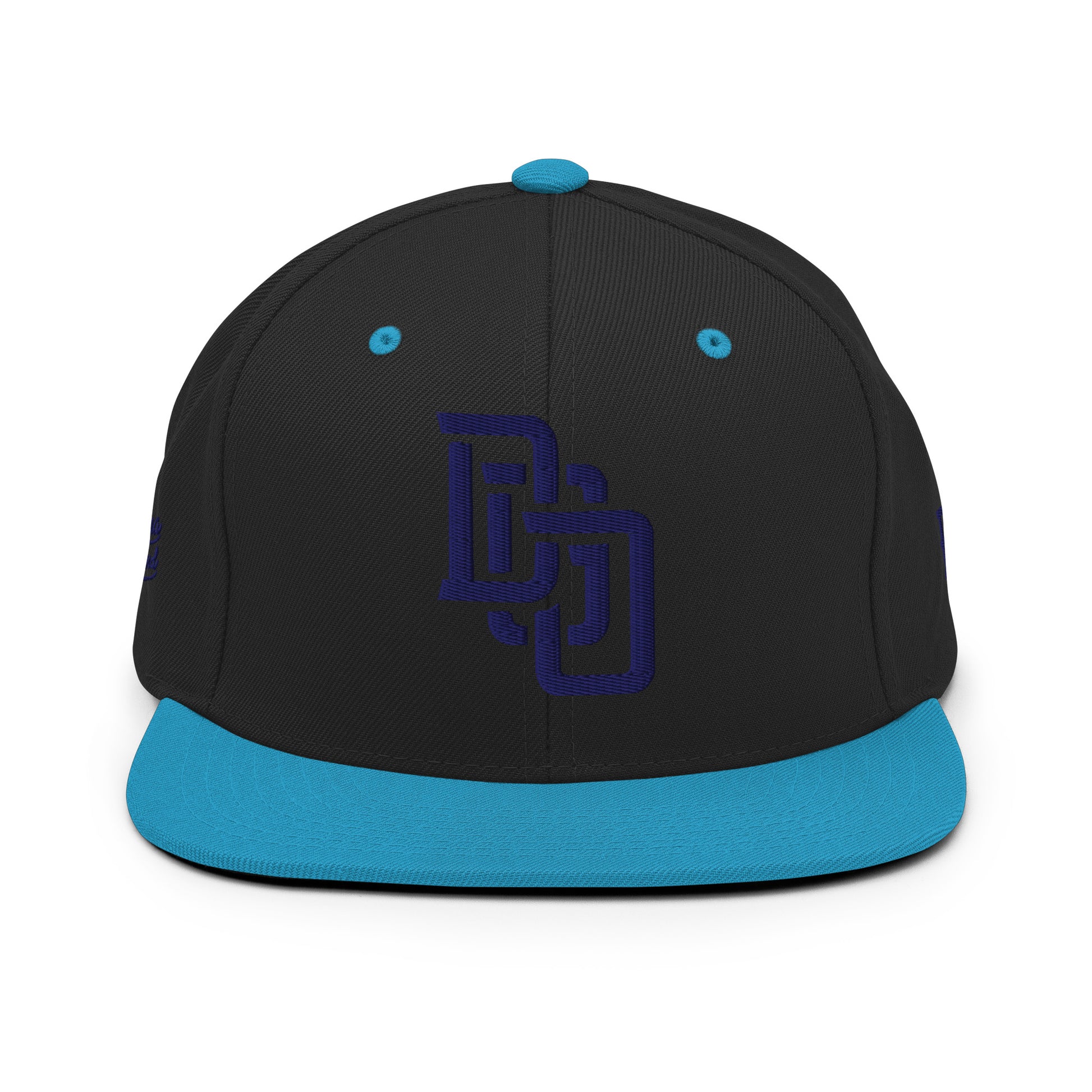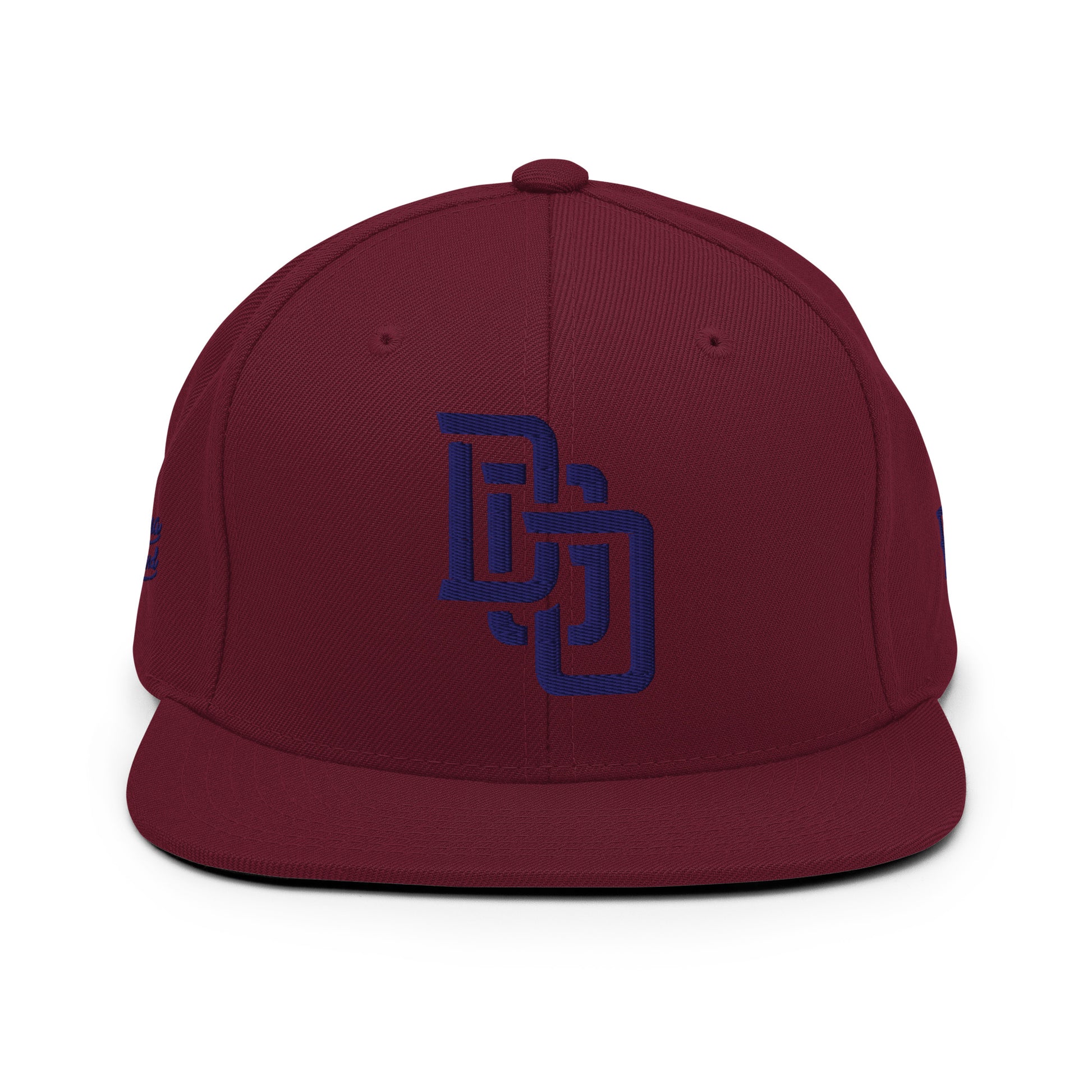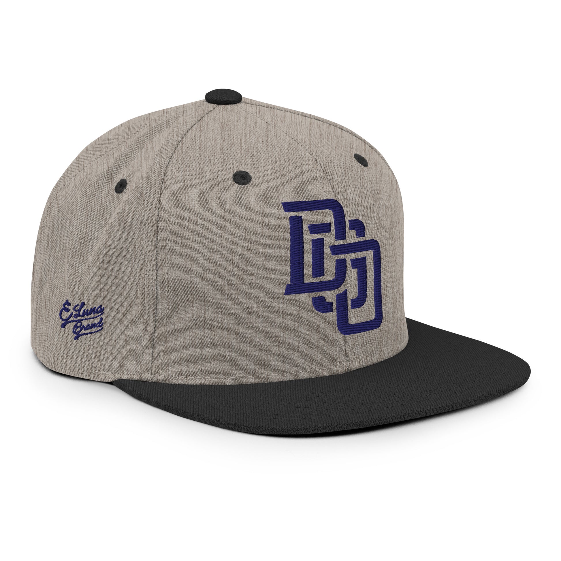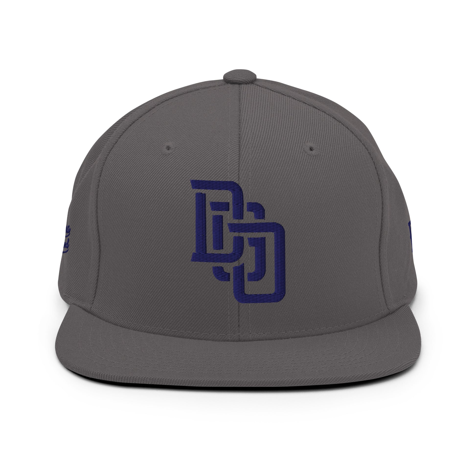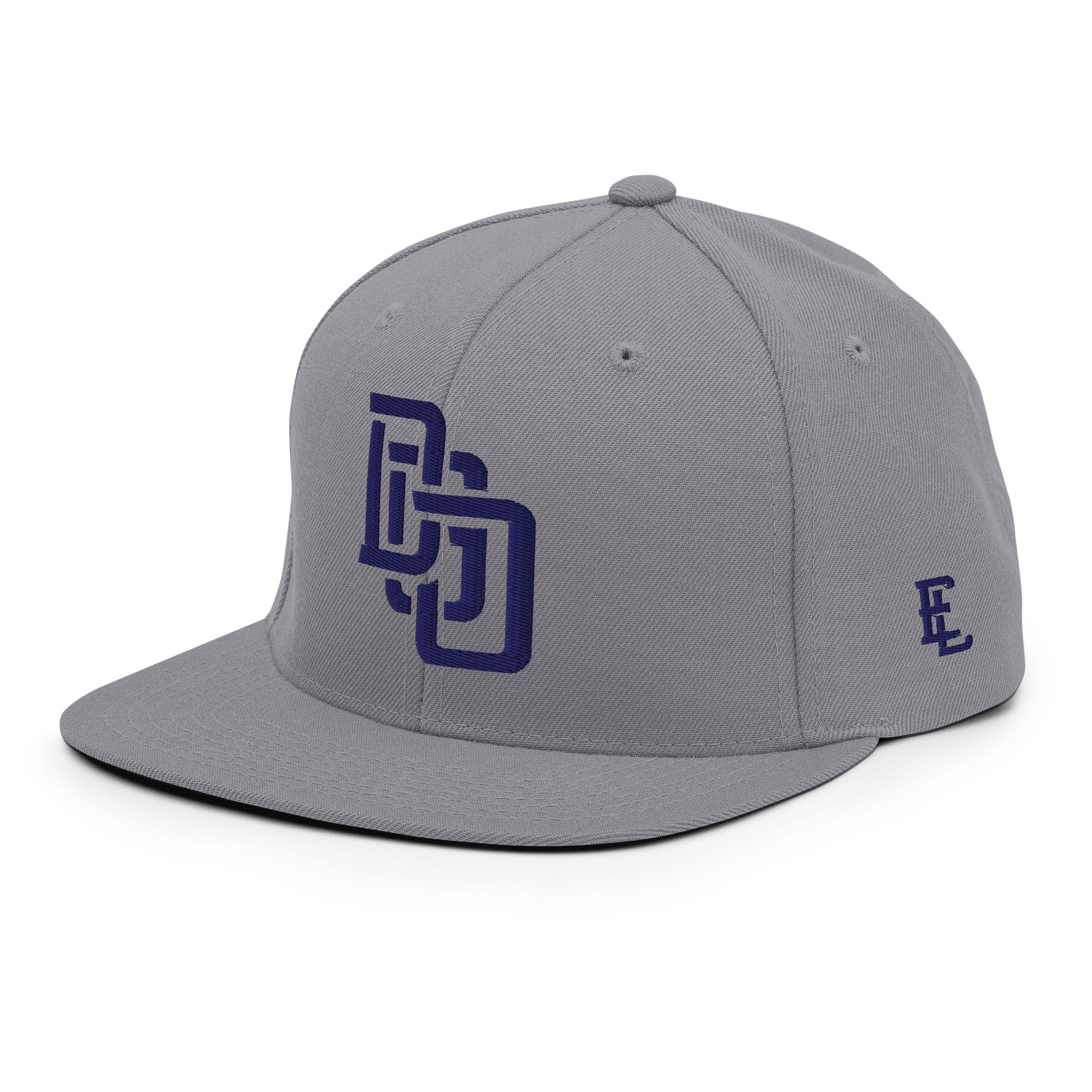 "DGO" Wool Blend Snapback Hat | Yupoong 6089M | E Luna Brand PREMIUM Quadcrest 4 Navy Thread Logos: Front, Left, Right Signature & Back [3D Puff Edition]