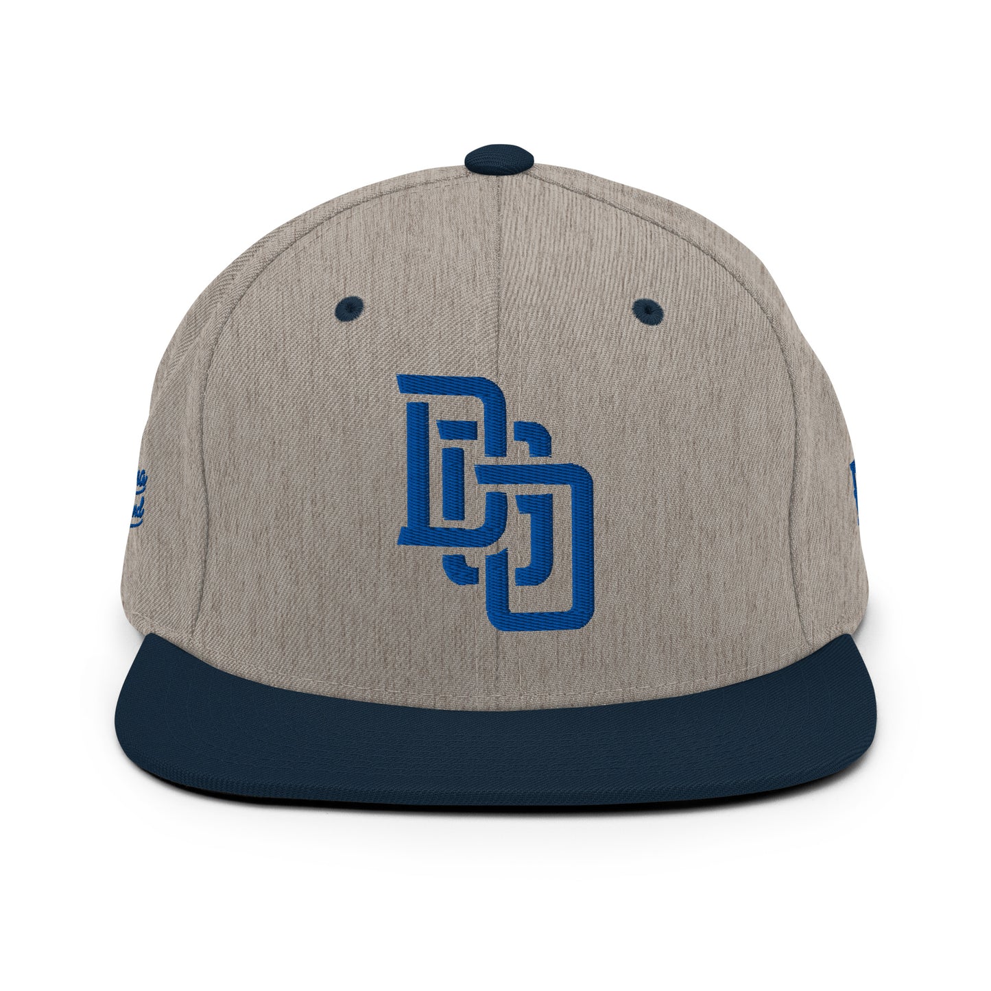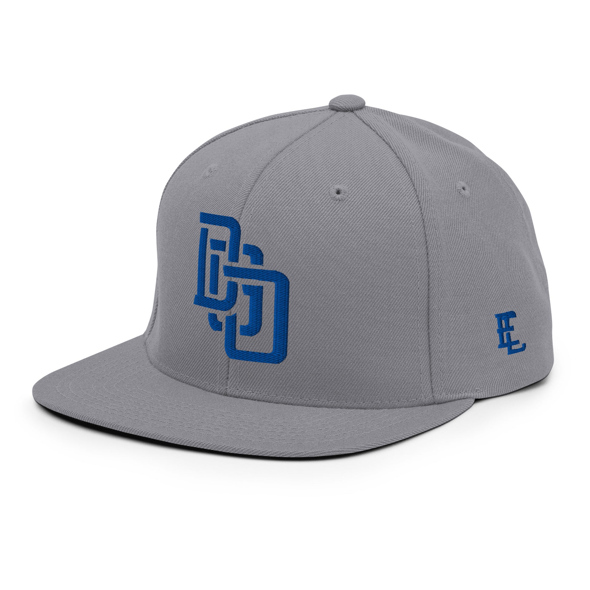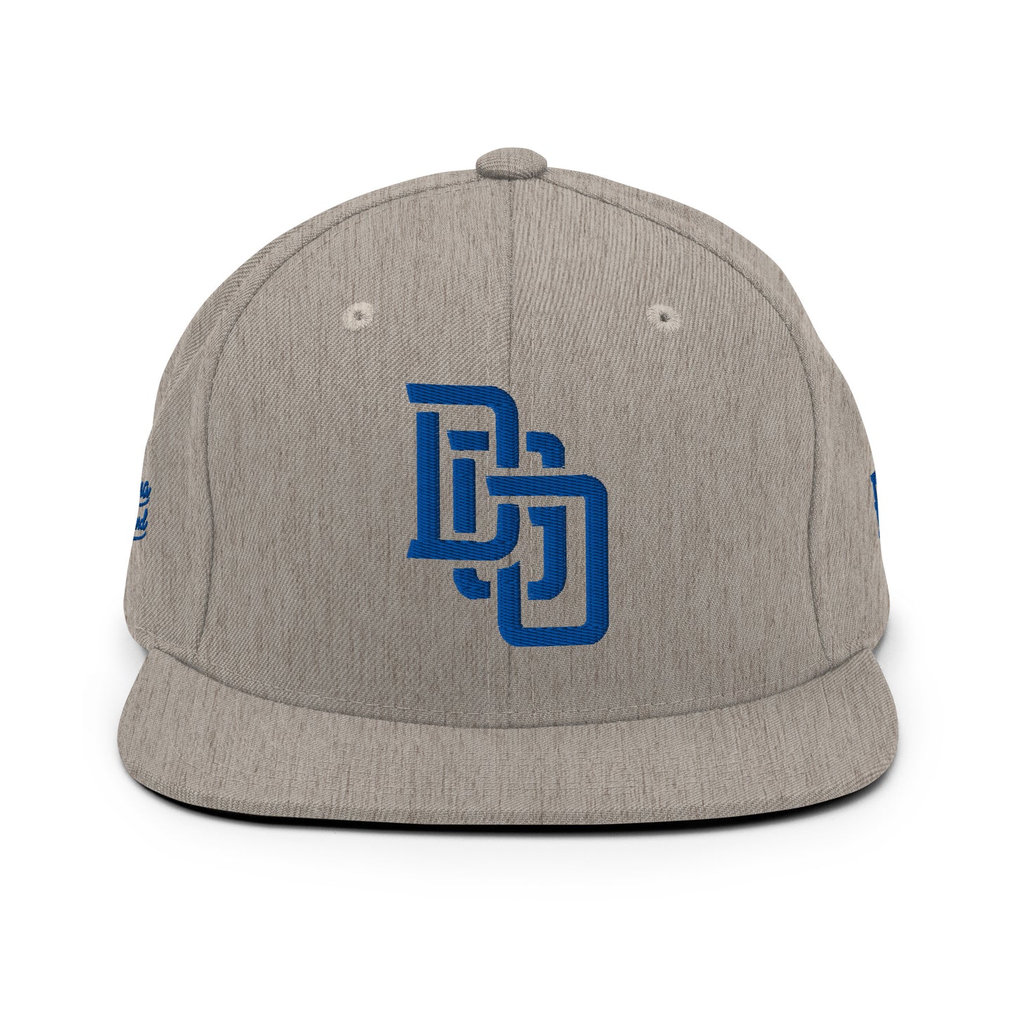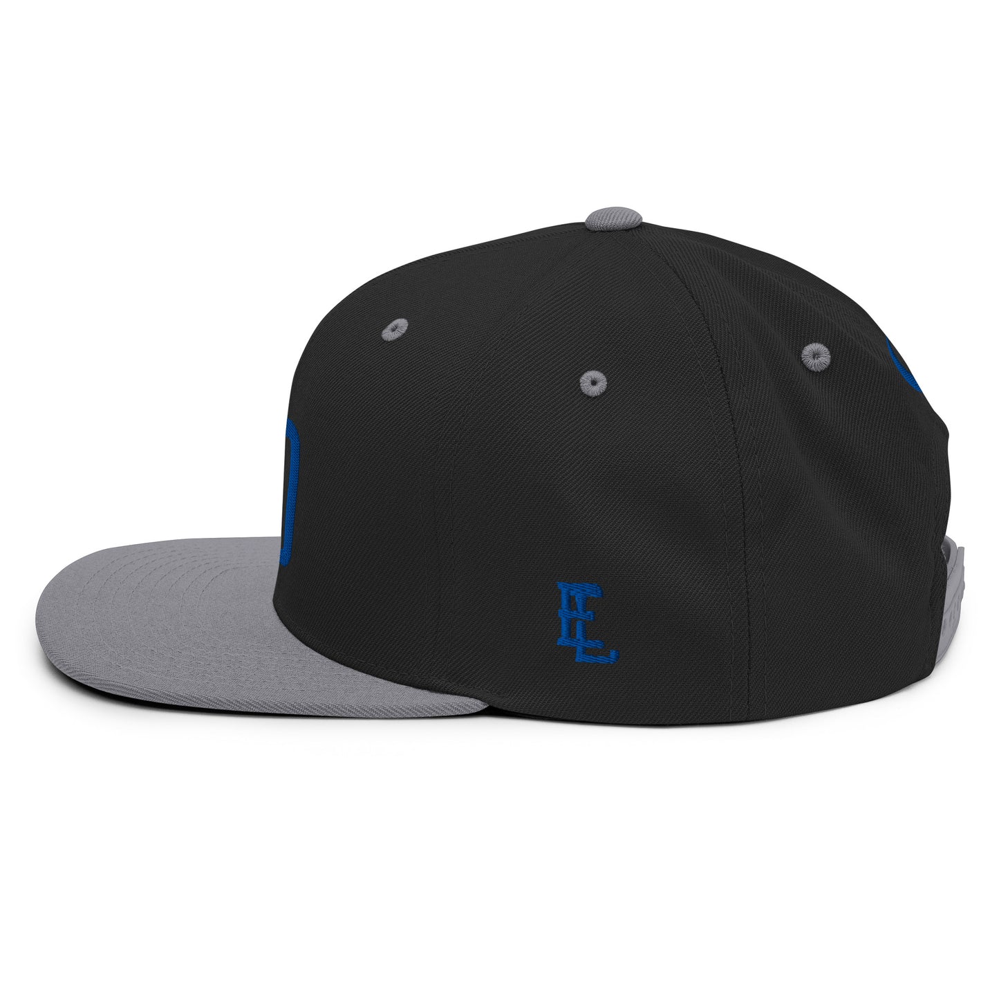"DGO" Wool Blend Snapback Hat | Yupoong 6089M | E Luna Brand PREMIUM Quadcrest 4 Royal Thread Logos: Front, Left, Right Signature & Back [3D Puff Edition]