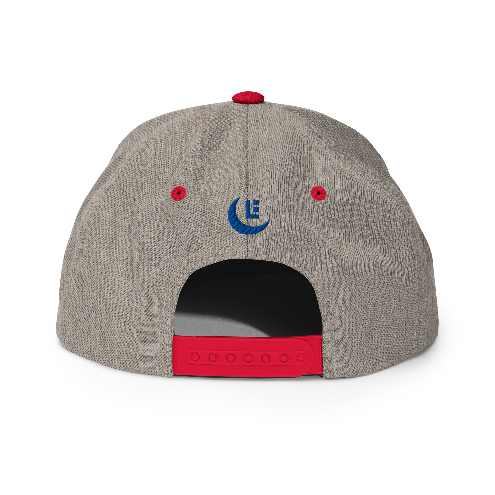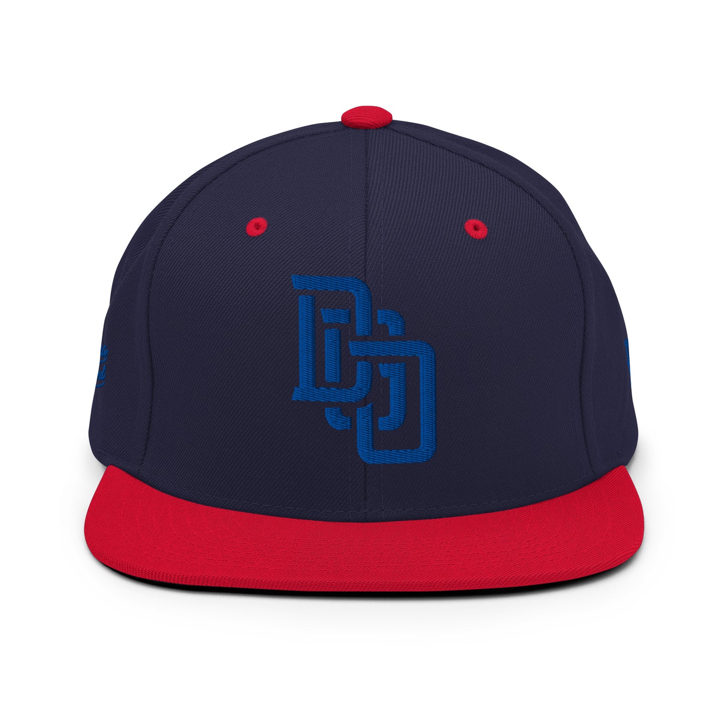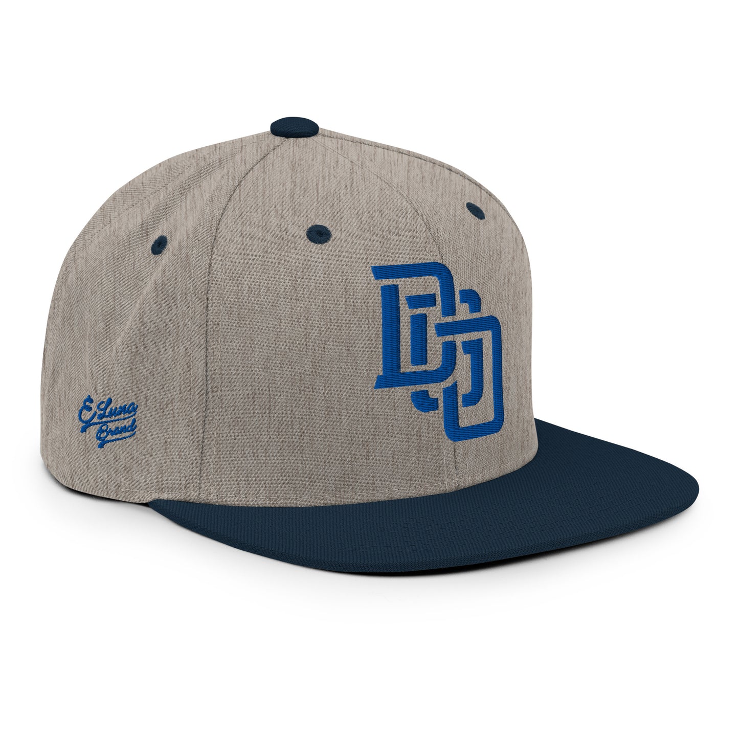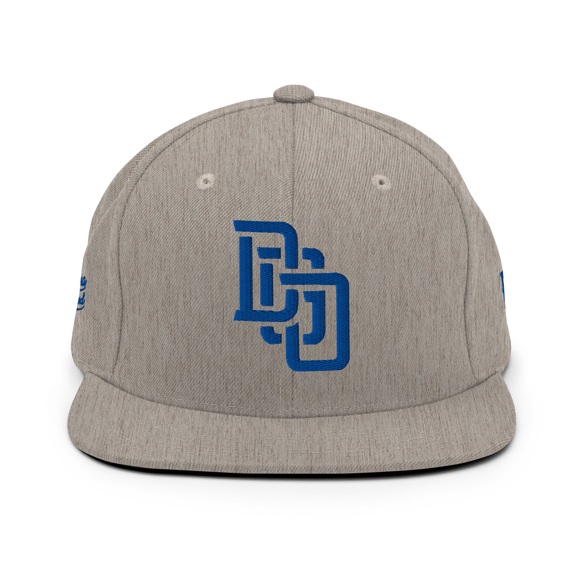 "DGO" Wool Blend Snapback Hat | Yupoong 6089M | E Luna Brand PREMIUM Quadcrest 4 Royal Thread Logos: Front, Left, Right Signature & Back [3D Puff Edition]