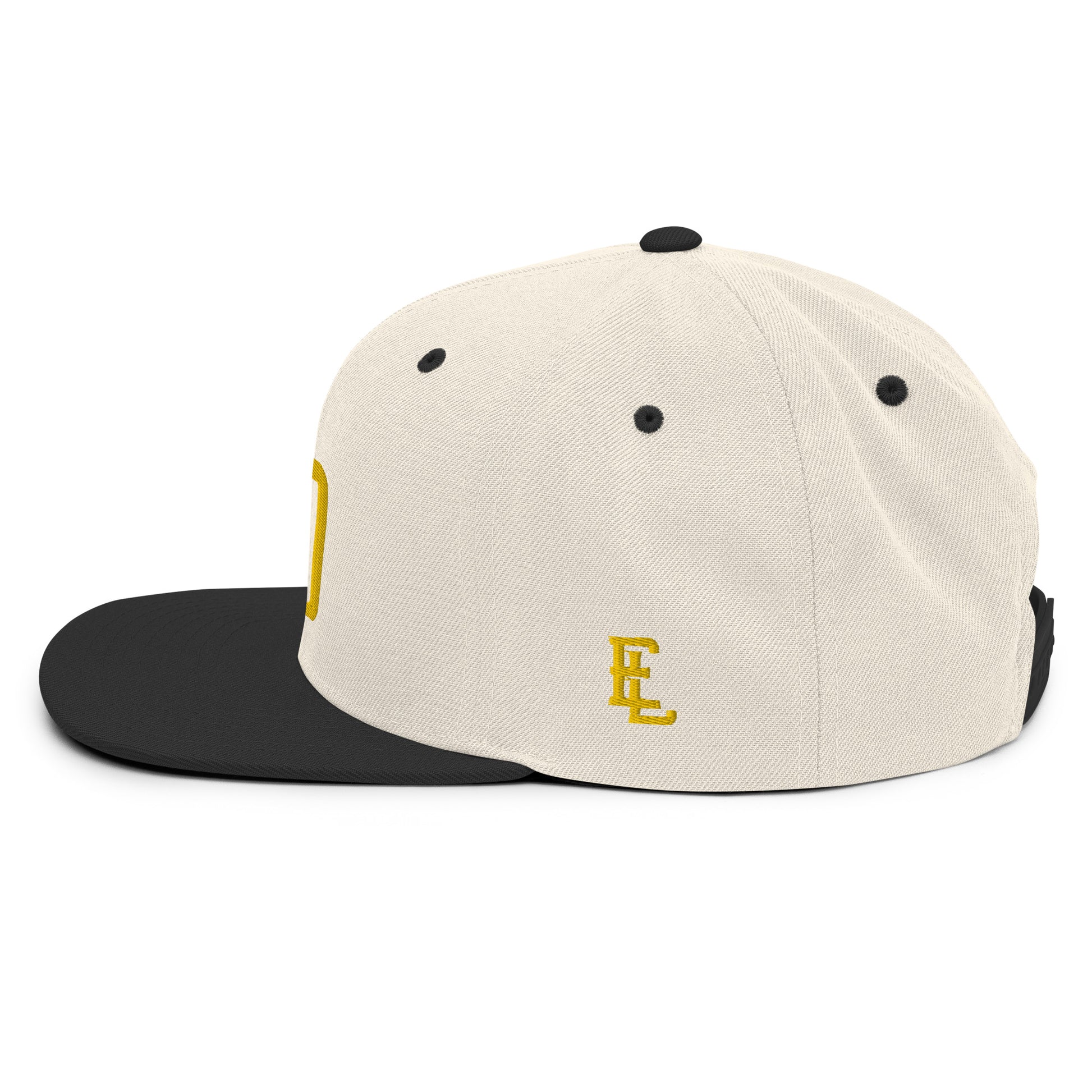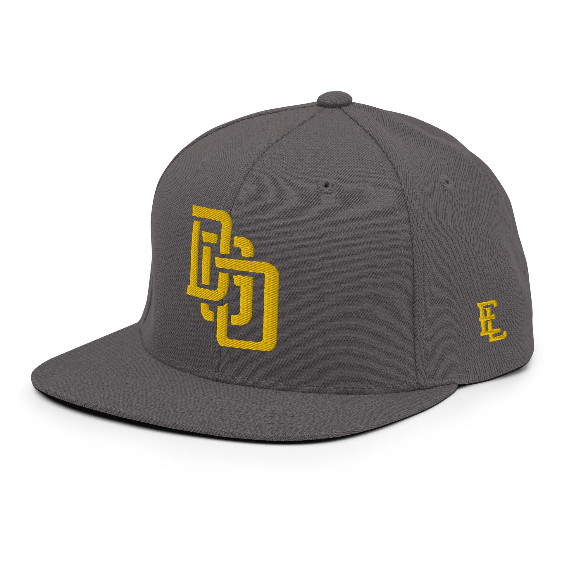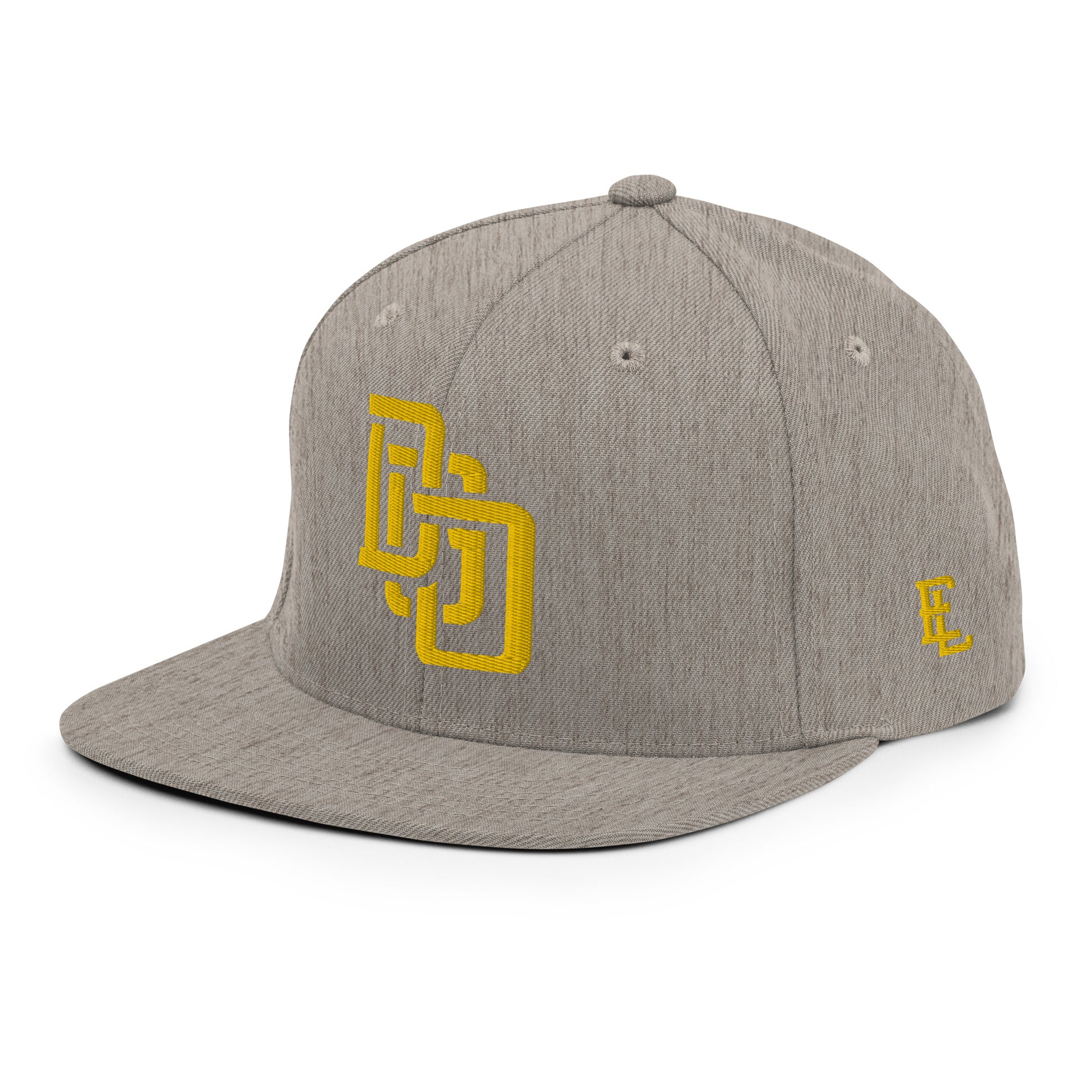 "DGO" Wool Blend Snapback Hat | Yupoong 6089M | E Luna Brand ESSENTIAL Duocrest 2 Gold Thread Logos: Front & Left