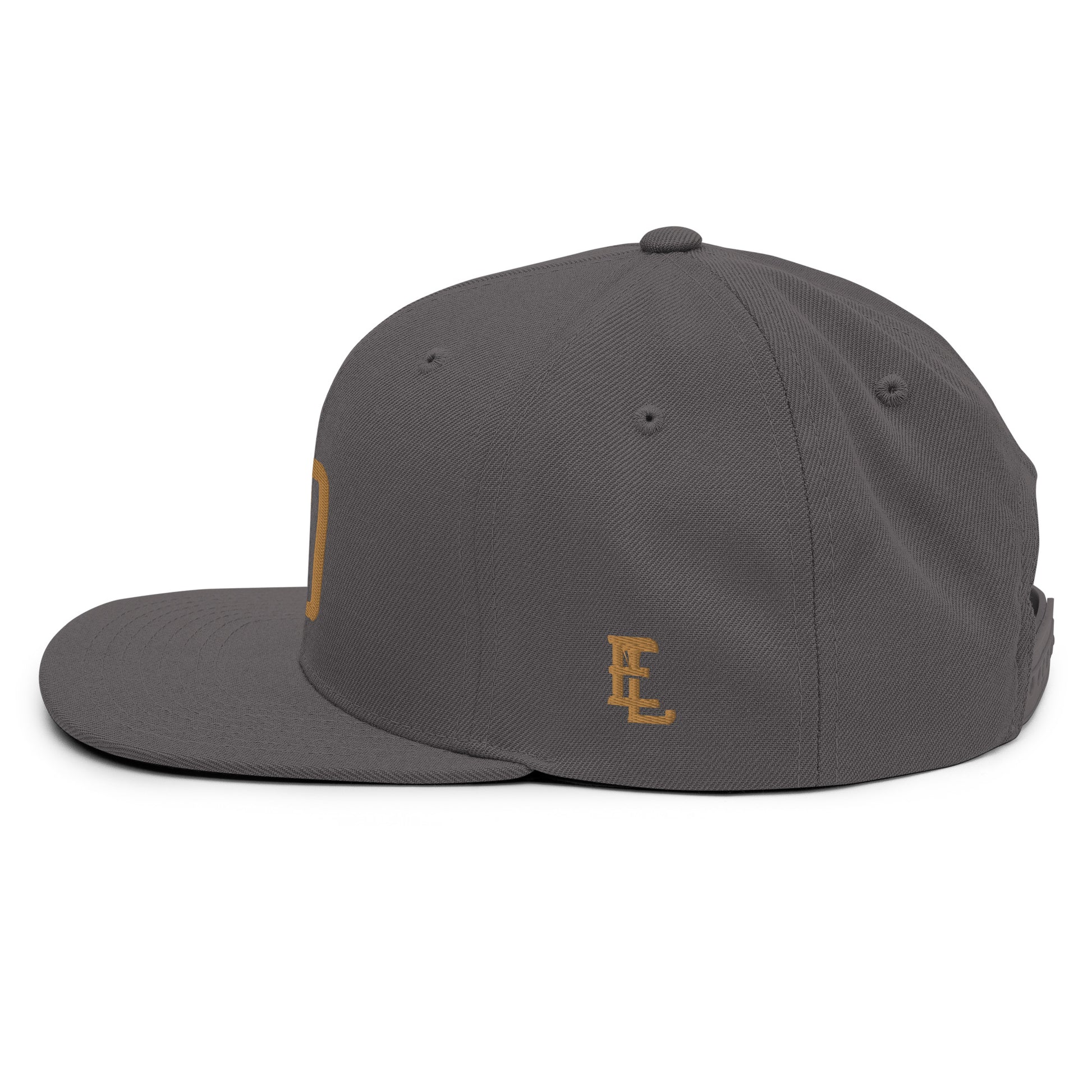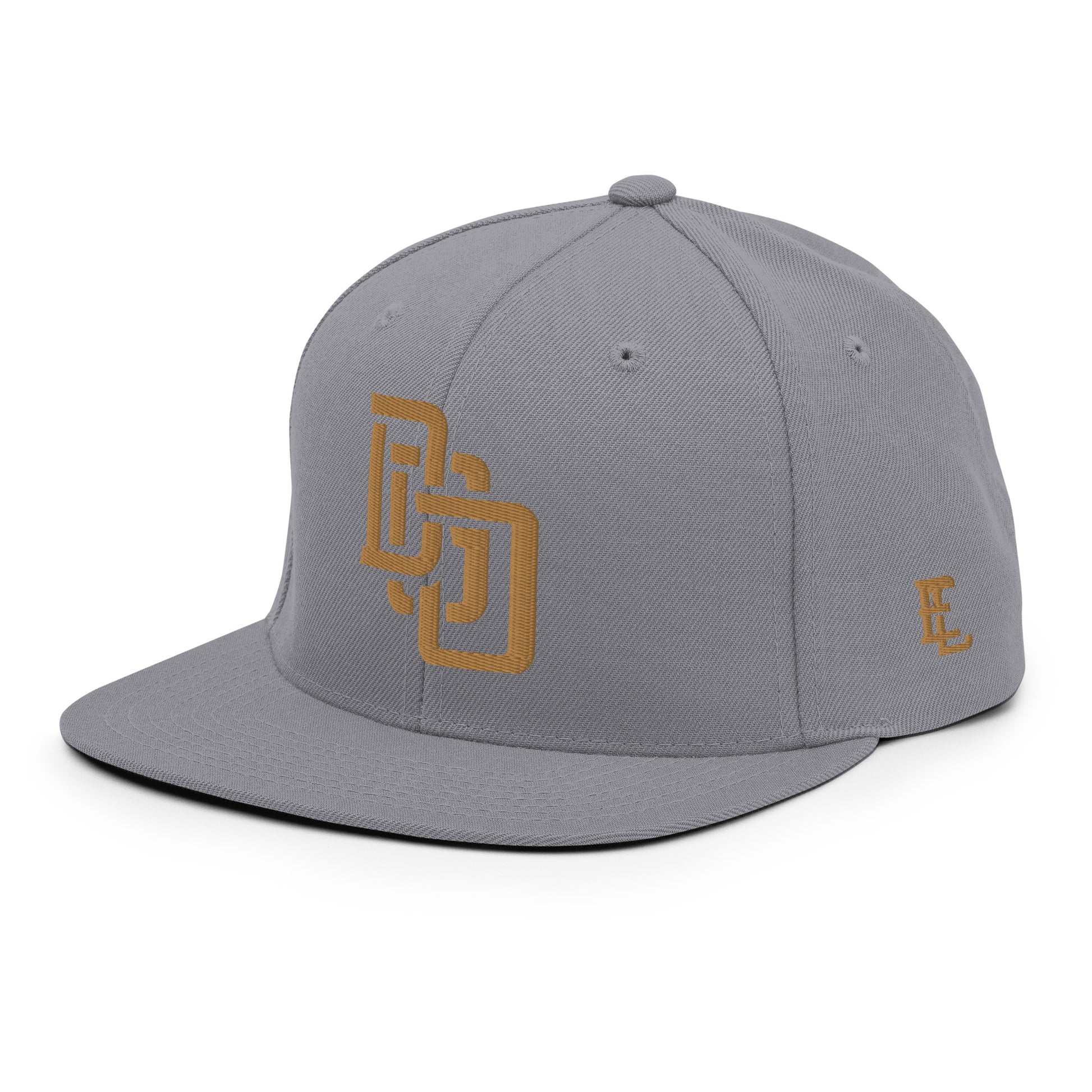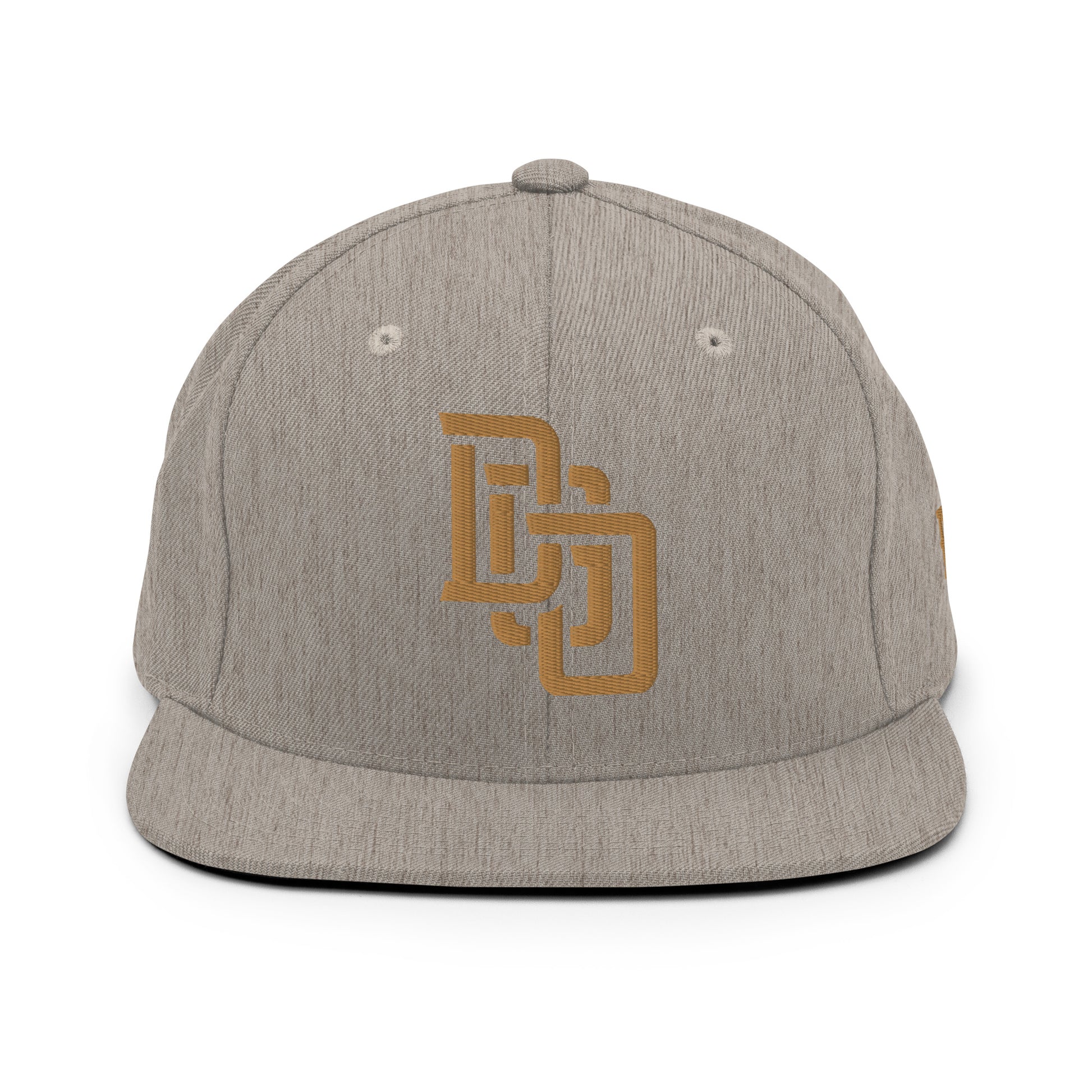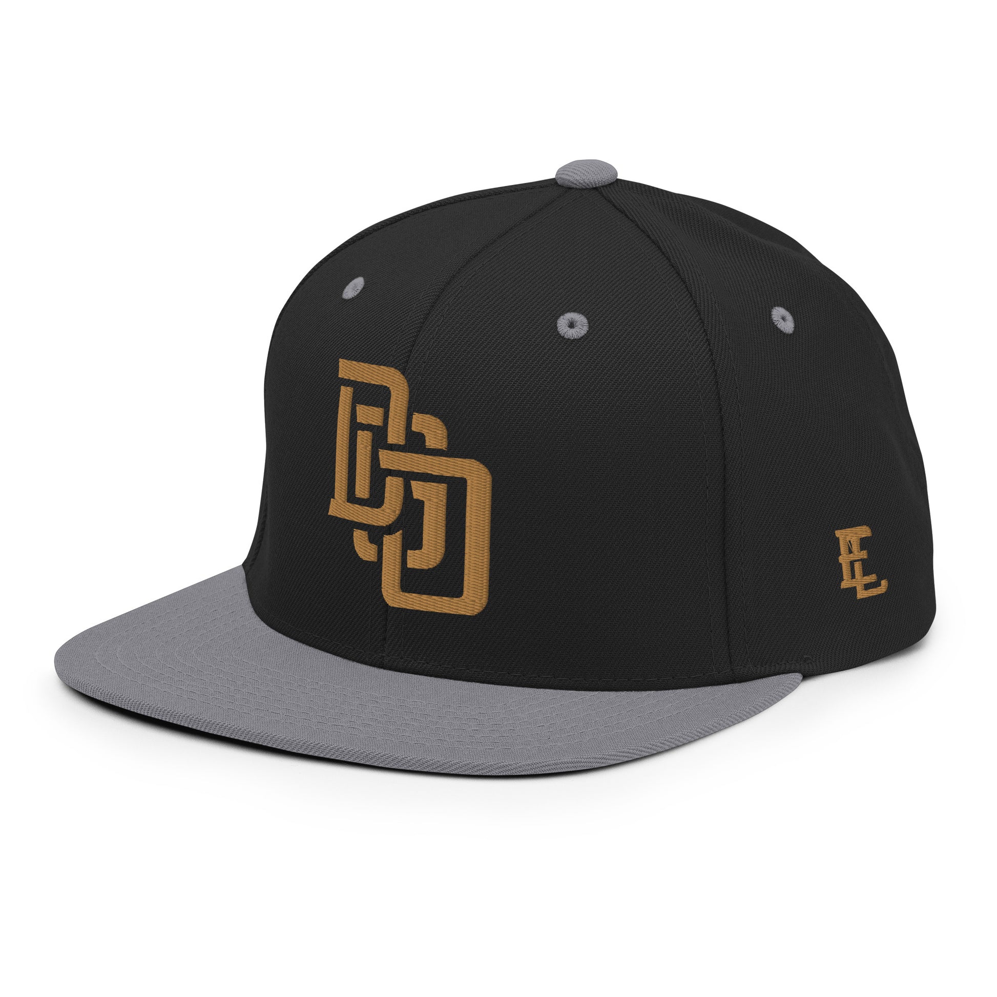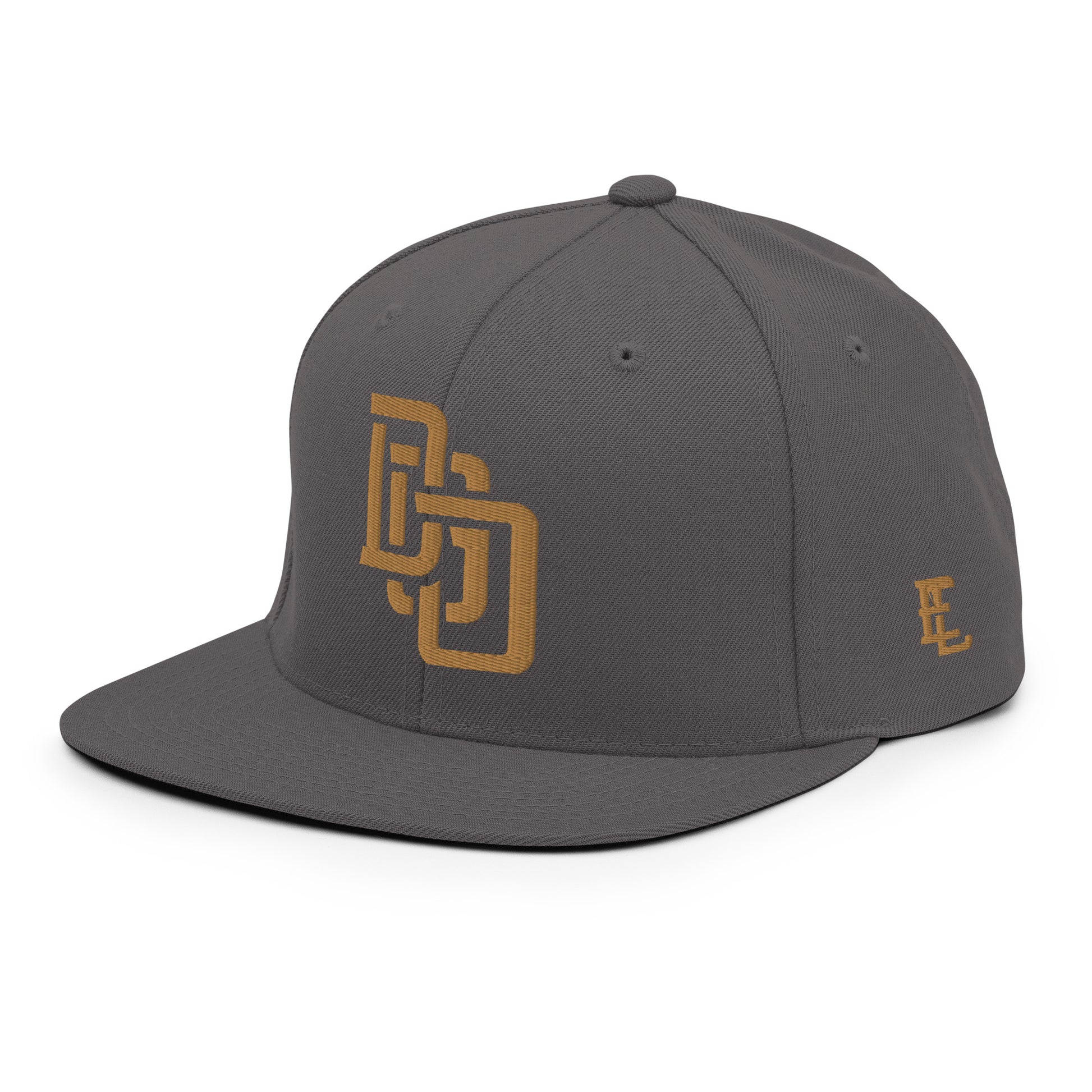 "DGO" Wool Blend Snapback Hat | Yupoong 6089M | E Luna Brand ESSENTIAL Duocrest 2 Old Gold Thread Logos: Front & Left