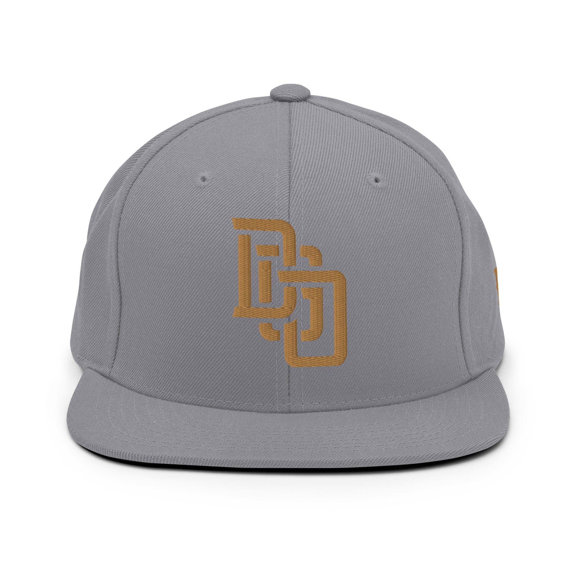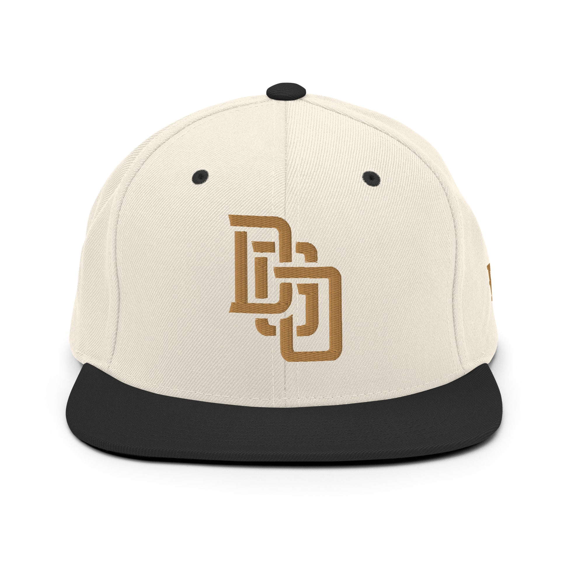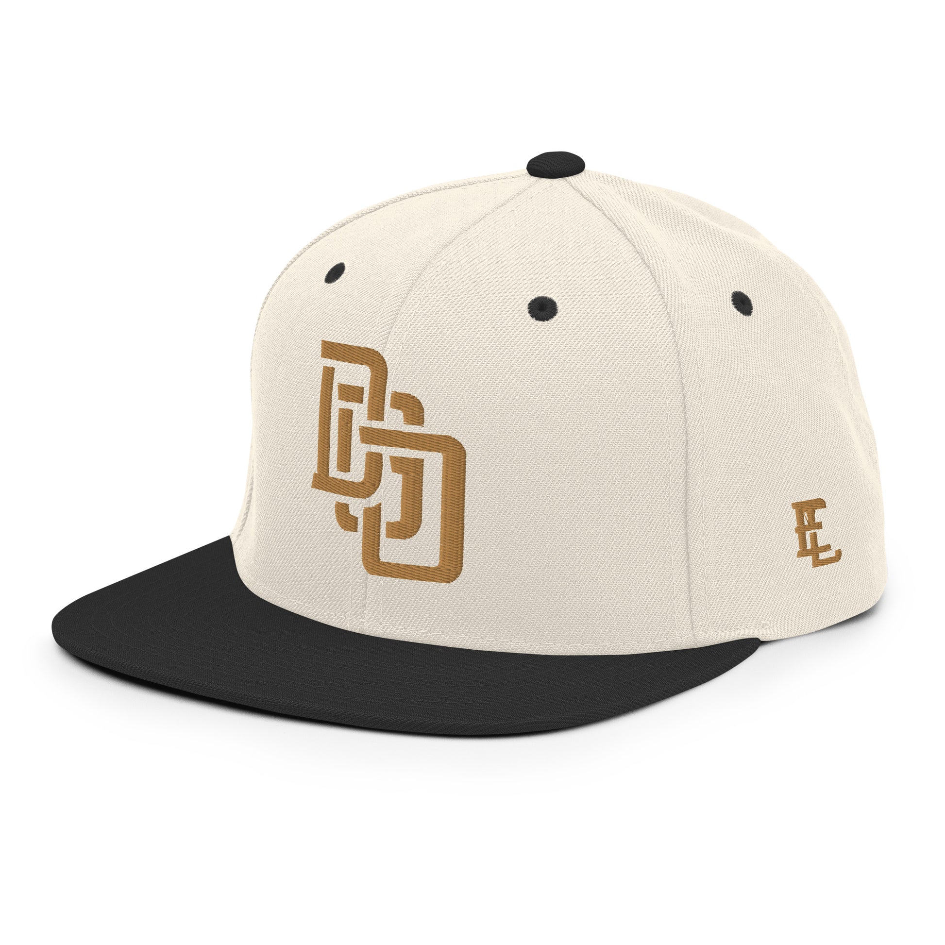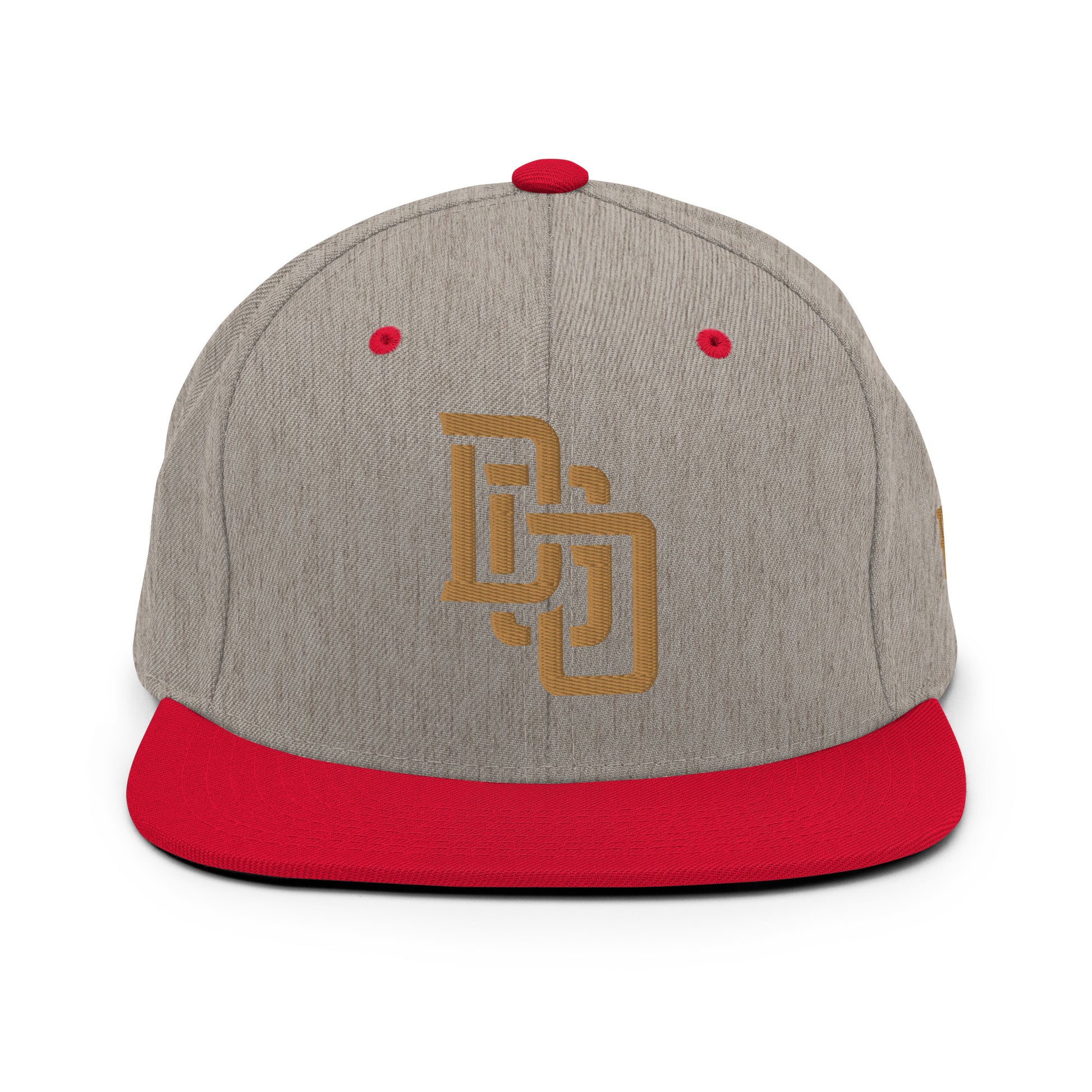 "DGO" Wool Blend Snapback Hat | Yupoong 6089M | E Luna Brand ESSENTIAL Duocrest 2 Old Gold Thread Logos: Front & Left