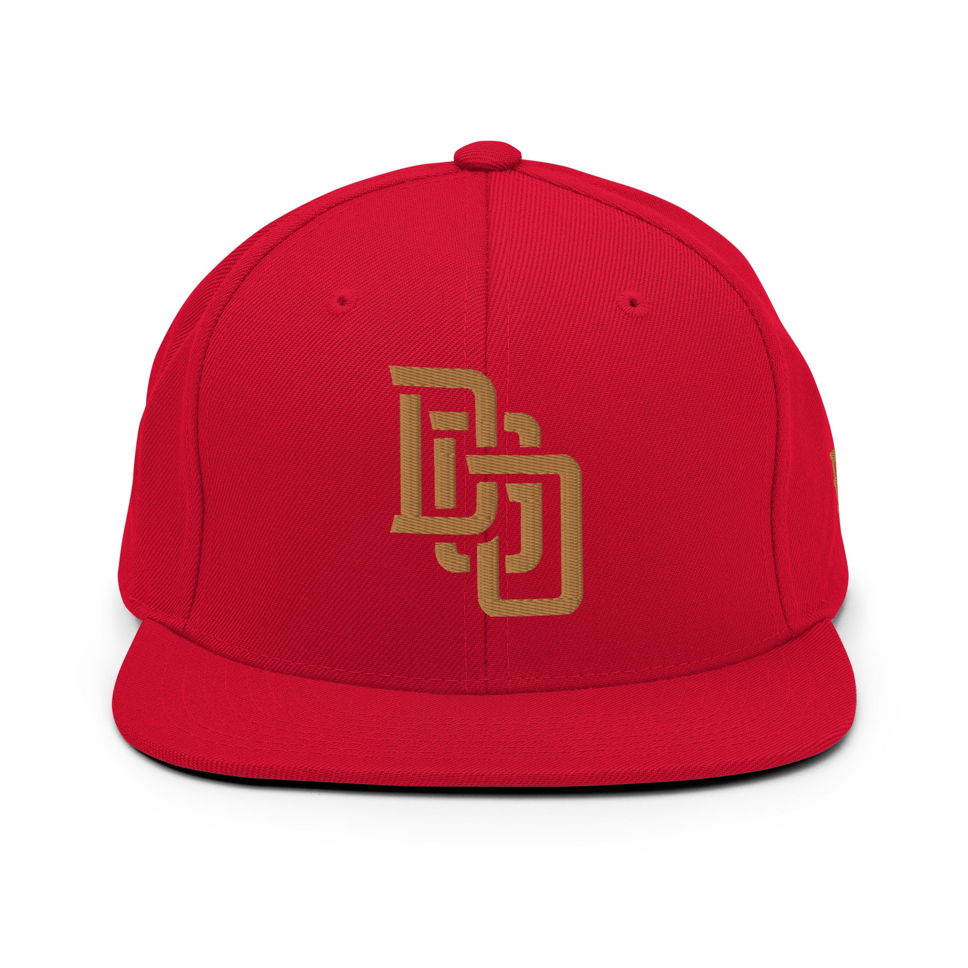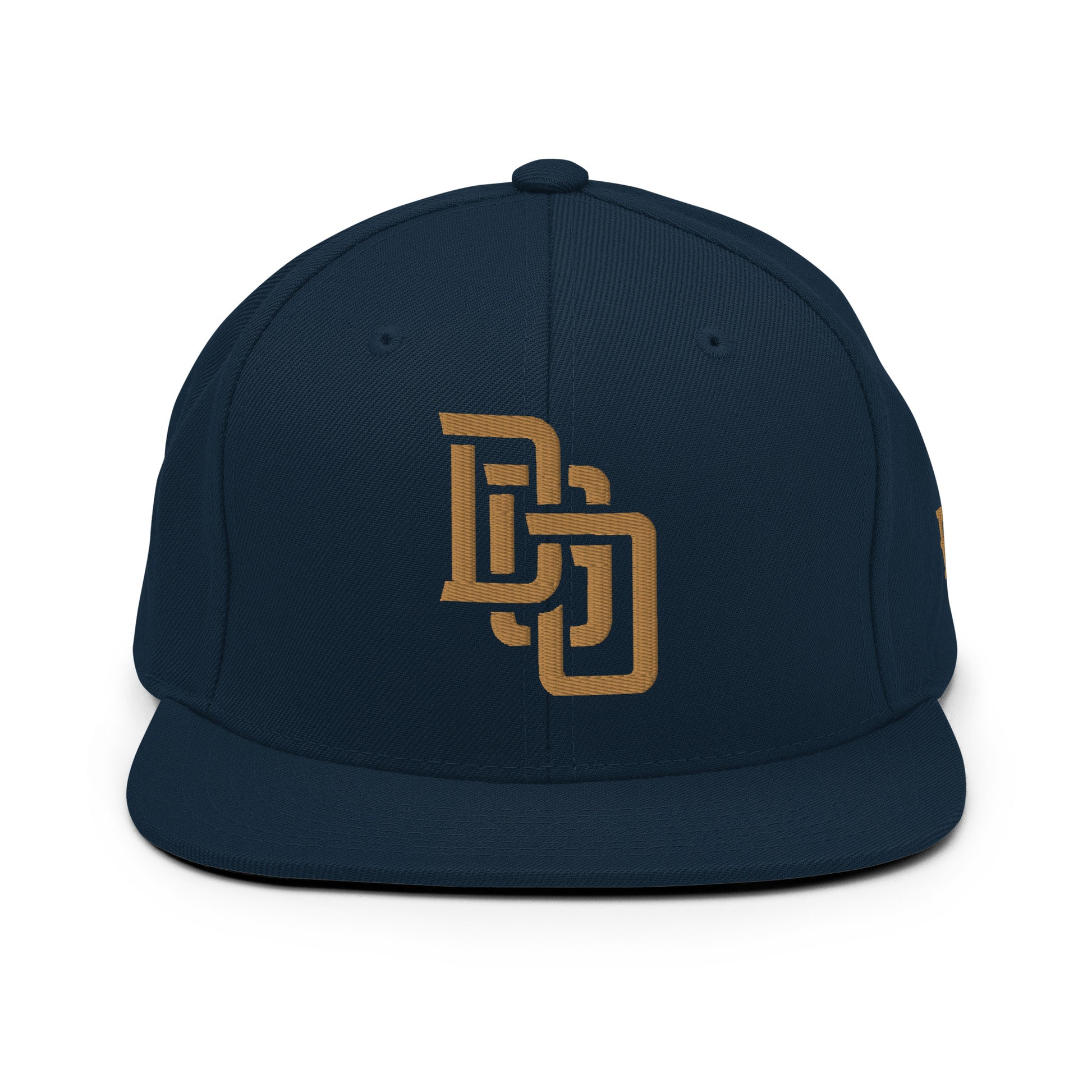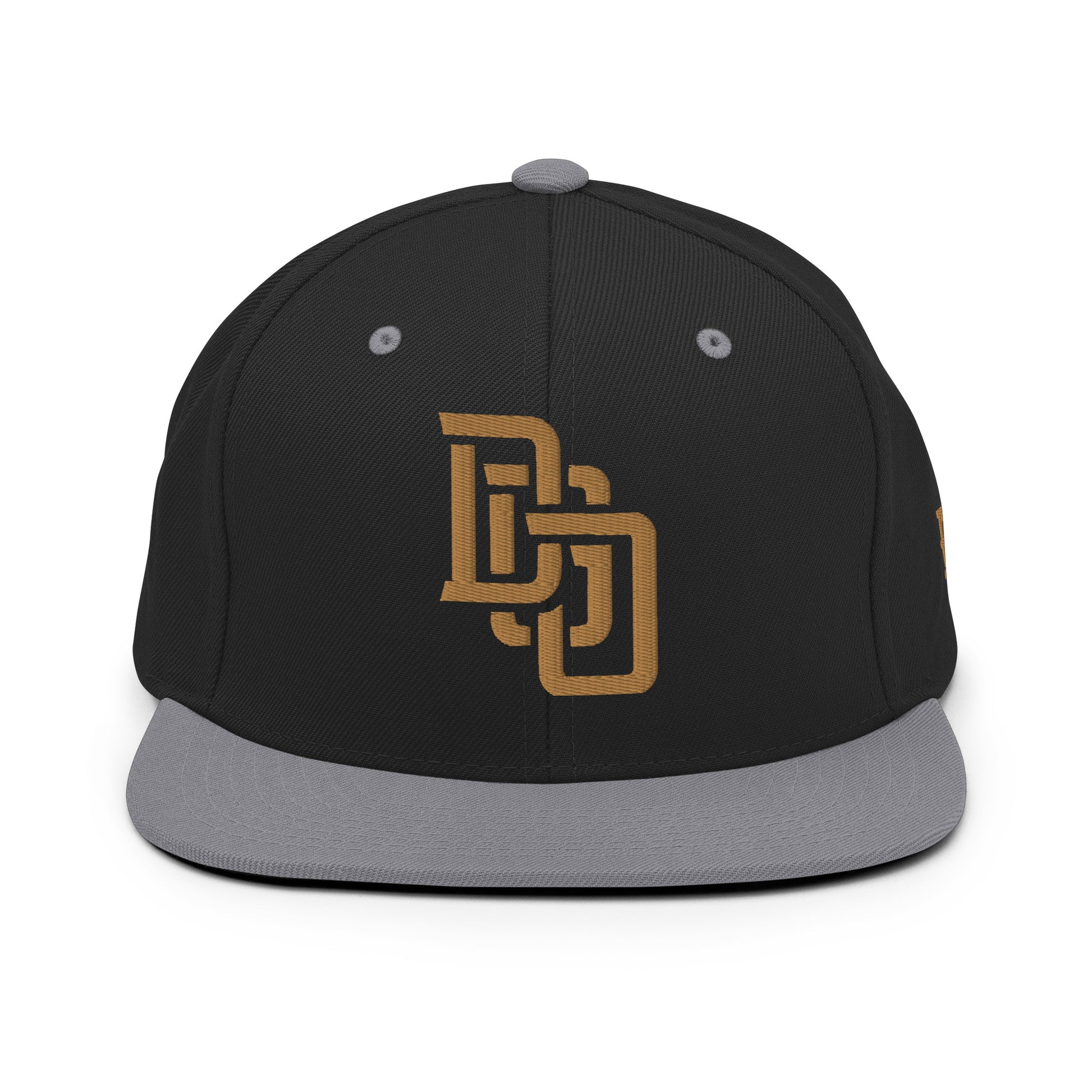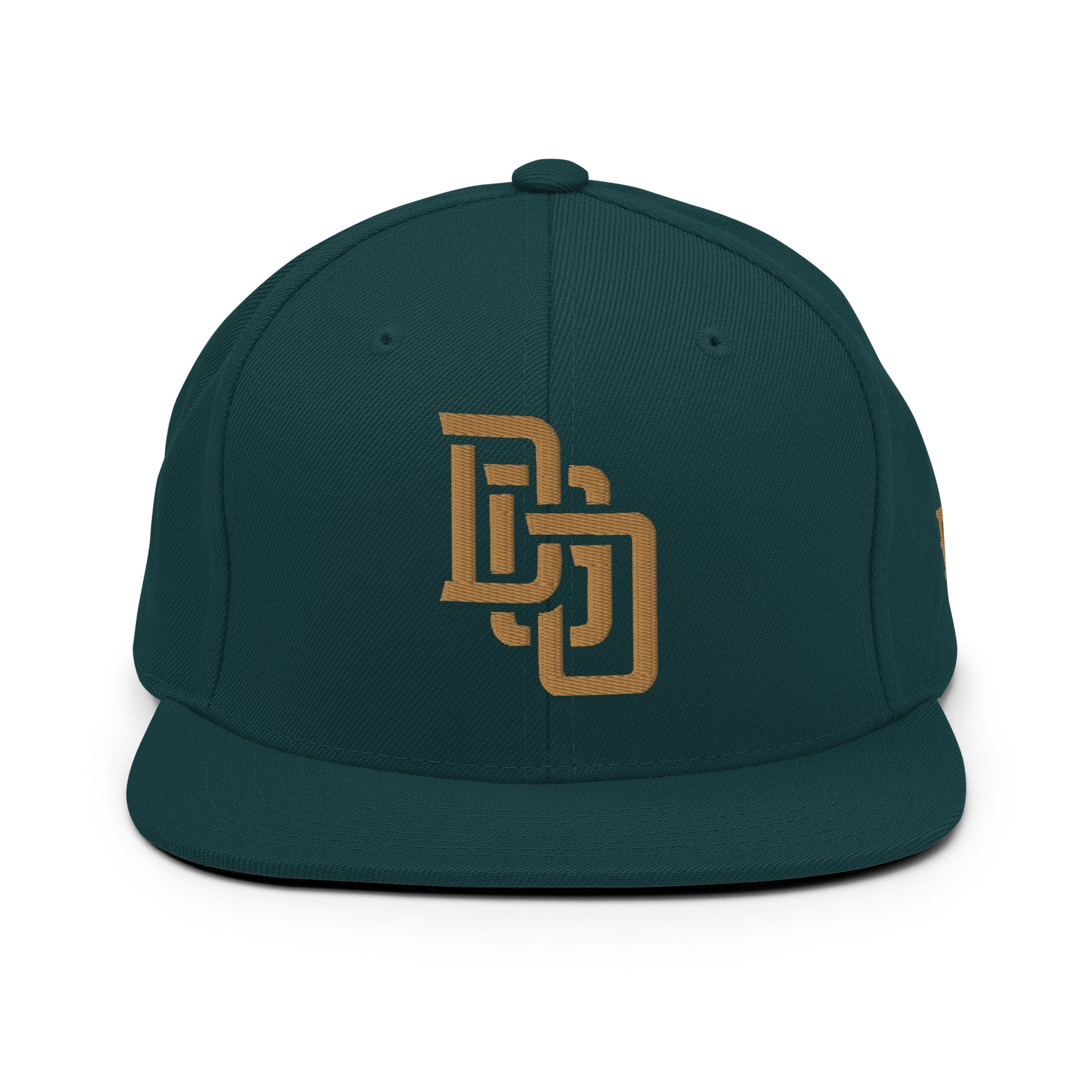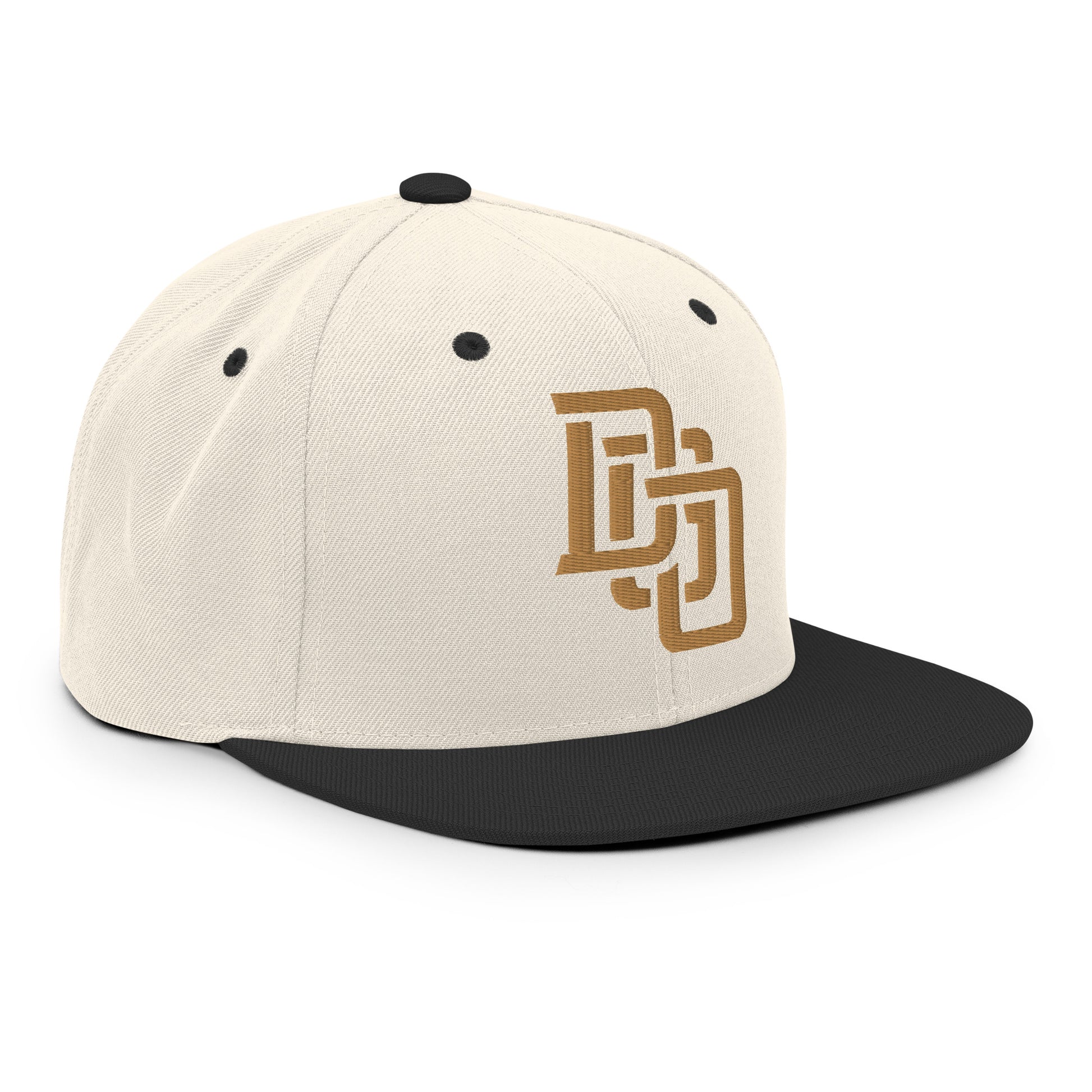 "DGO" Wool Blend Snapback Hat | Yupoong 6089M | E Luna Brand ESSENTIAL Duocrest 2 Old Gold Thread Logos: Front & Left