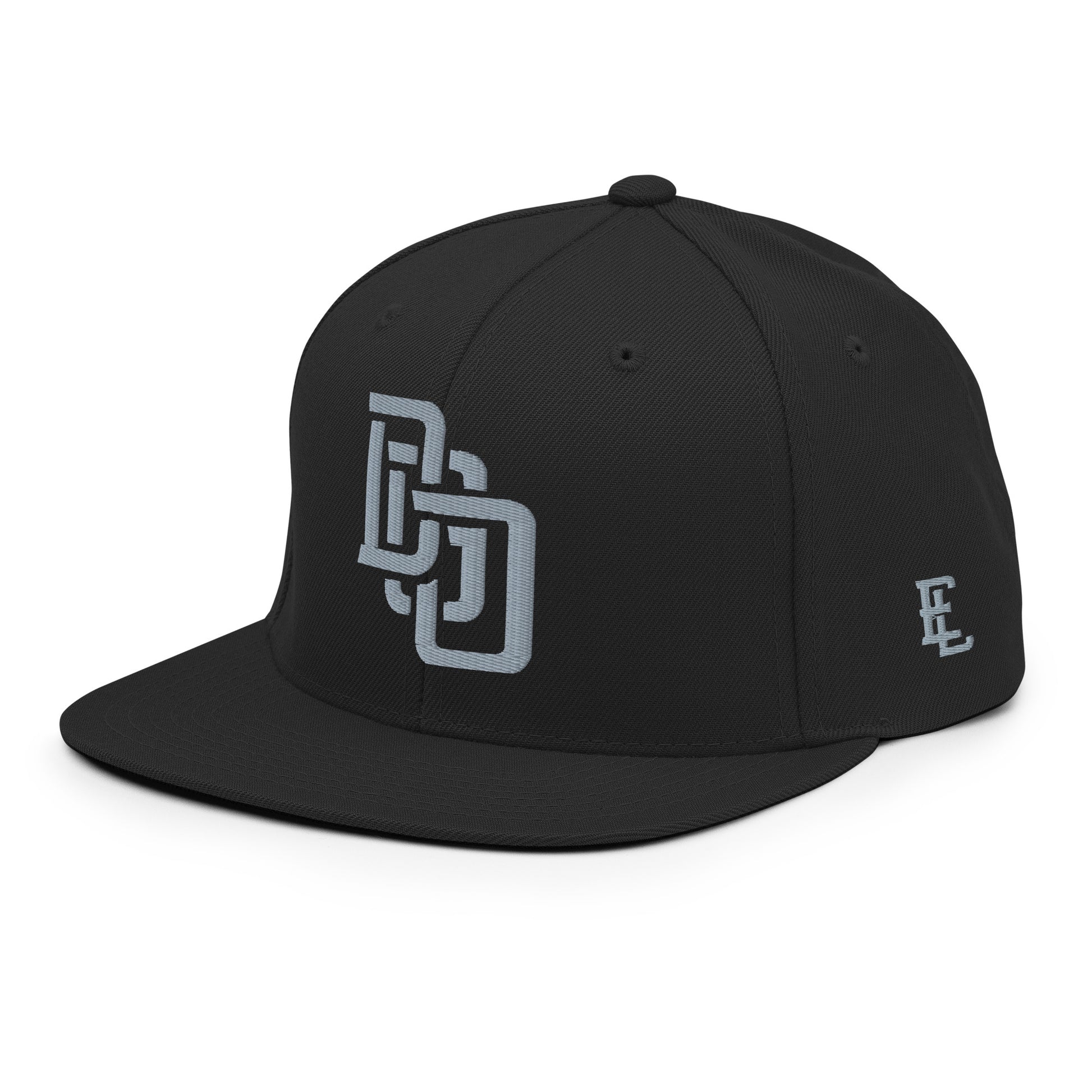 "DGO" Wool Blend Snapback Hat | Yupoong 6089M | E Luna Brand SELECT Tricrest 3 Grey Thread Logos: Front, Left & Back [3D Puff Edition]