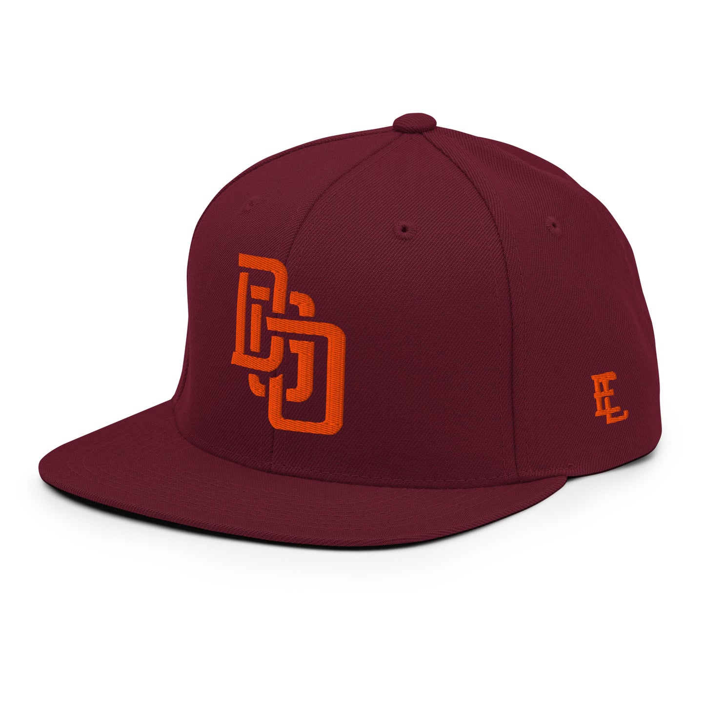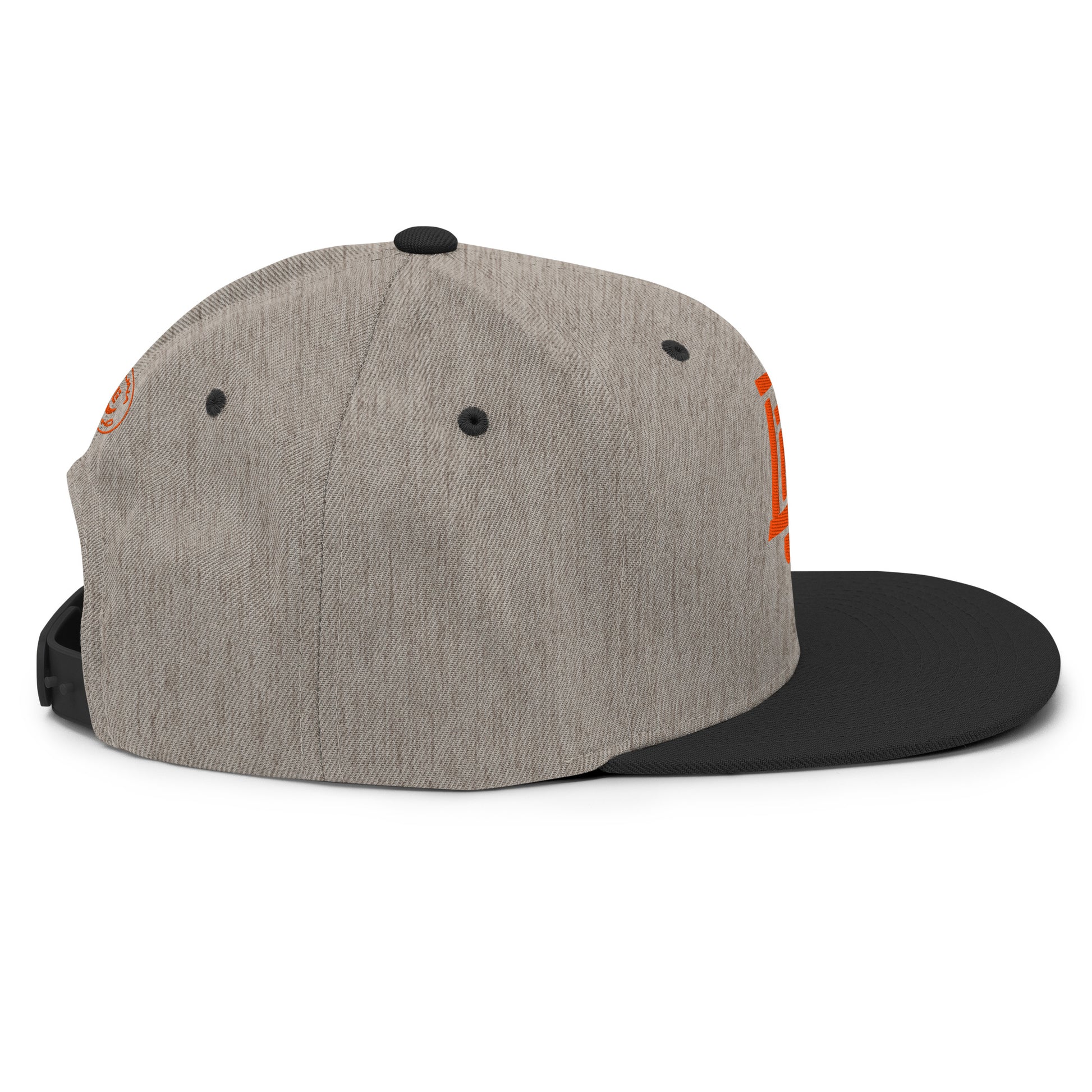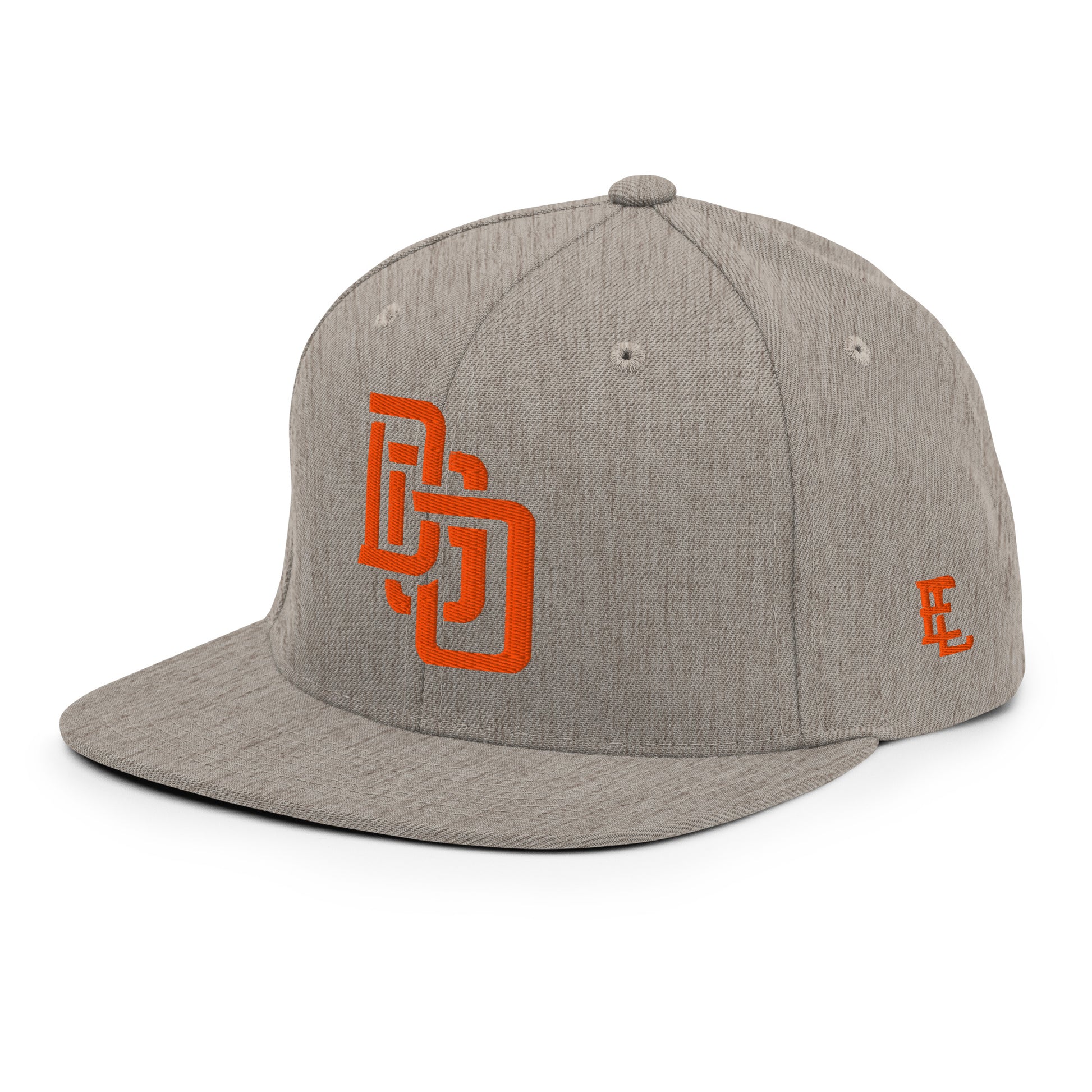"DGO" Wool Blend Snapback Hat | Yupoong 6089M | E Luna Brand SELECT Tricrest 3 Orange Thread Logos: Front, Left & Back [3D Puff Edition]