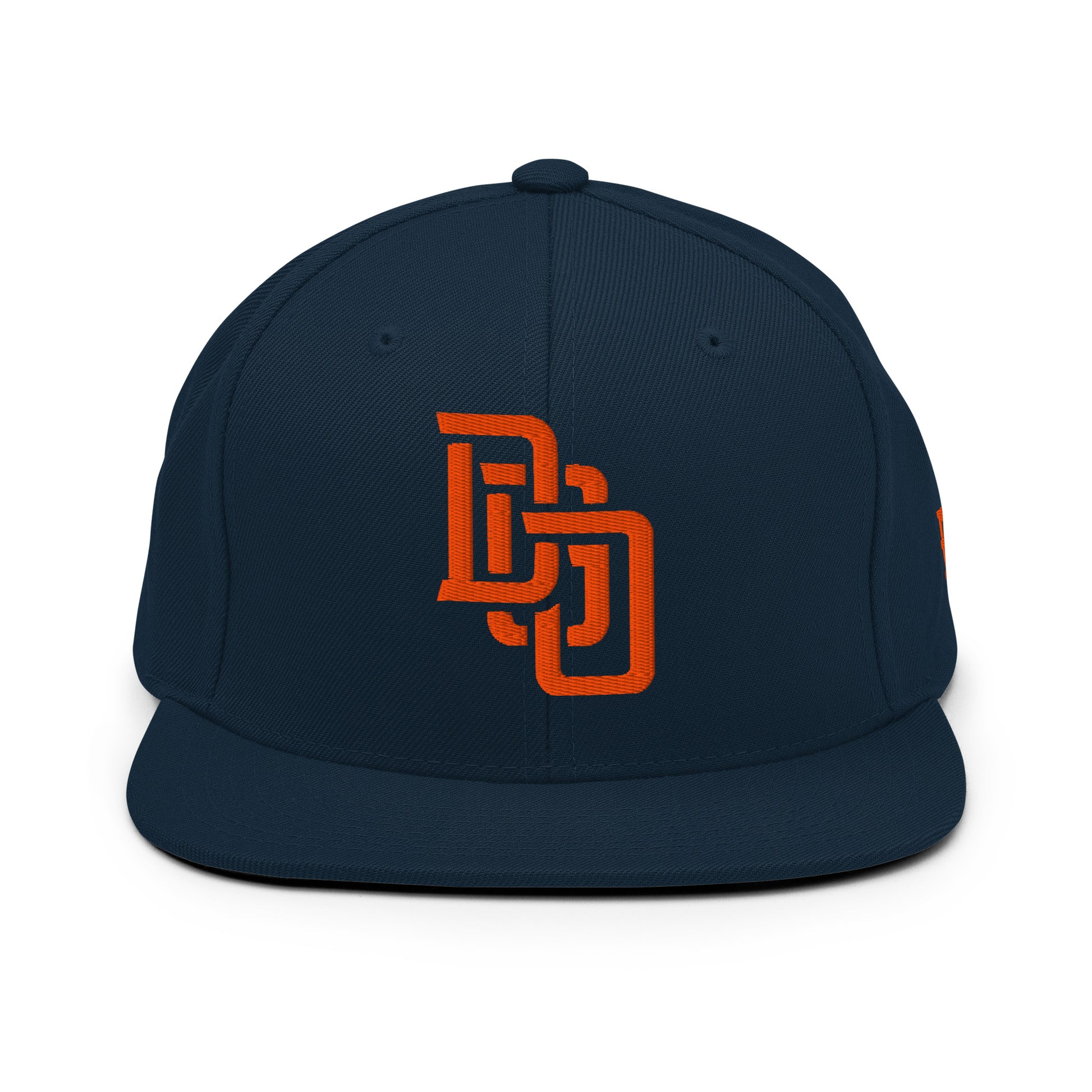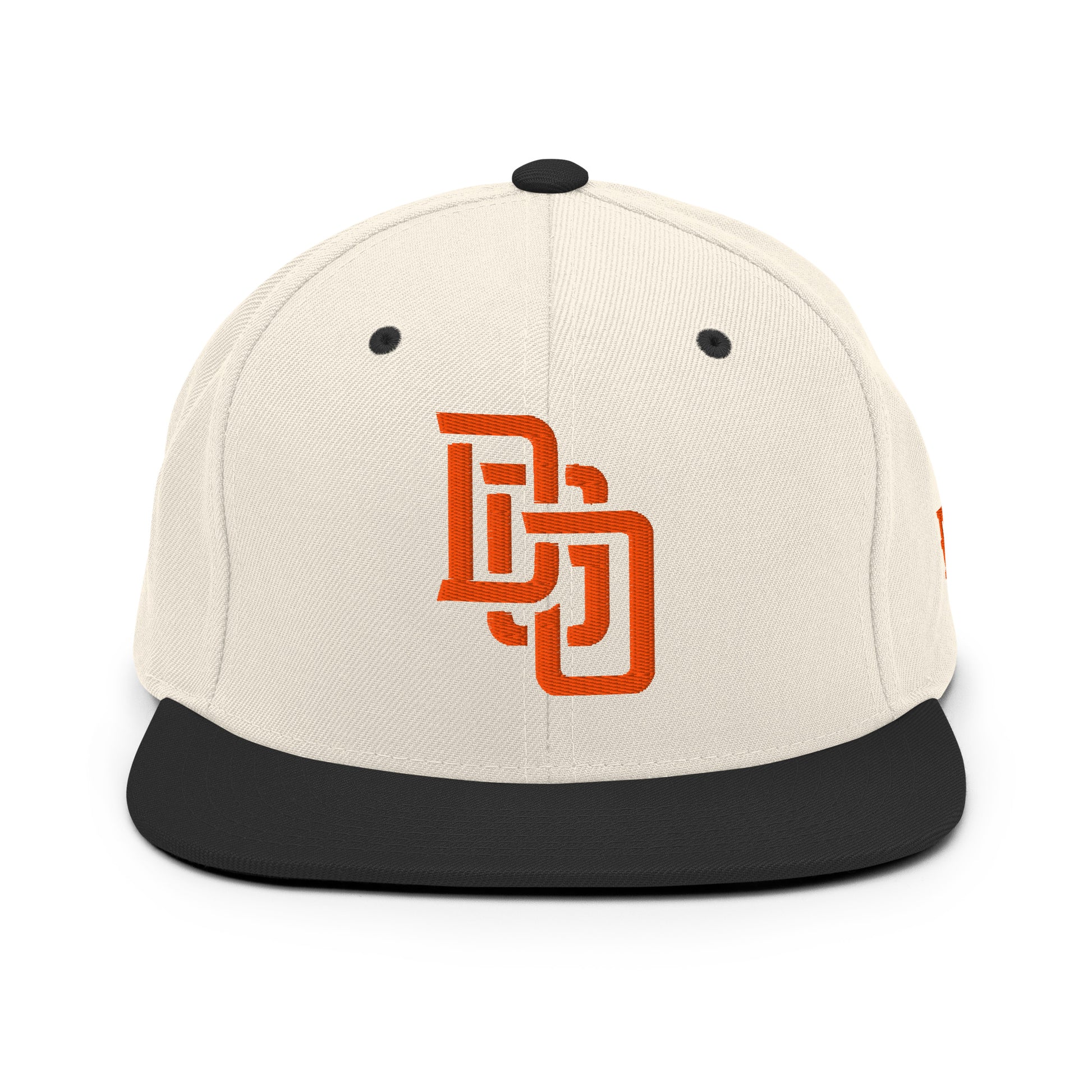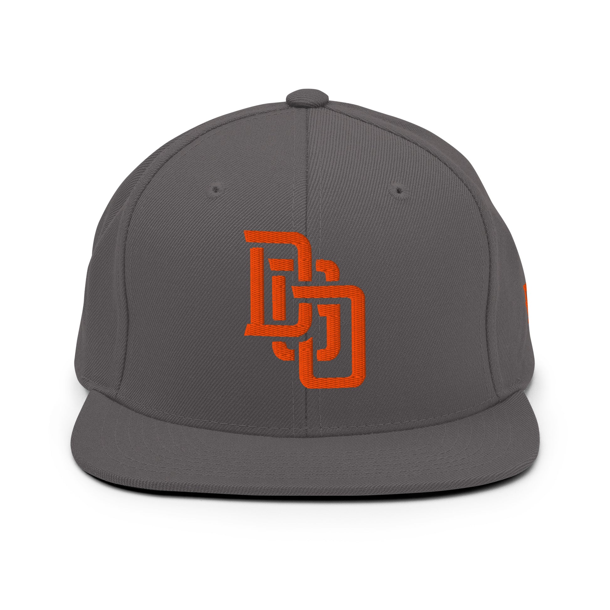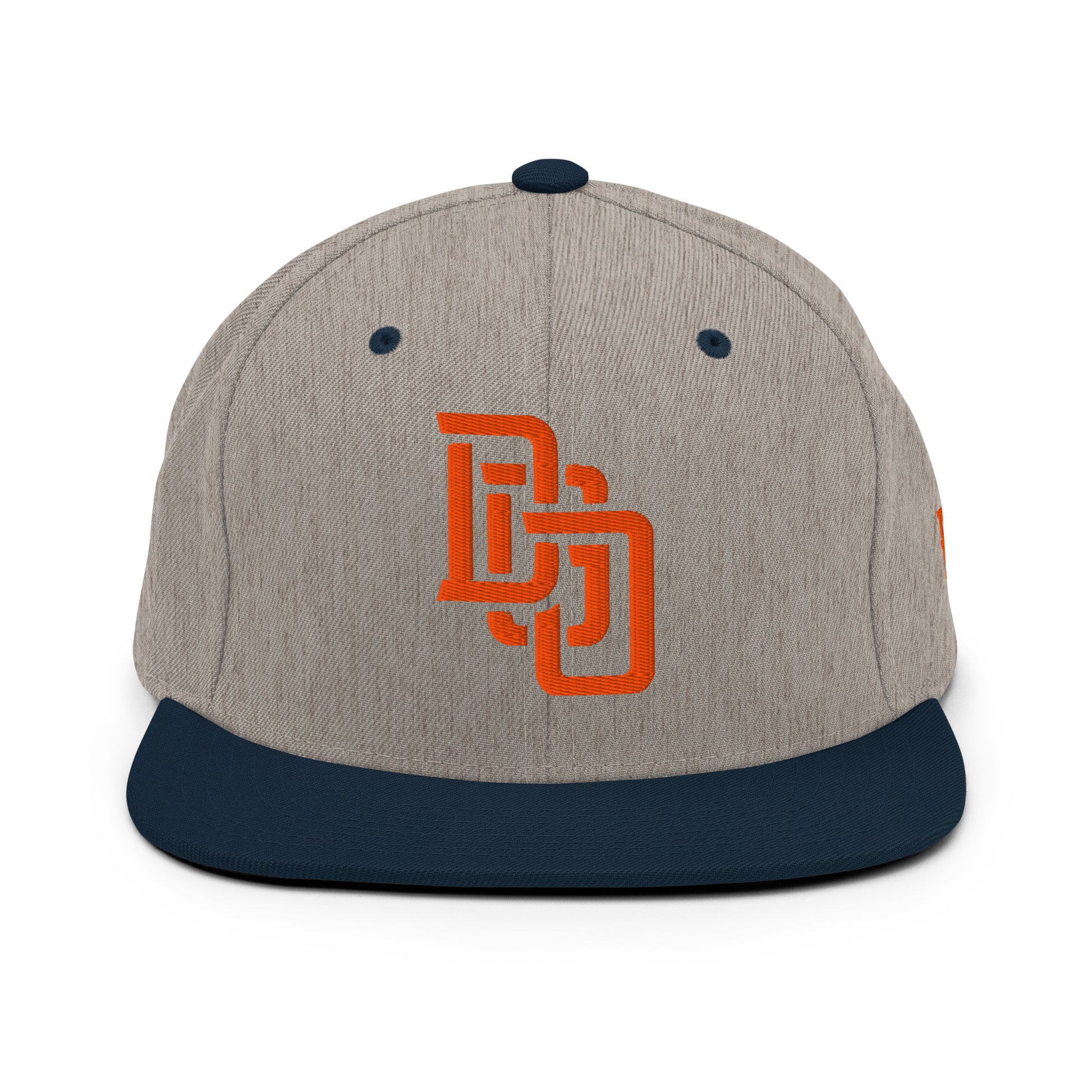 "DGO" Wool Blend Snapback Hat | Yupoong 6089M | E Luna Brand SELECT Tricrest 3 Orange Thread Logos: Front, Left & Back [3D Puff Edition]