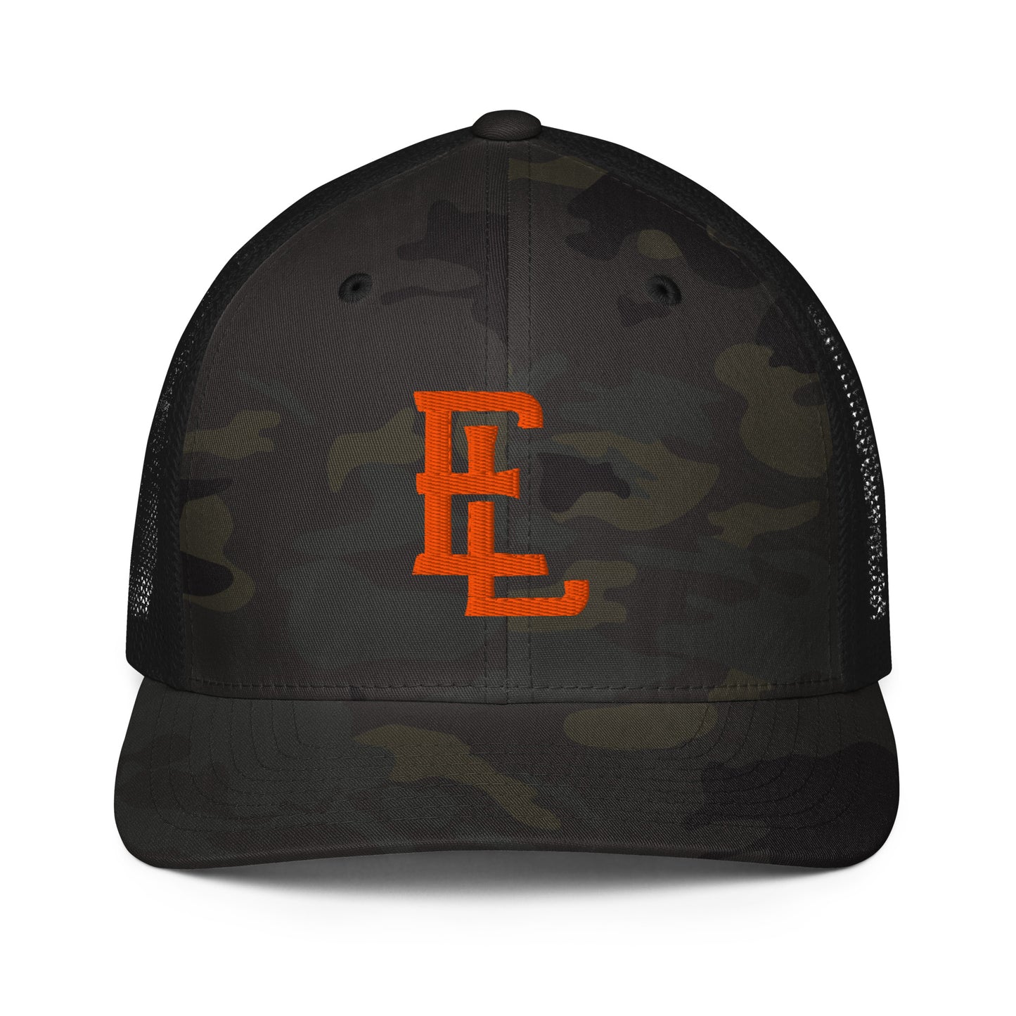 "EL" Closed-Back Trucker Cap | E Luna Brand CLASSIC | 1 Orange Thread Logo | 3D Puff Edition