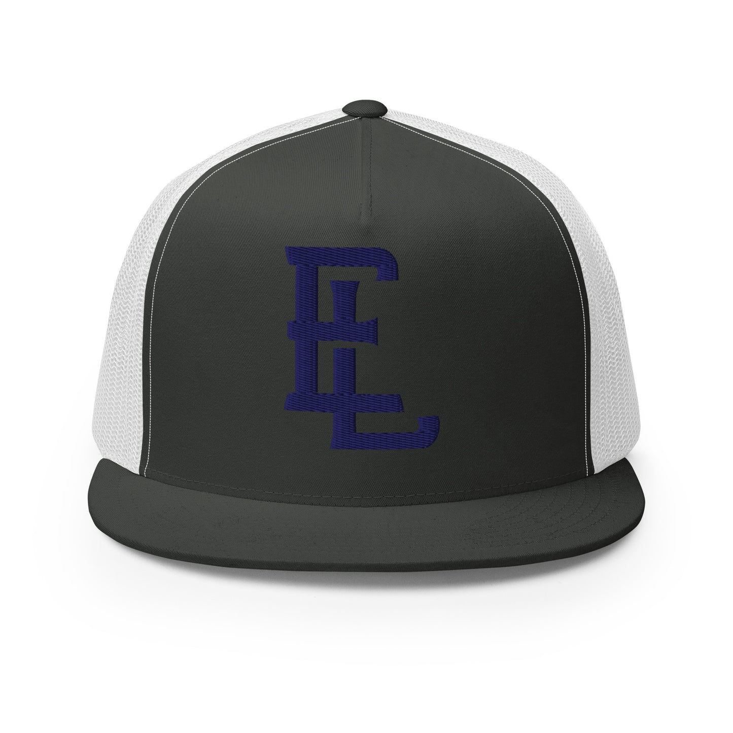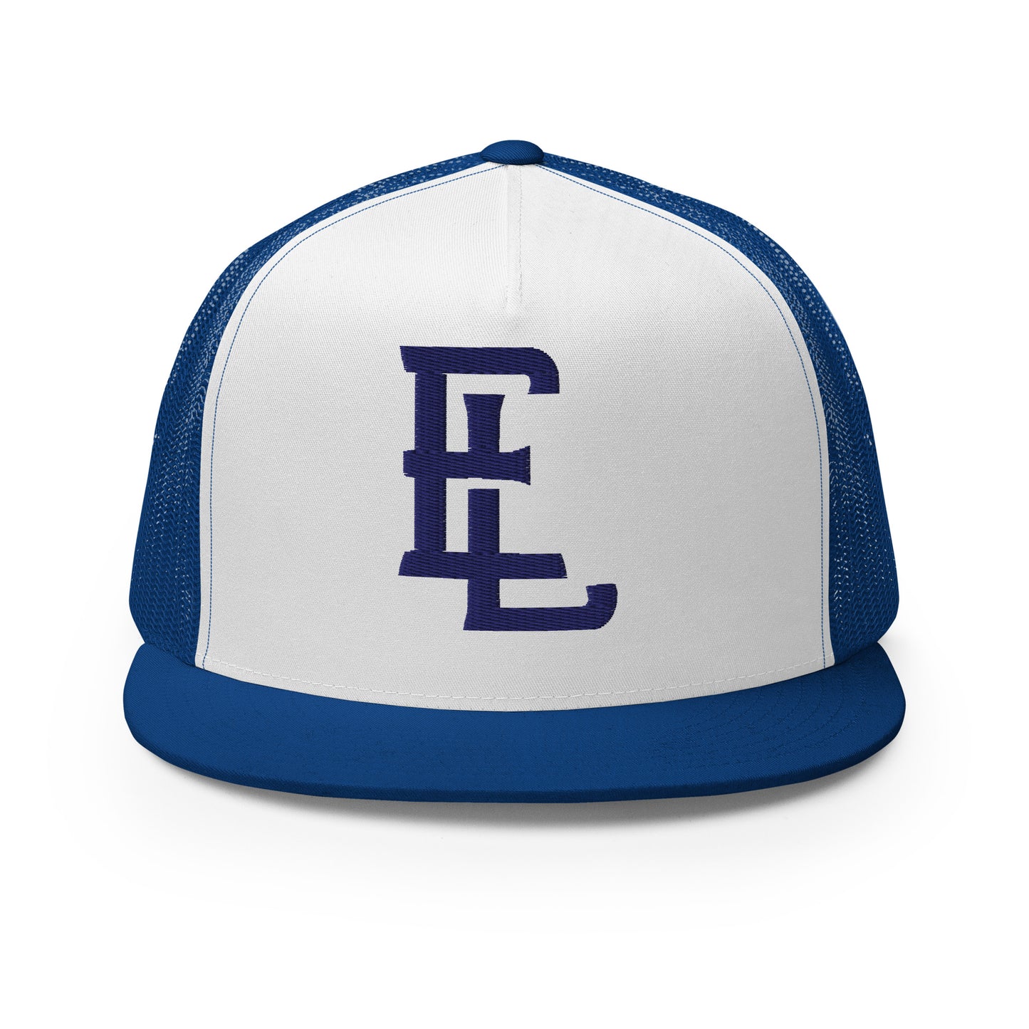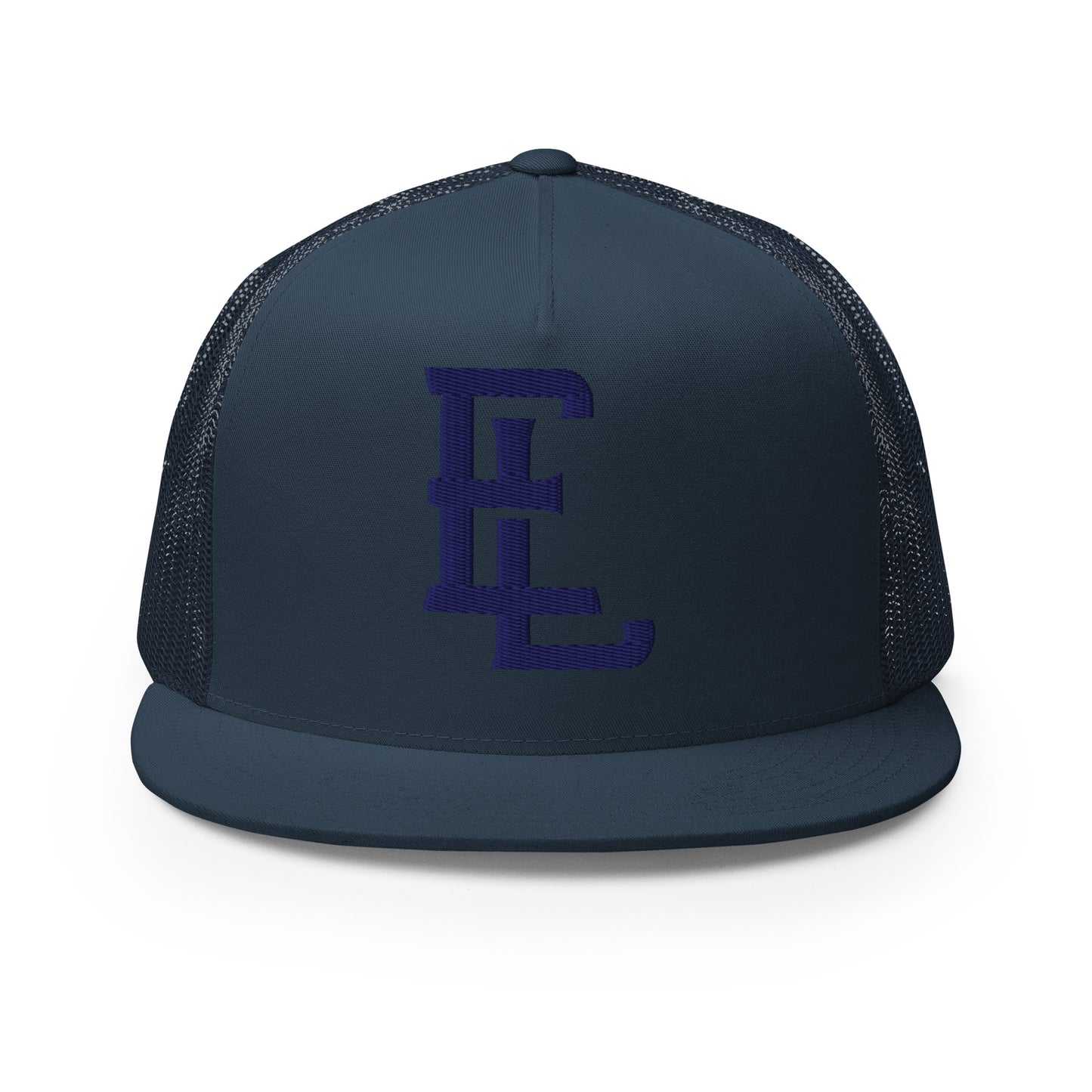 "EL" Five Panel Trucker Cap | E Luna Brand CLASSIC | 1 Navy Thread Logo | 3D Puff Edition