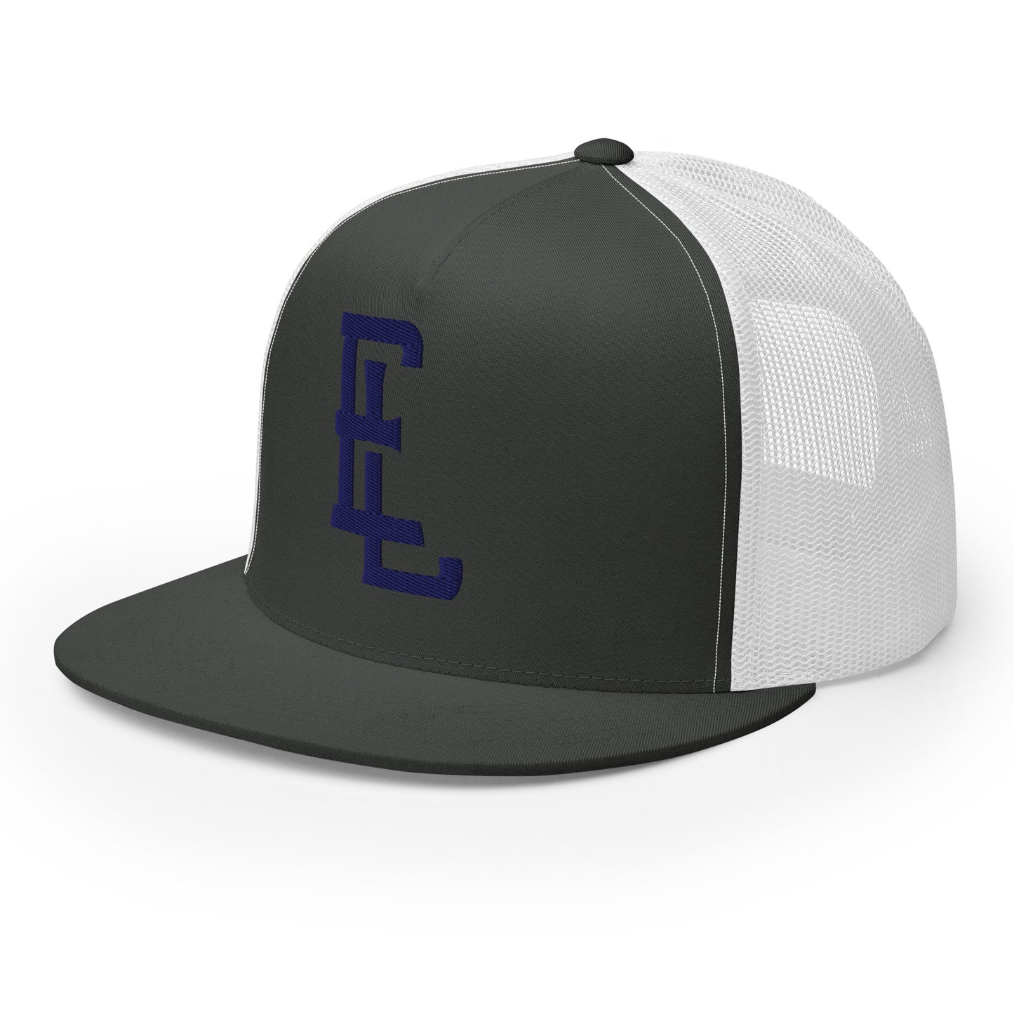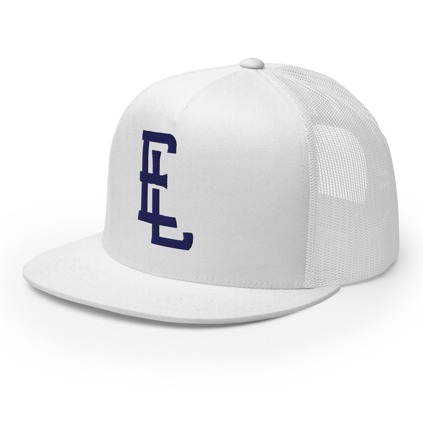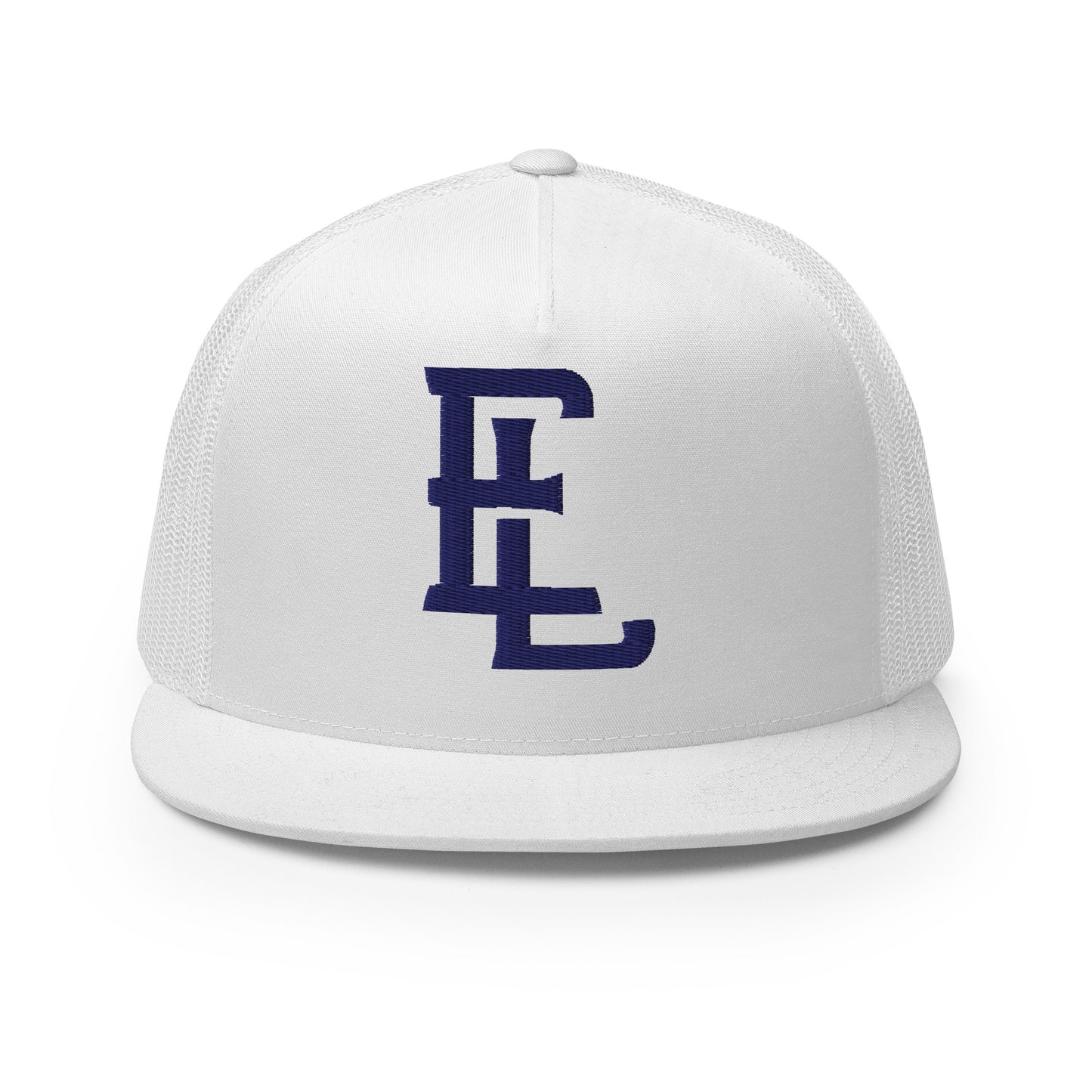 "EL" Five Panel Trucker Cap | E Luna Brand CLASSIC | 1 Navy Thread Logo | 3D Puff Edition