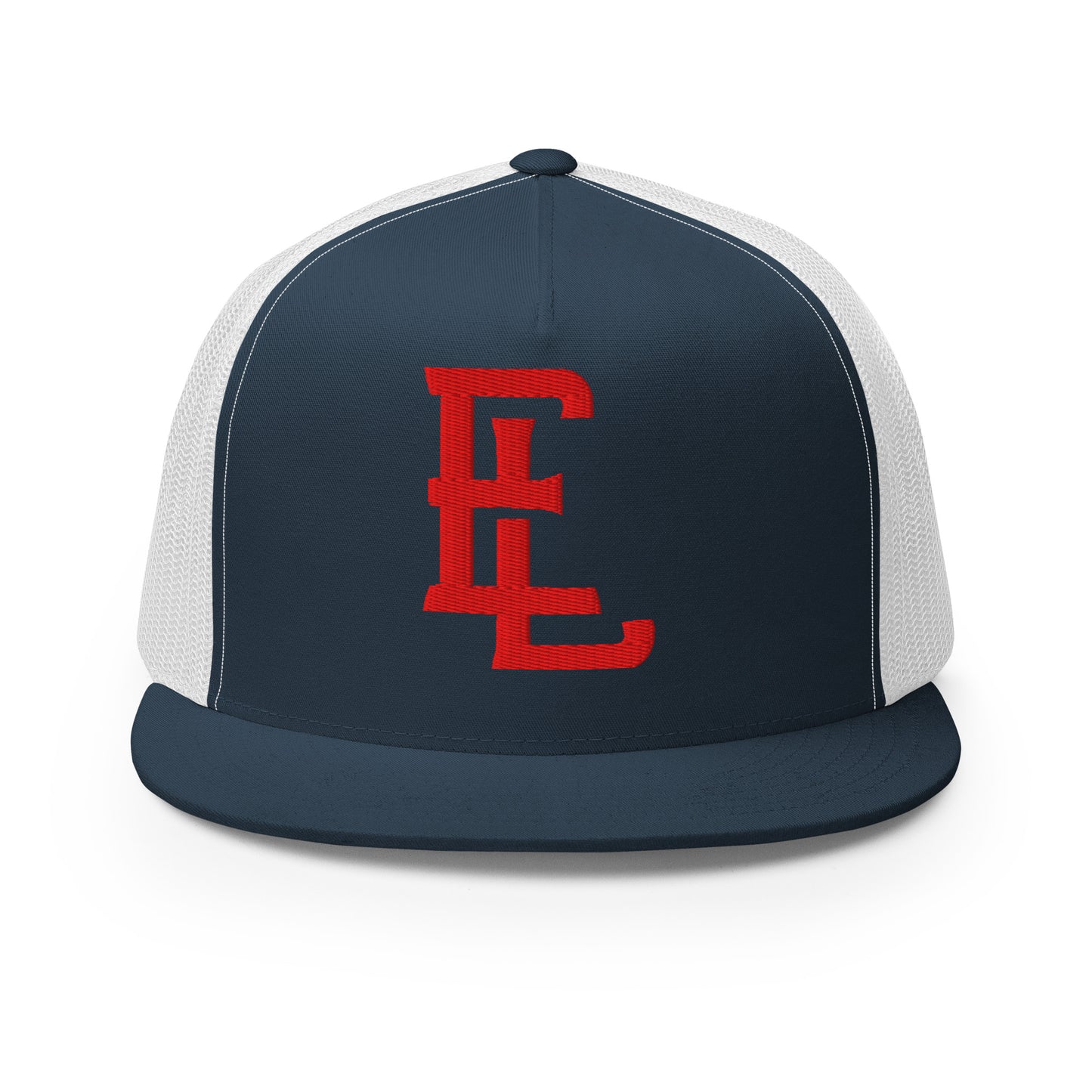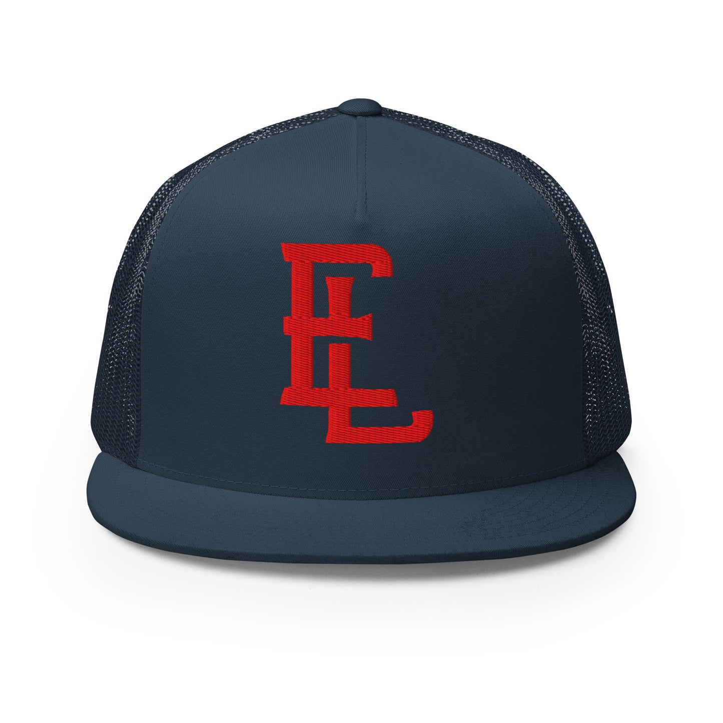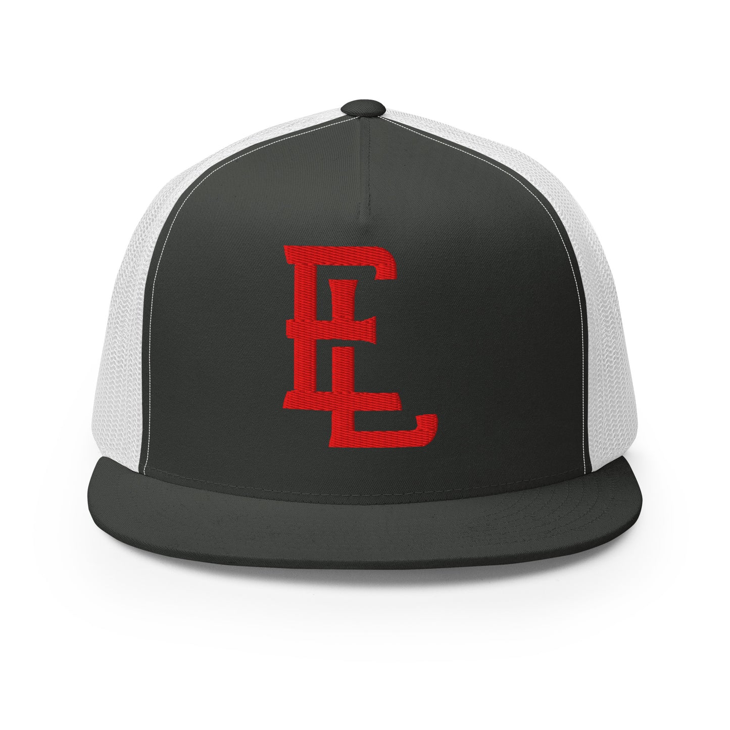 "EL" Five Panel Trucker Cap | E Luna Brand CLASSIC | 1 Red Thread Logo | 3D Puff Edition