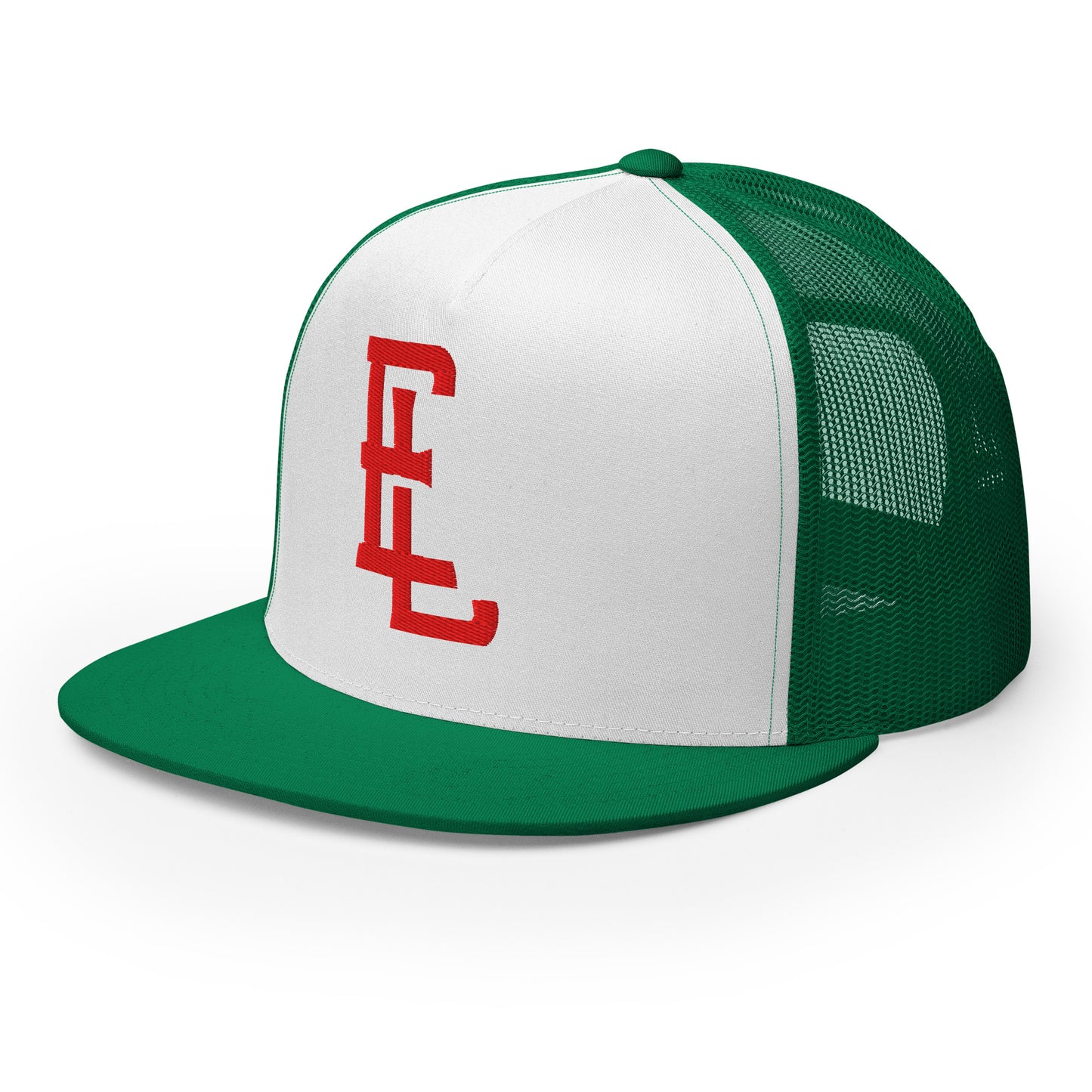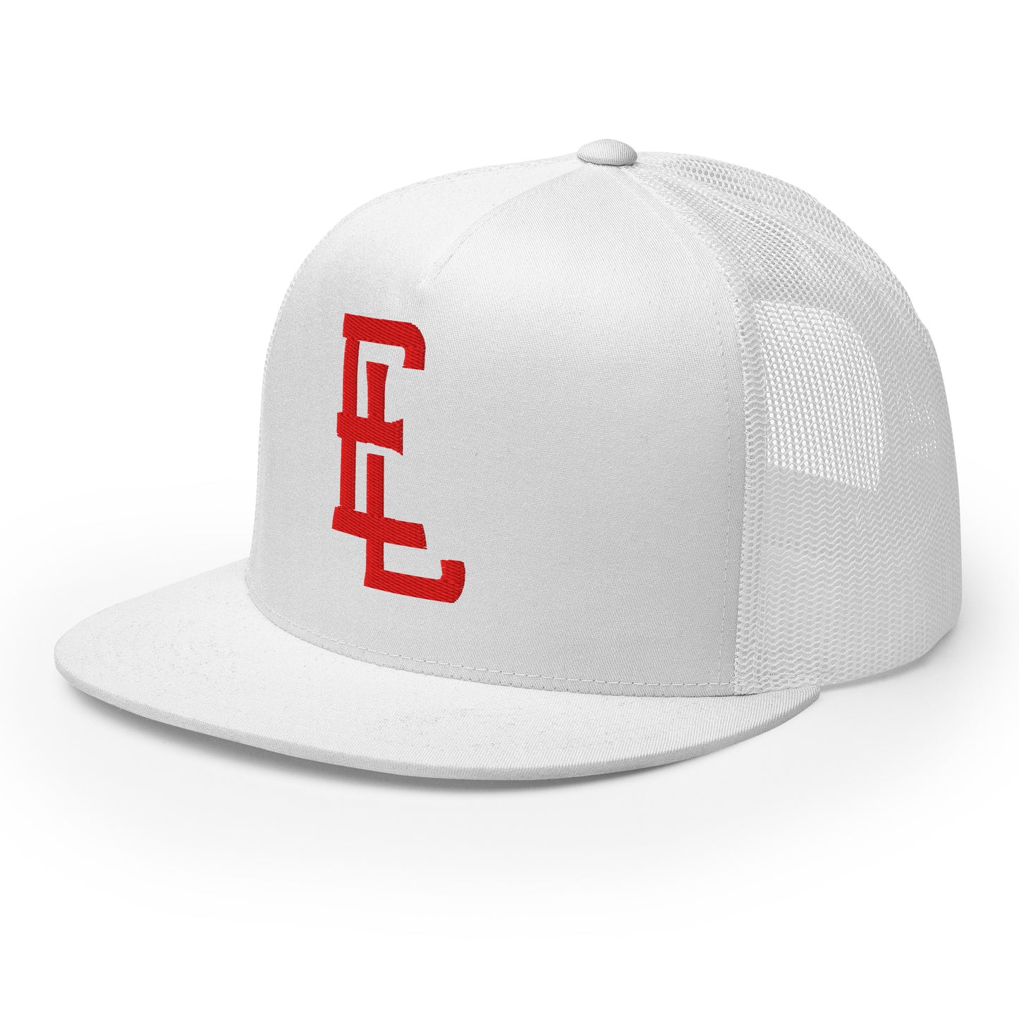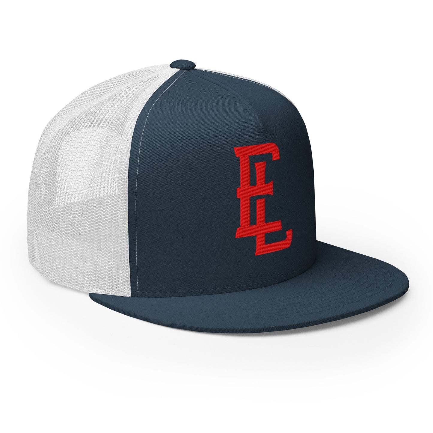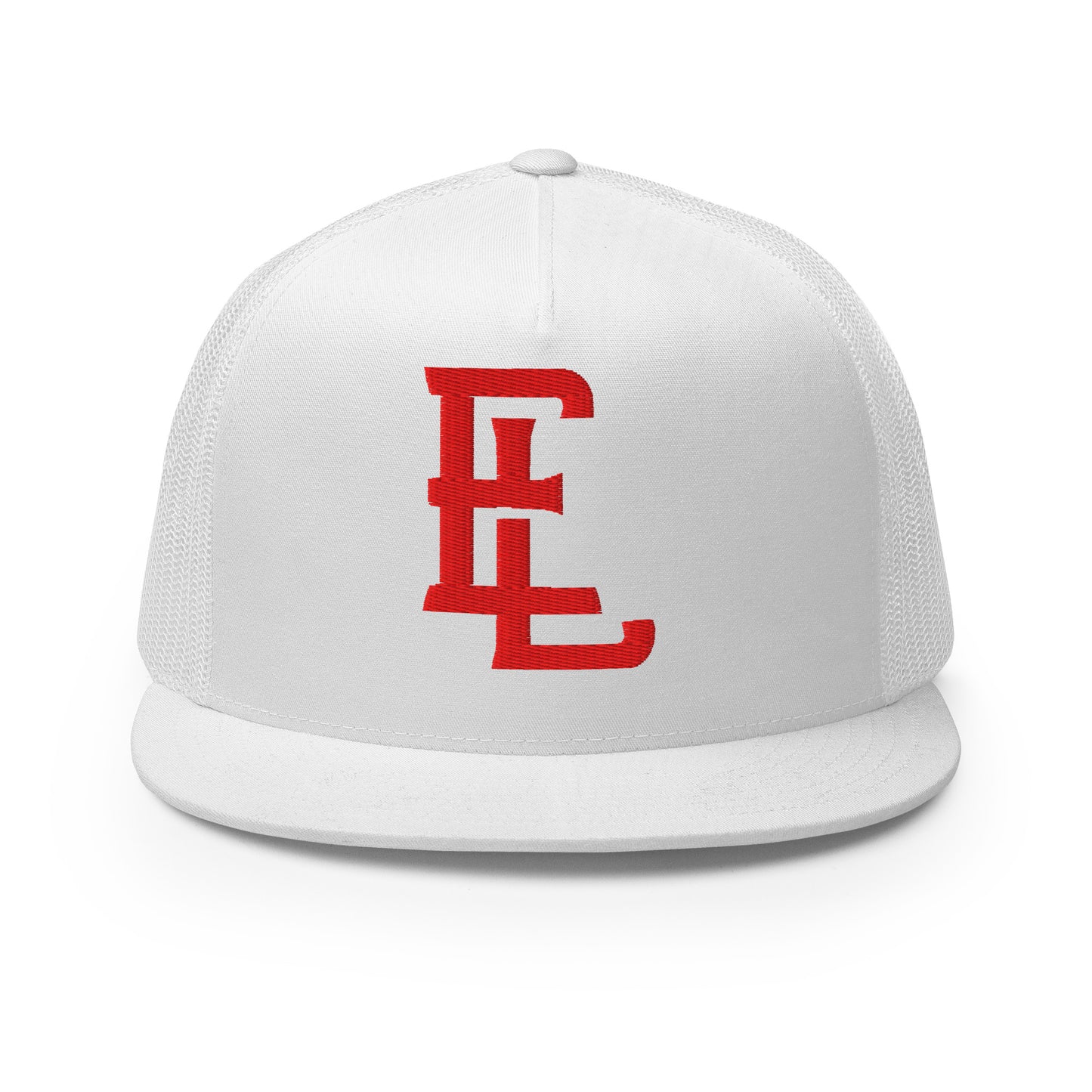 "EL" Five Panel Trucker Cap | E Luna Brand CLASSIC | 1 Red Thread Logo | 3D Puff Edition