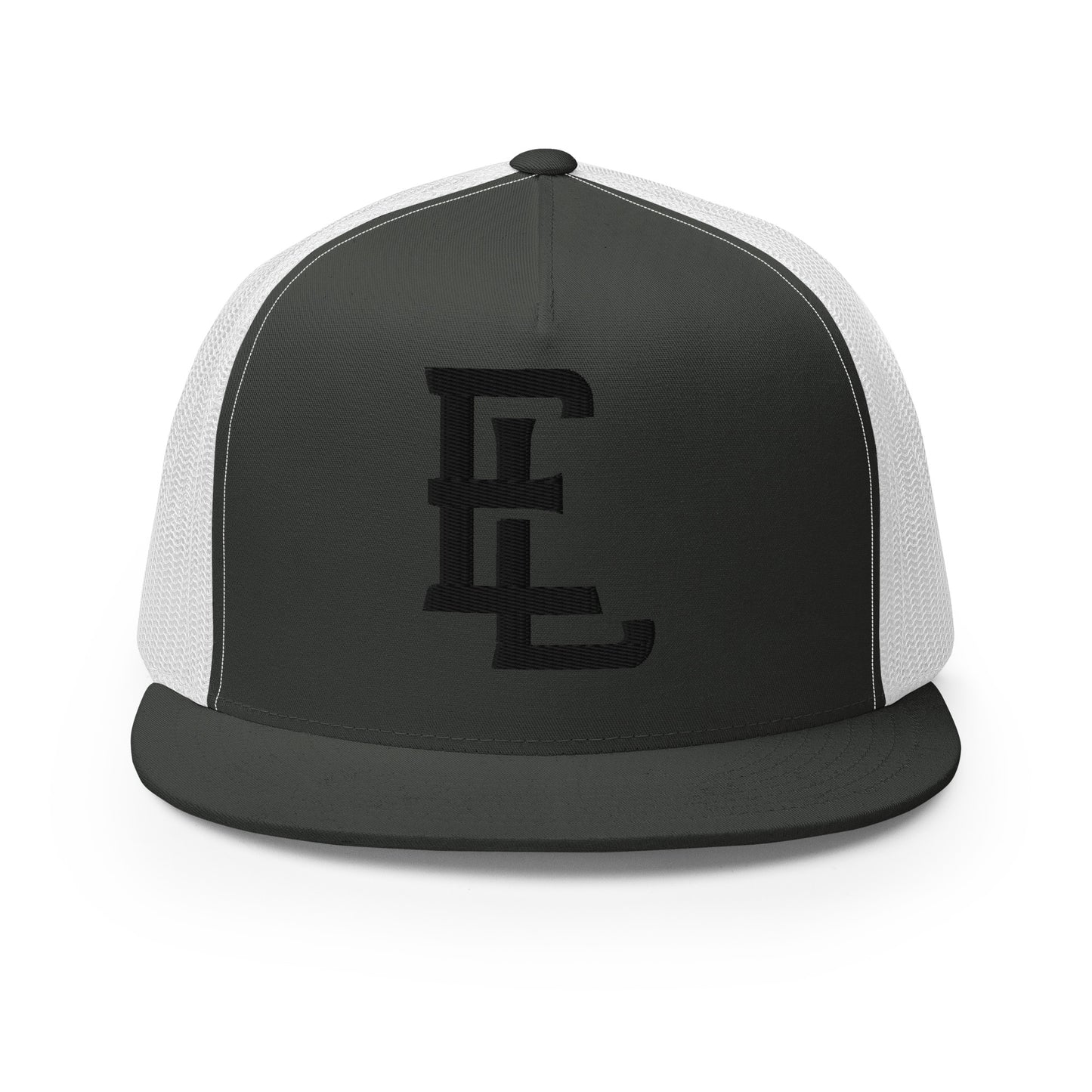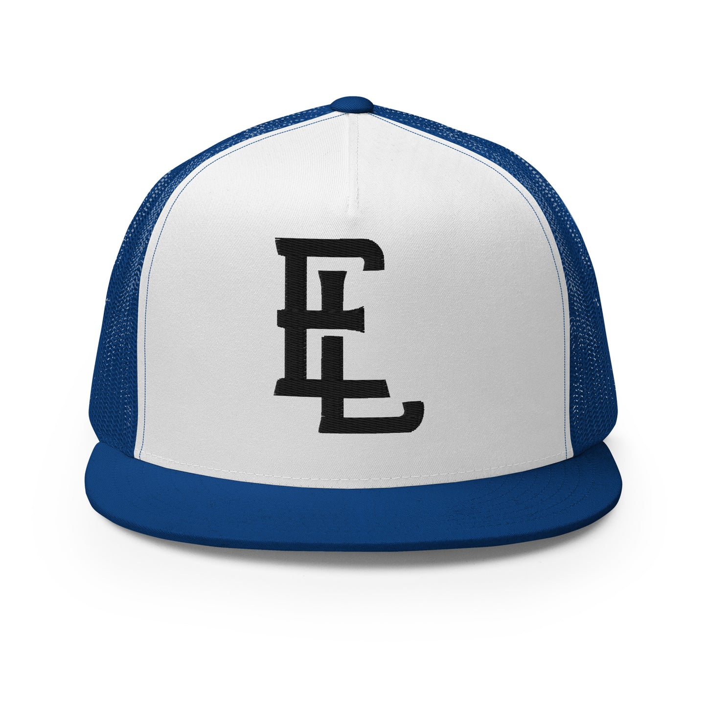"EL" Five Panel Trucker Cap | E Luna Brand CLASSIC | 1 Black Thread Logo