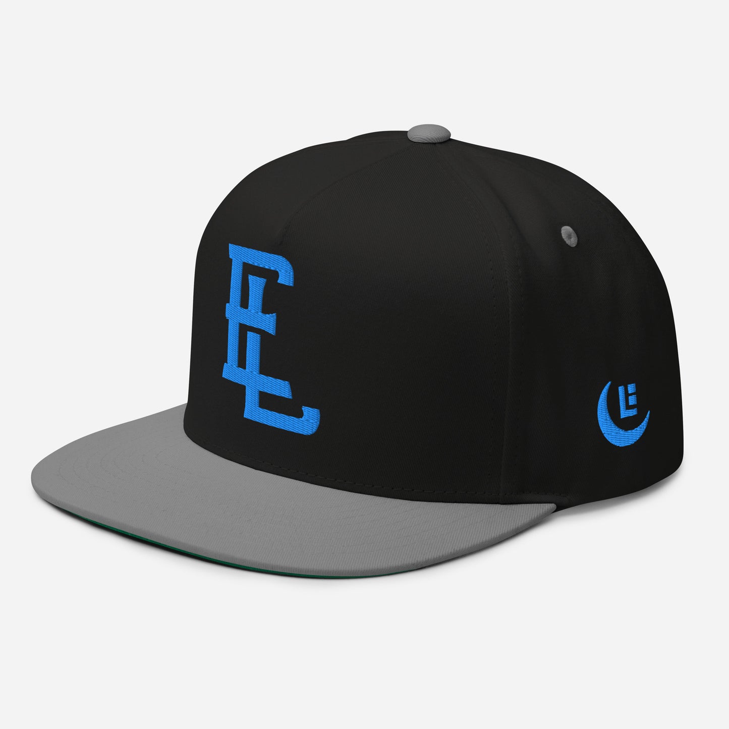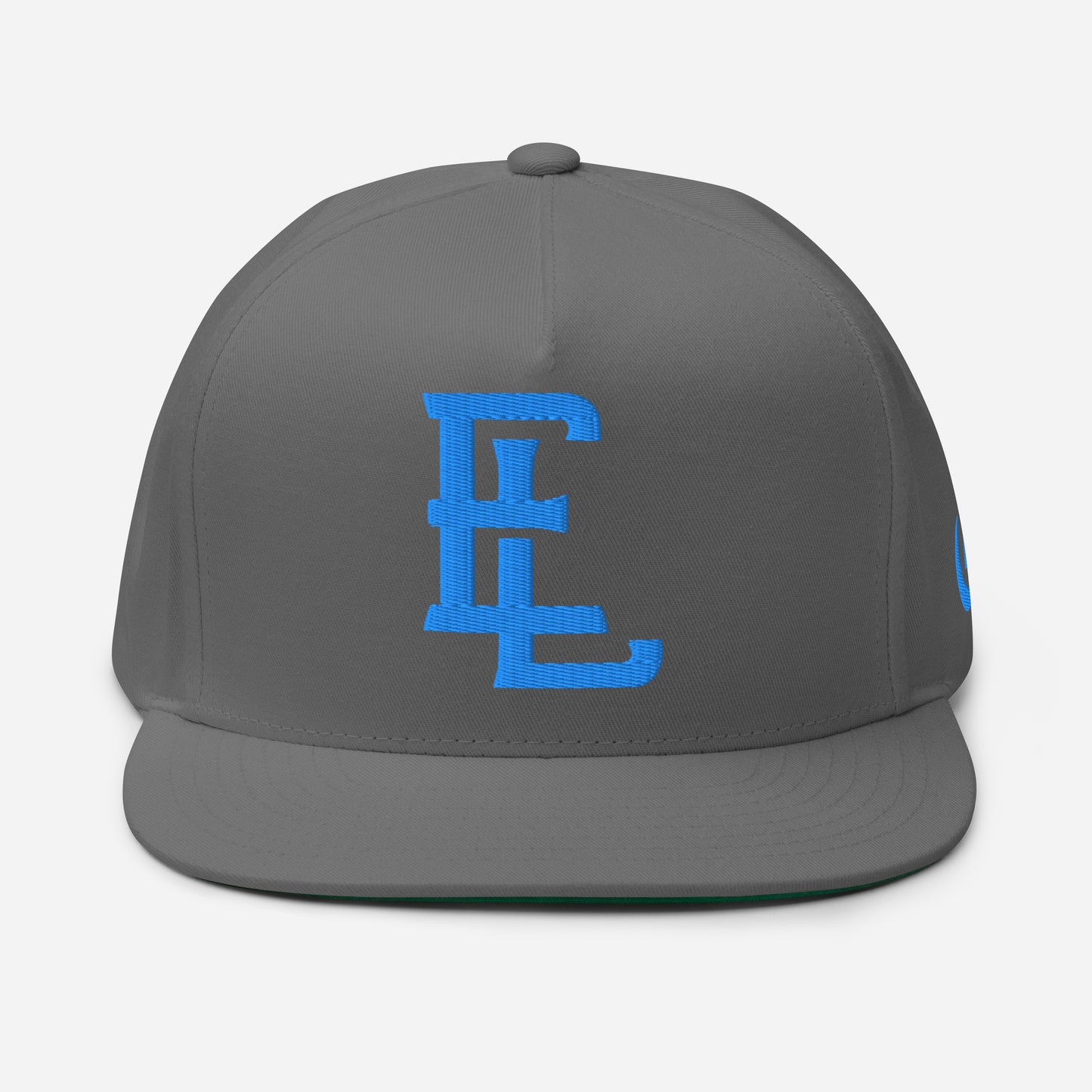 "EL" Flat Bill Cap | E Luna Brand ESSENTIAL | 2 Aqua/Teal Thread Logos
