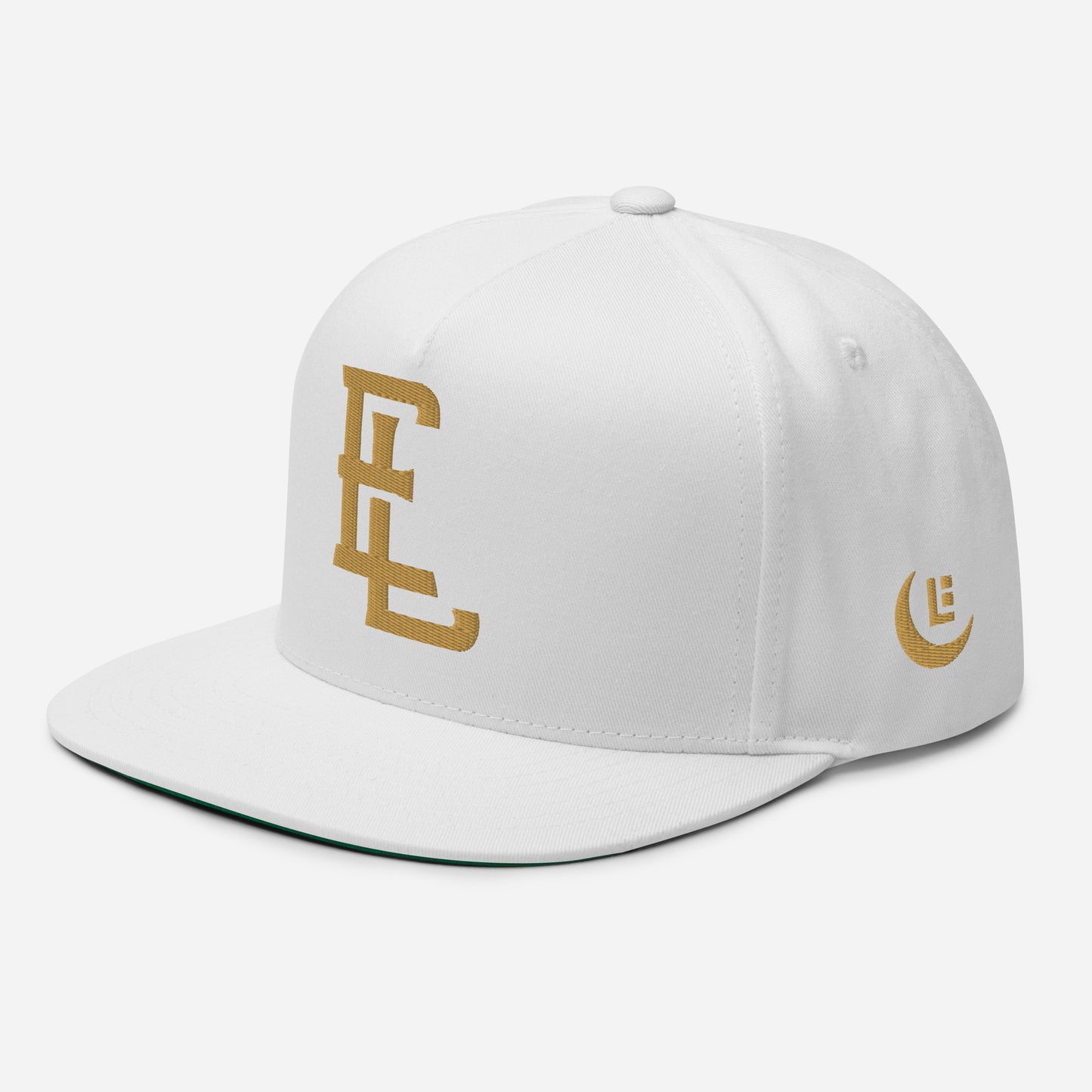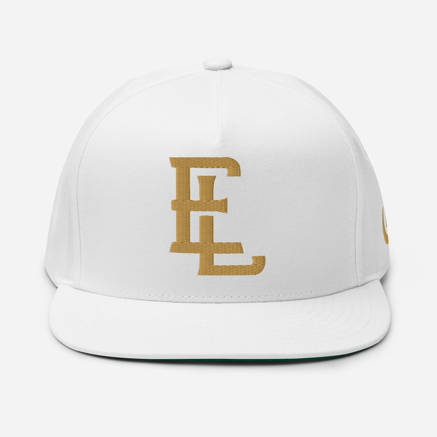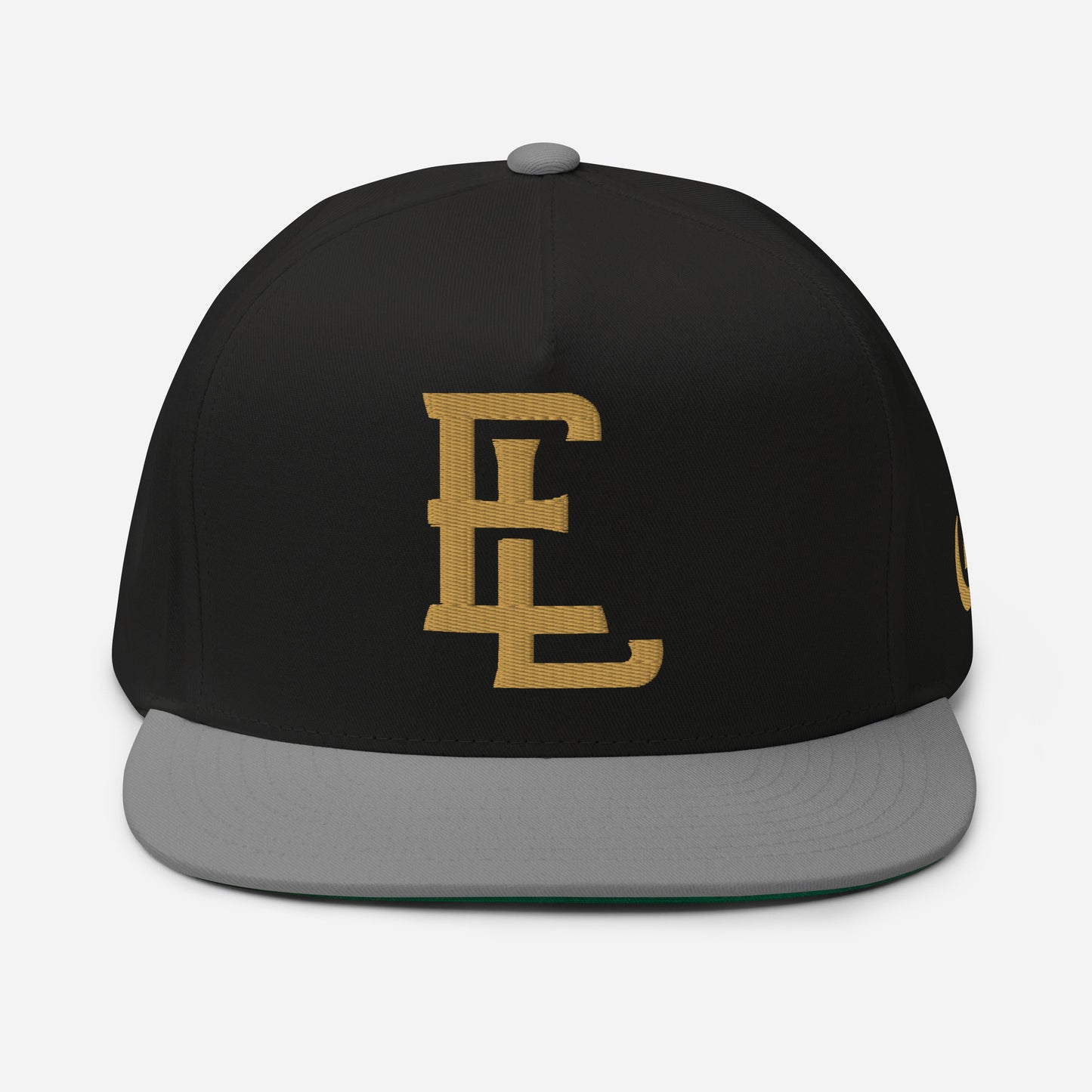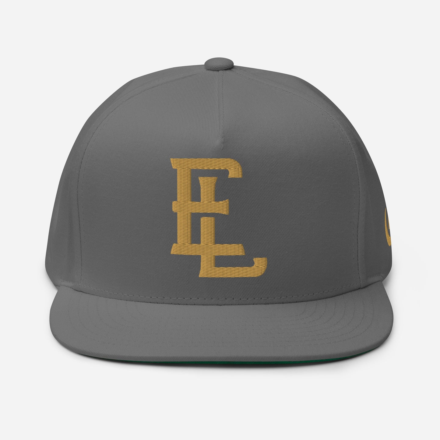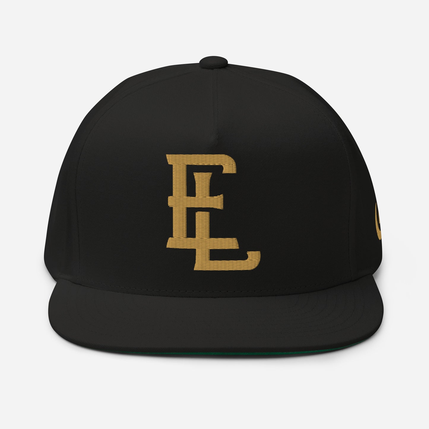 "EL" Flat Bill Cap | E Luna Brand ESSENTIAL | 2 Old Gold Thread Logos