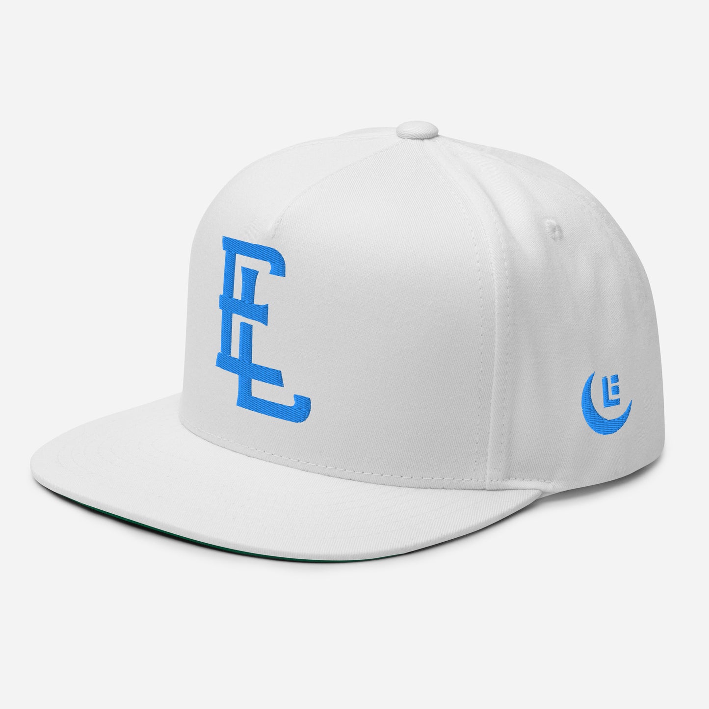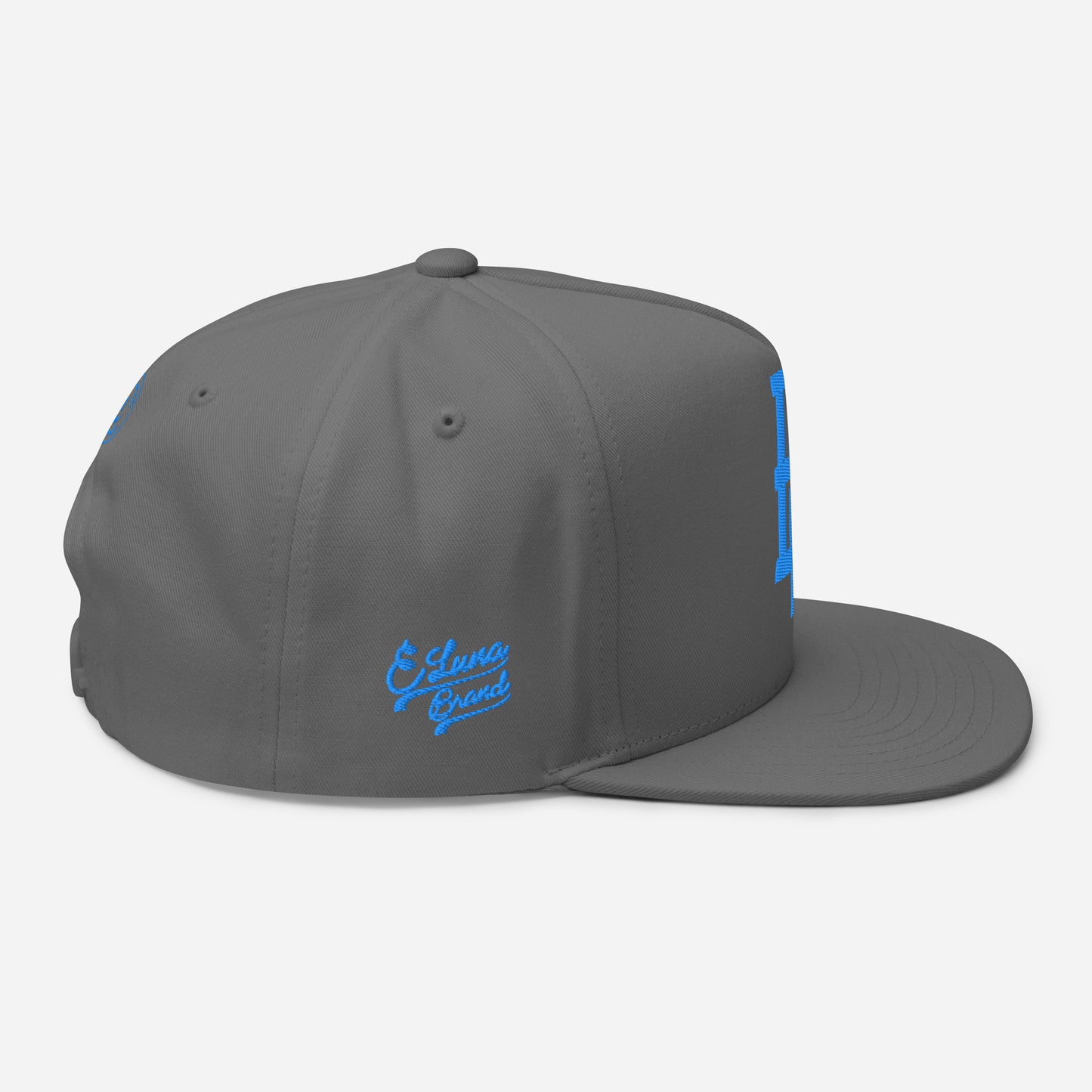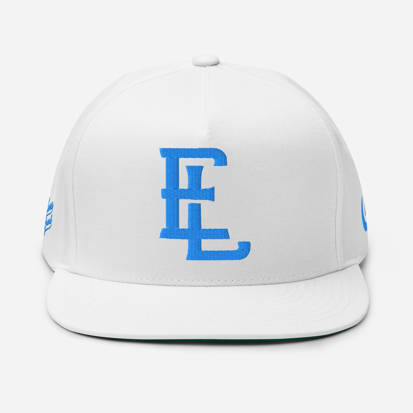 "EL" Flat Bill Cap | E Luna Brand PREMIUM | 4 Aqua/Teal Thread Logos | 3D Puff Edition