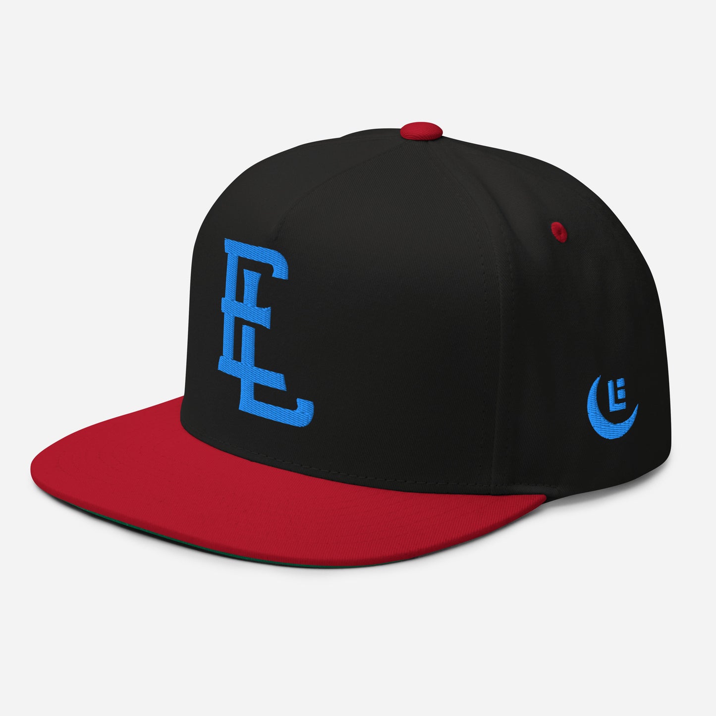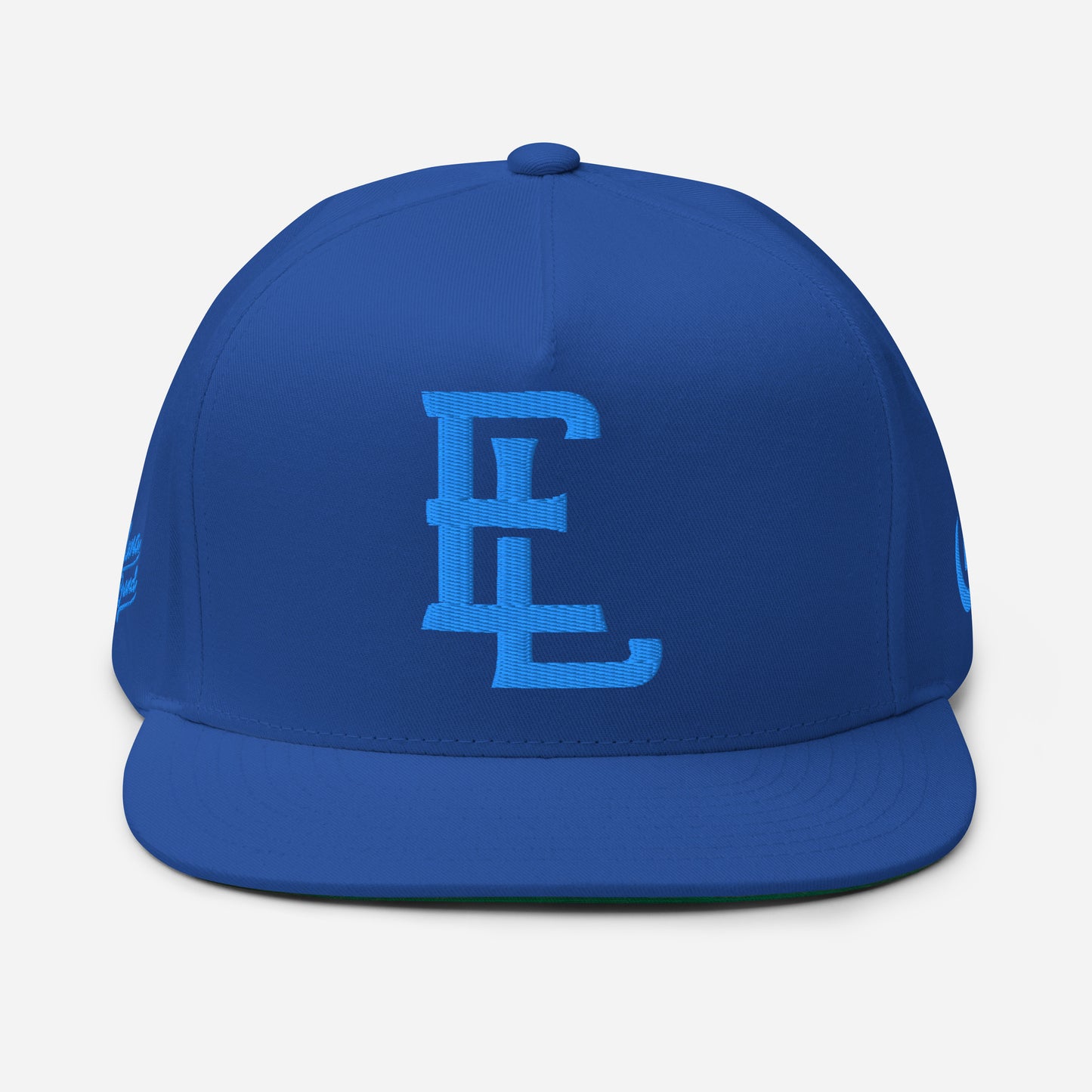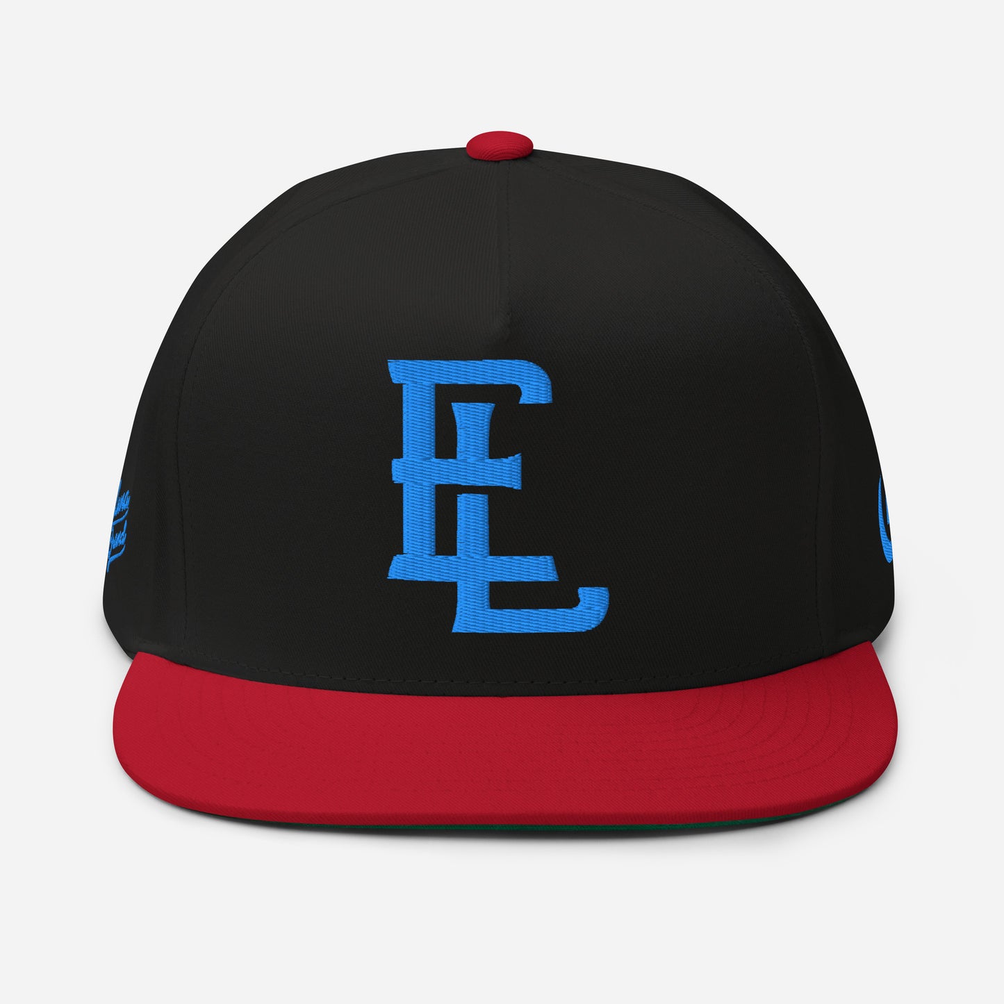 "EL" Flat Bill Cap | E Luna Brand PREMIUM | 4 Aqua/Teal Thread Logos | 3D Puff Edition