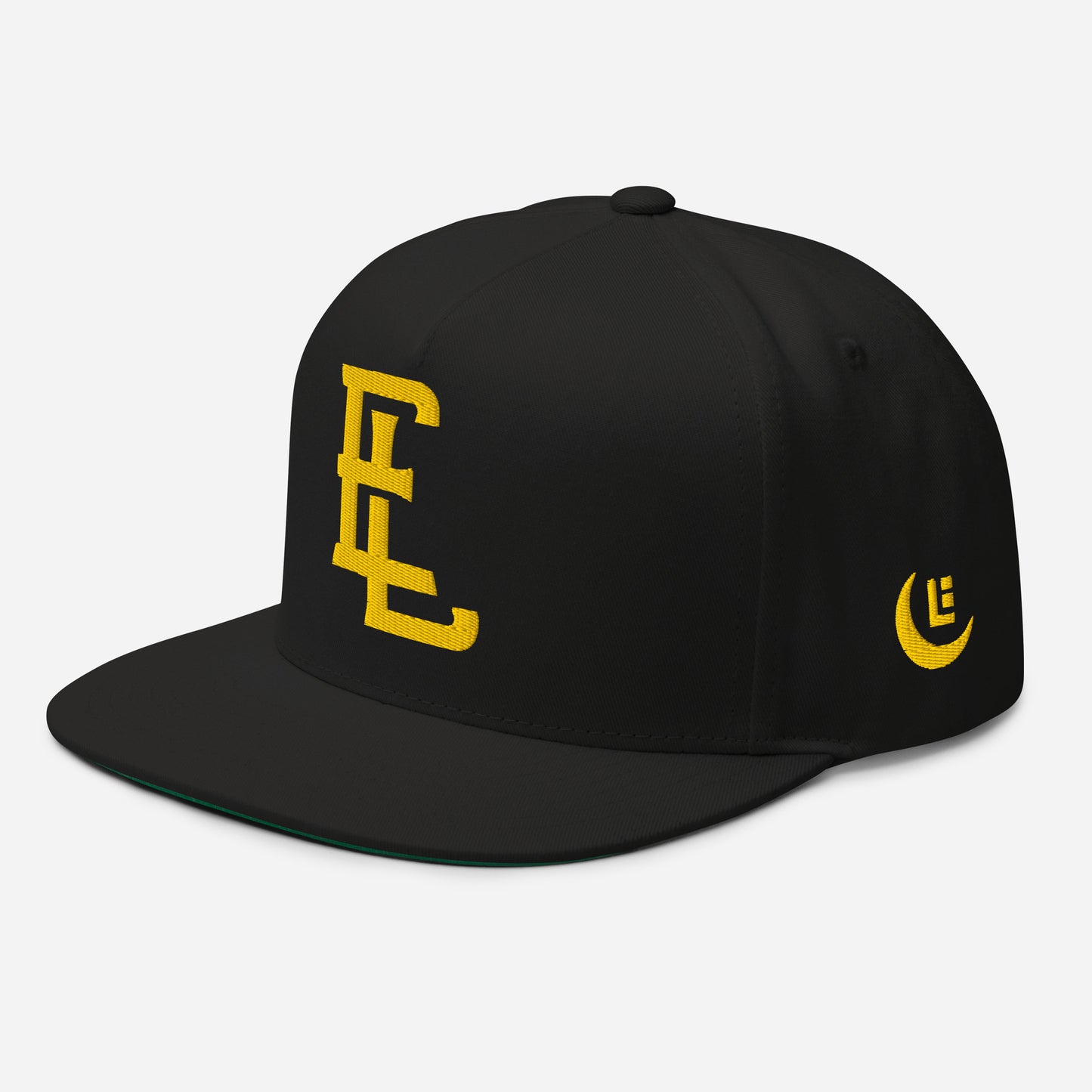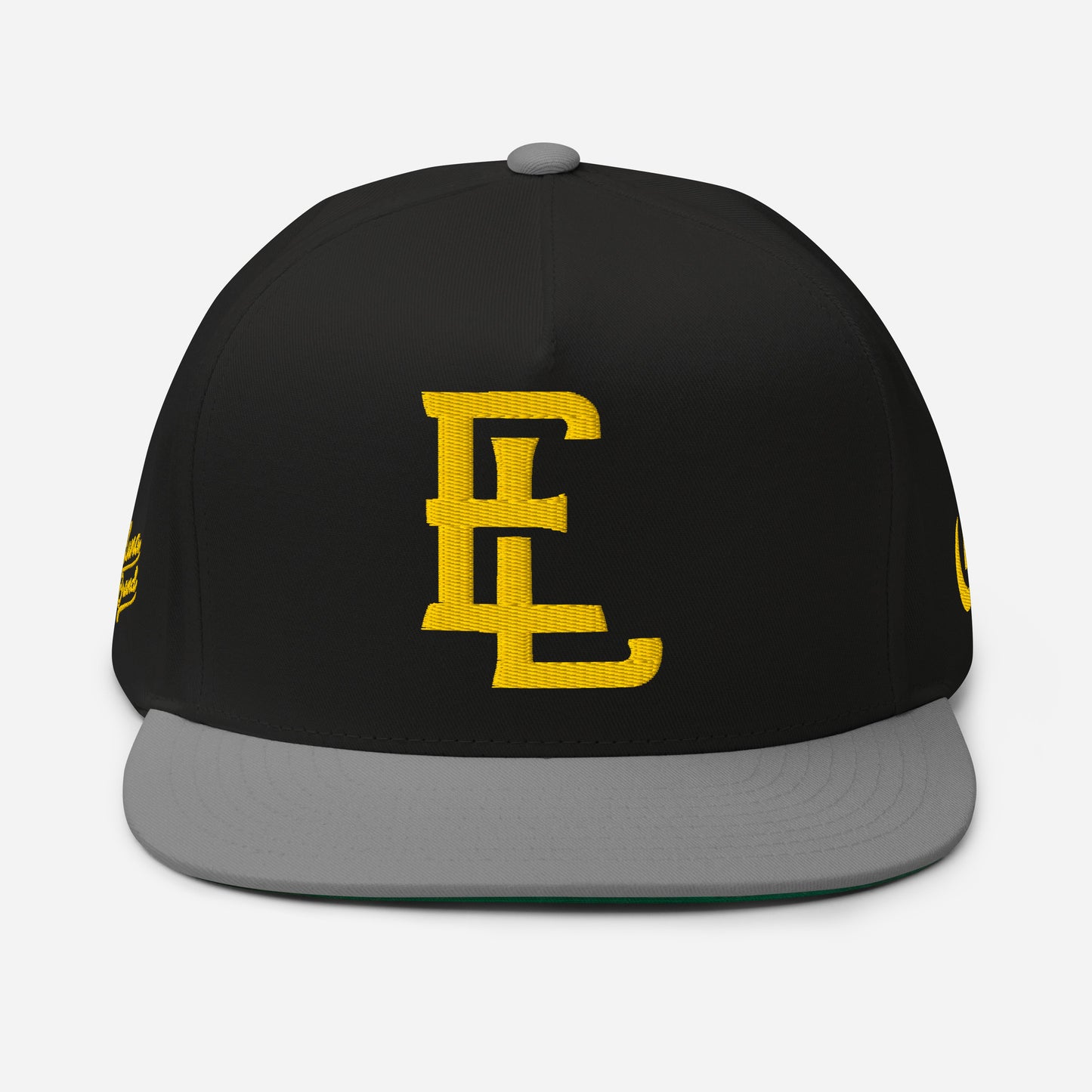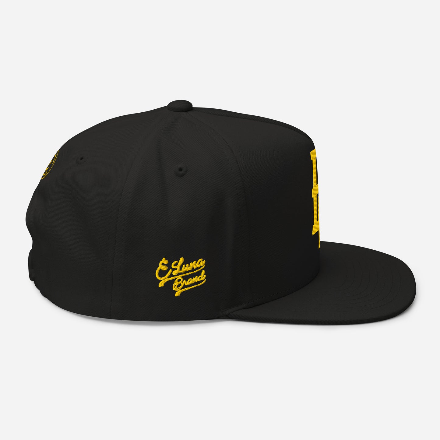 "EL" Flat Bill Cap | E Luna Brand PREMIUM | 4 Gold Thread Logos | 3D Puff Edition