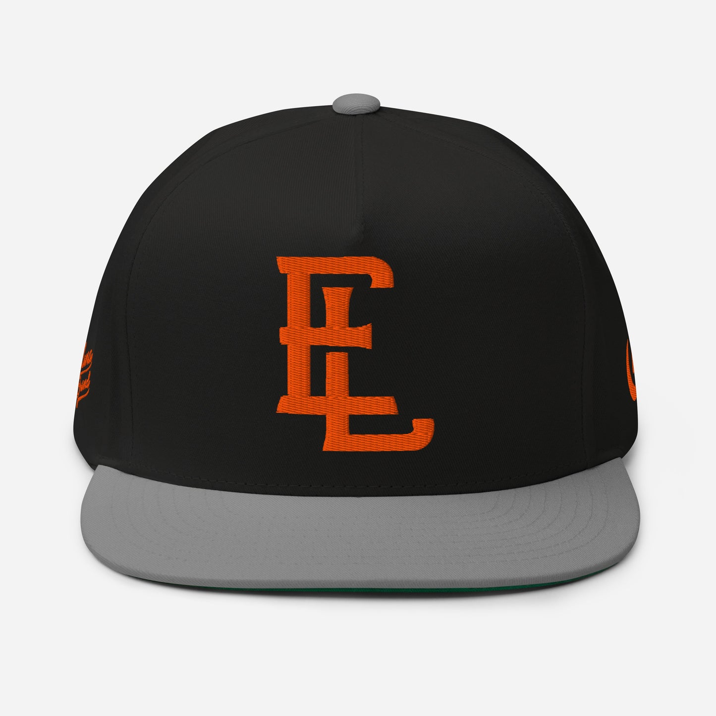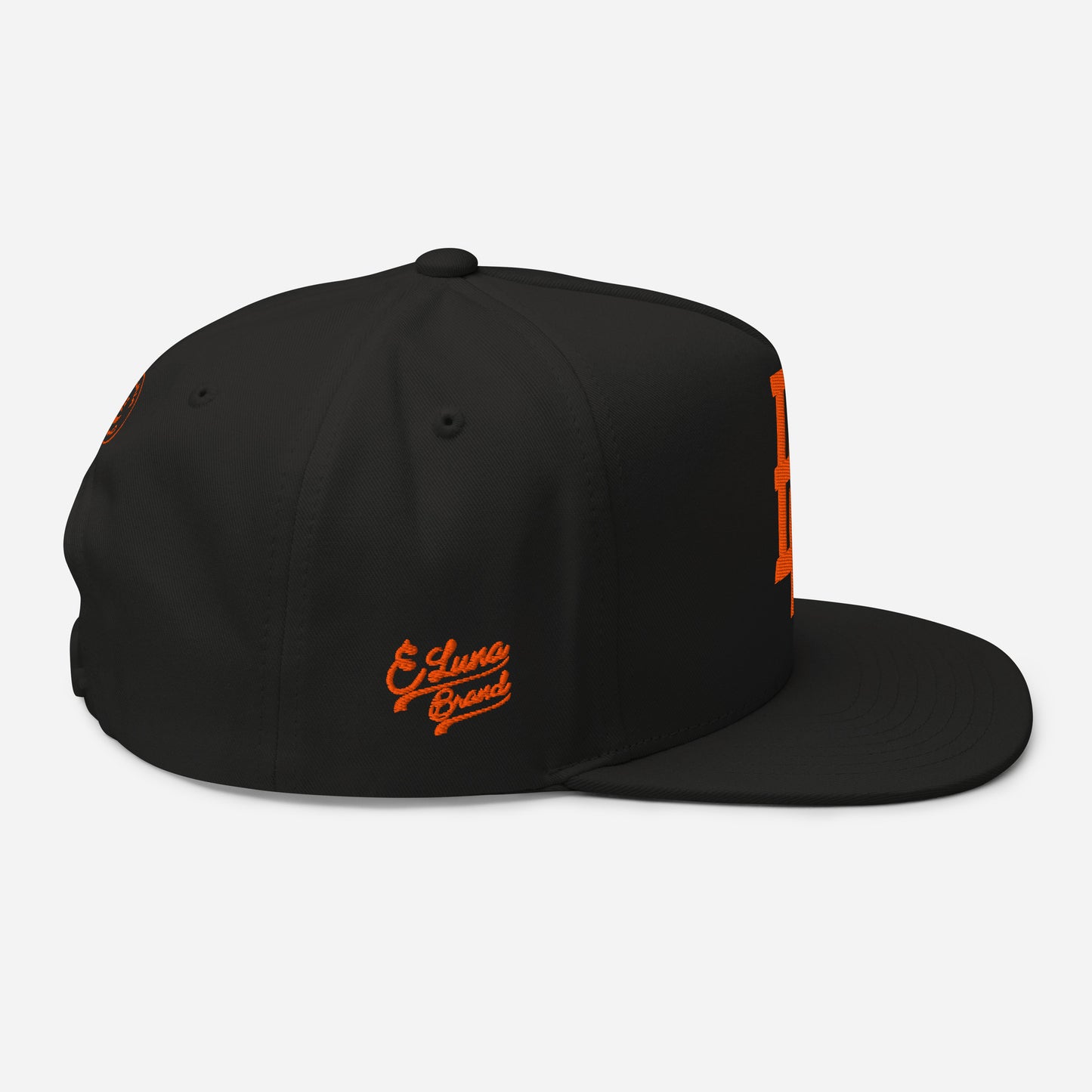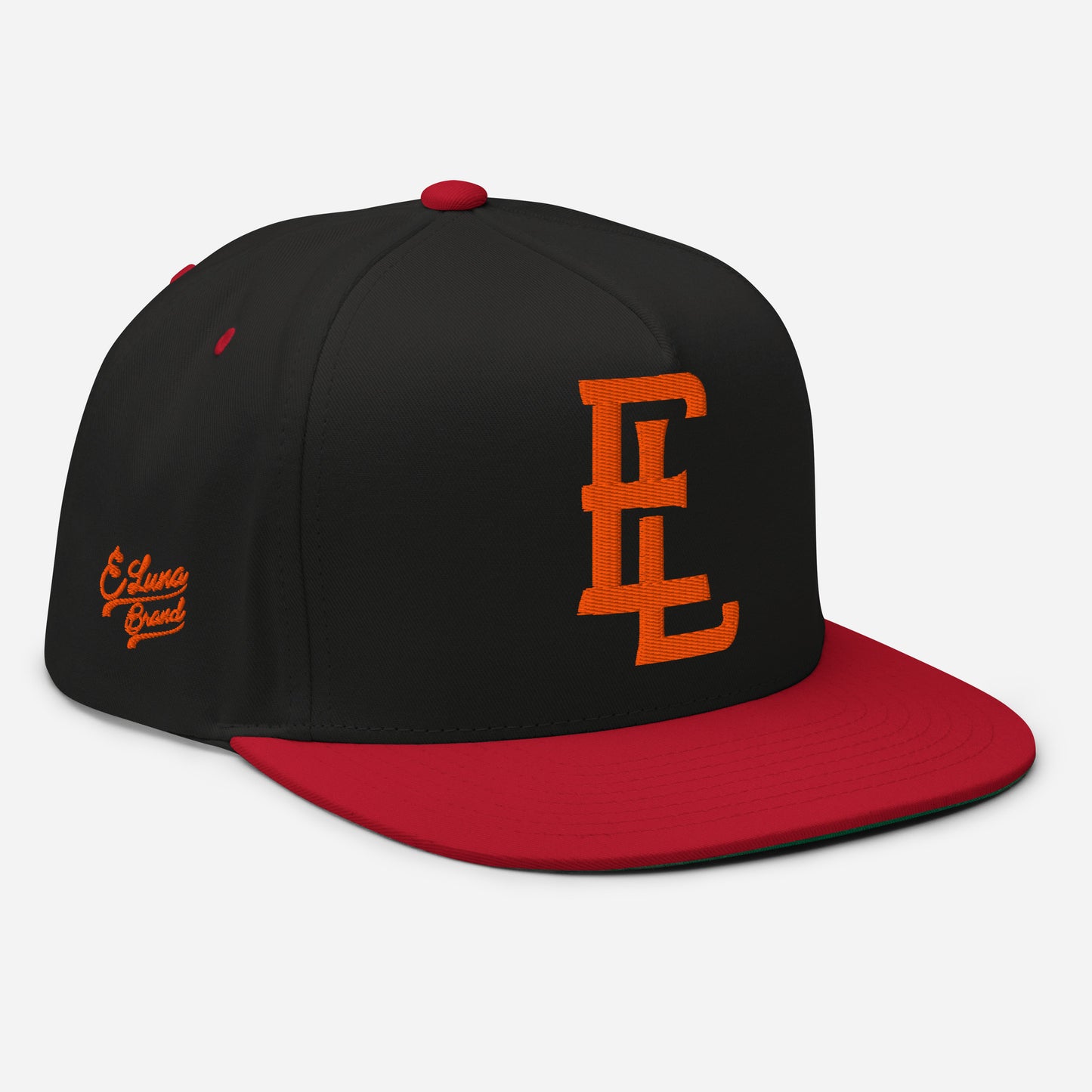 "EL" Flat Bill Cap | E Luna Brand PREMIUM | 4 Orange Thread Logos | 3D Puff Edition