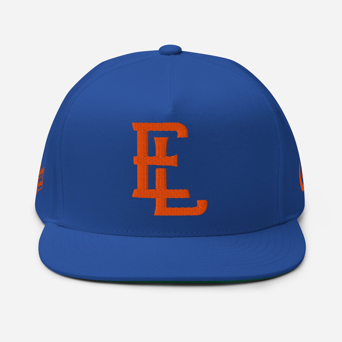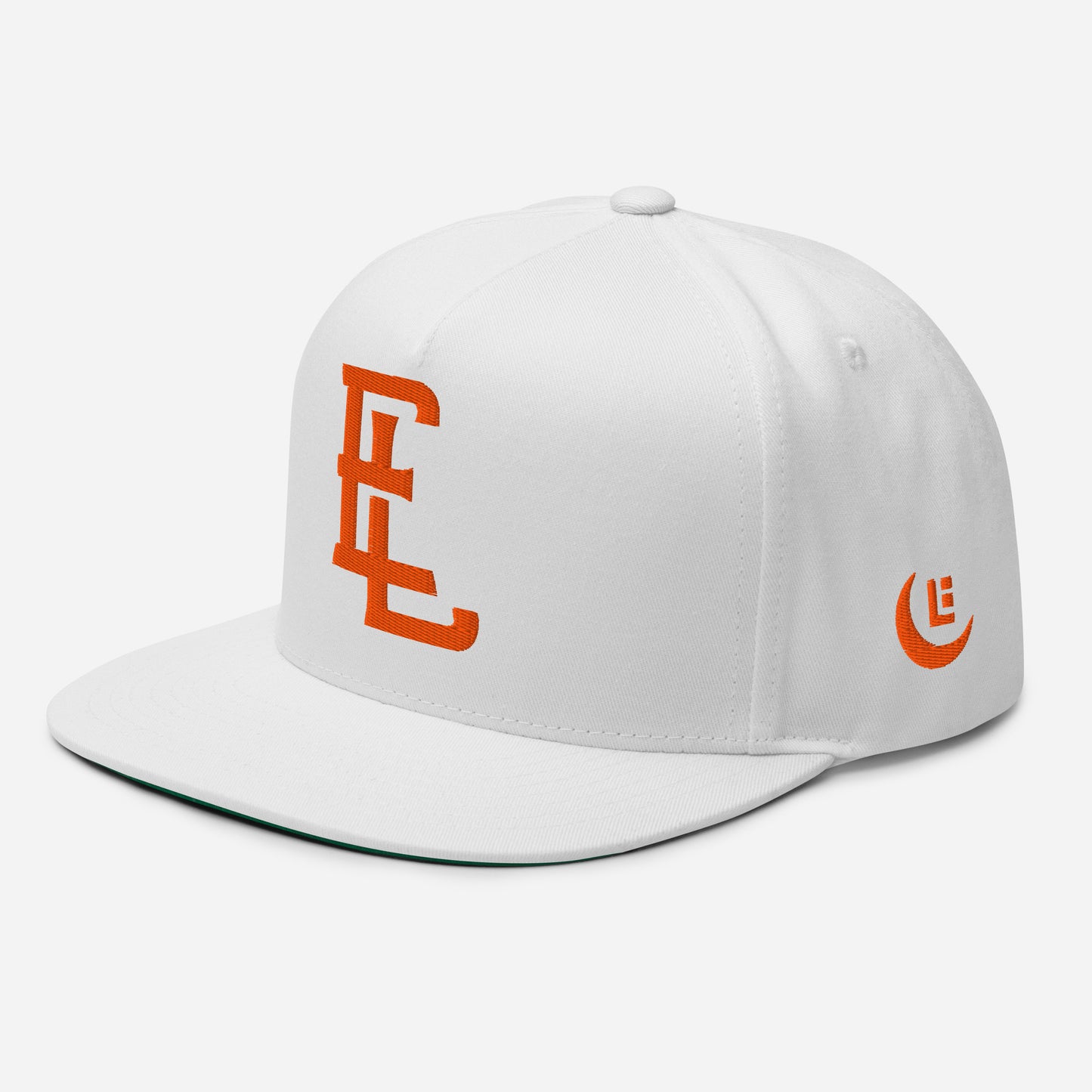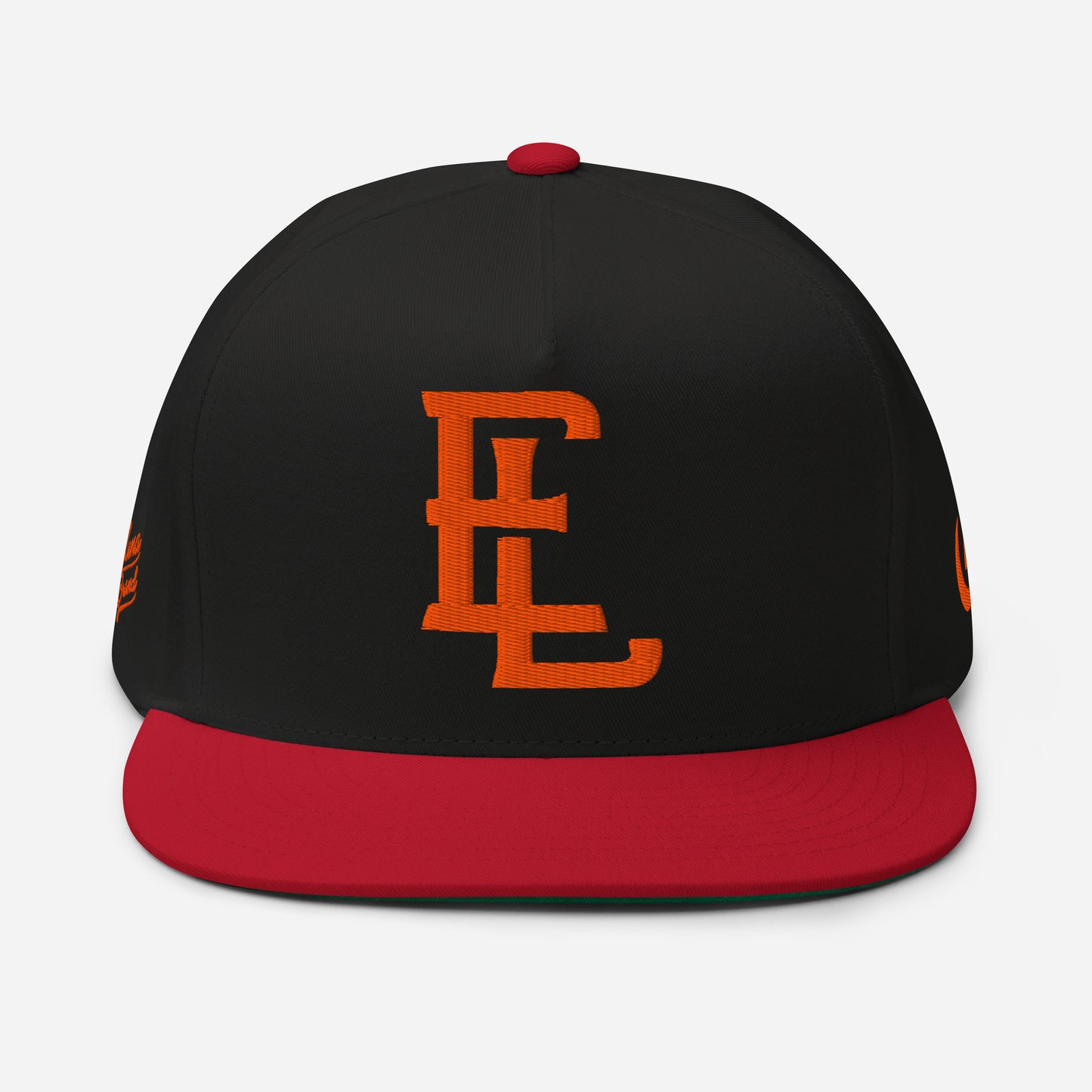 "EL" Flat Bill Cap | E Luna Brand PREMIUM | 4 Orange Thread Logos | 3D Puff Edition