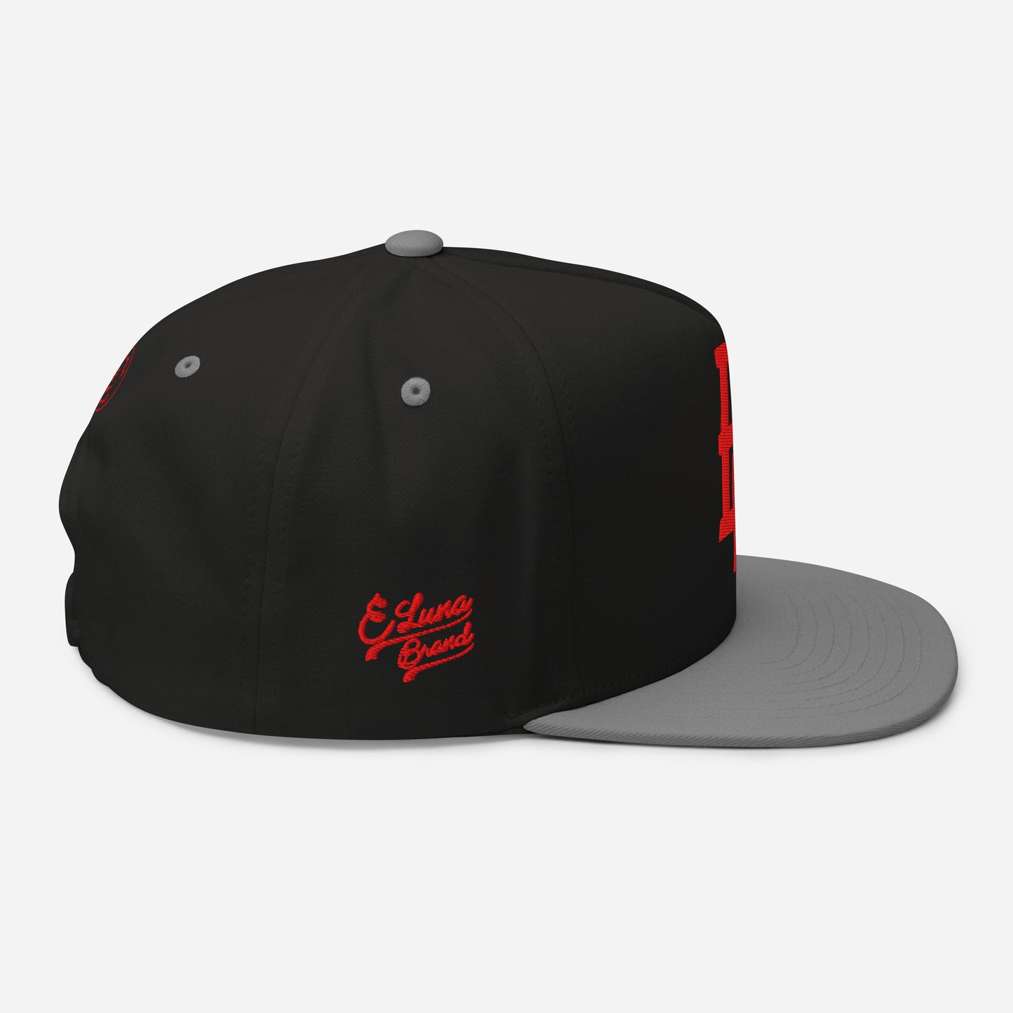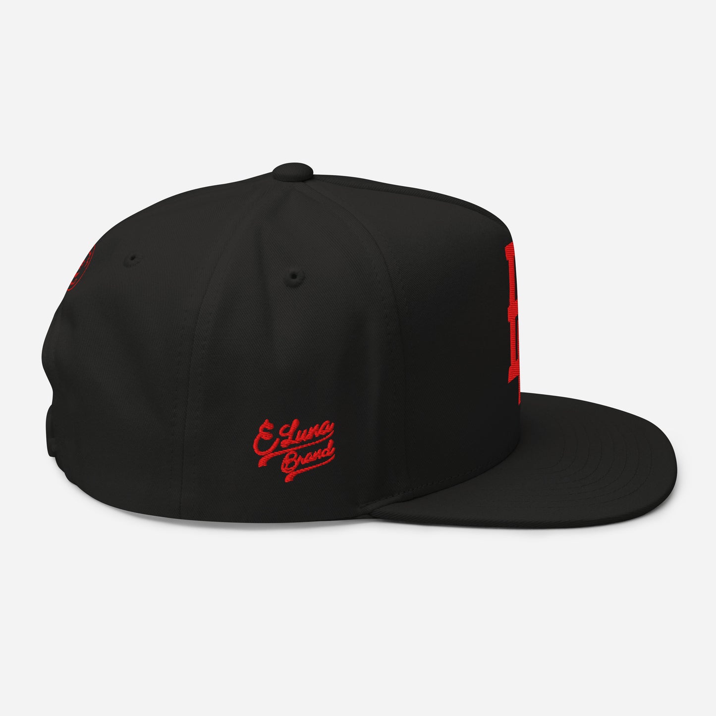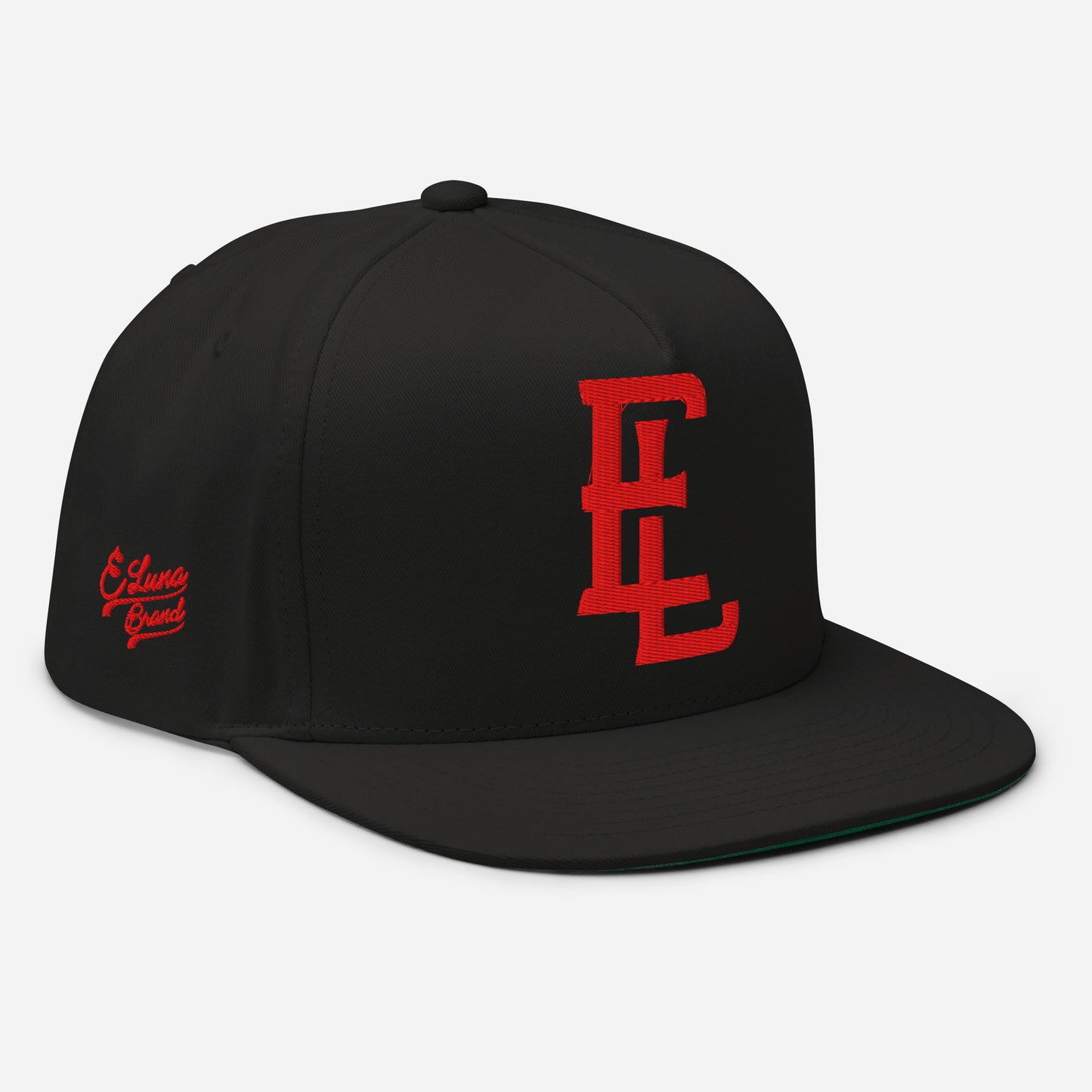 "EL" Flat Bill Cap | E Luna Brand PREMIUM | 4 Red Thread Logos | 3D Puff Edition