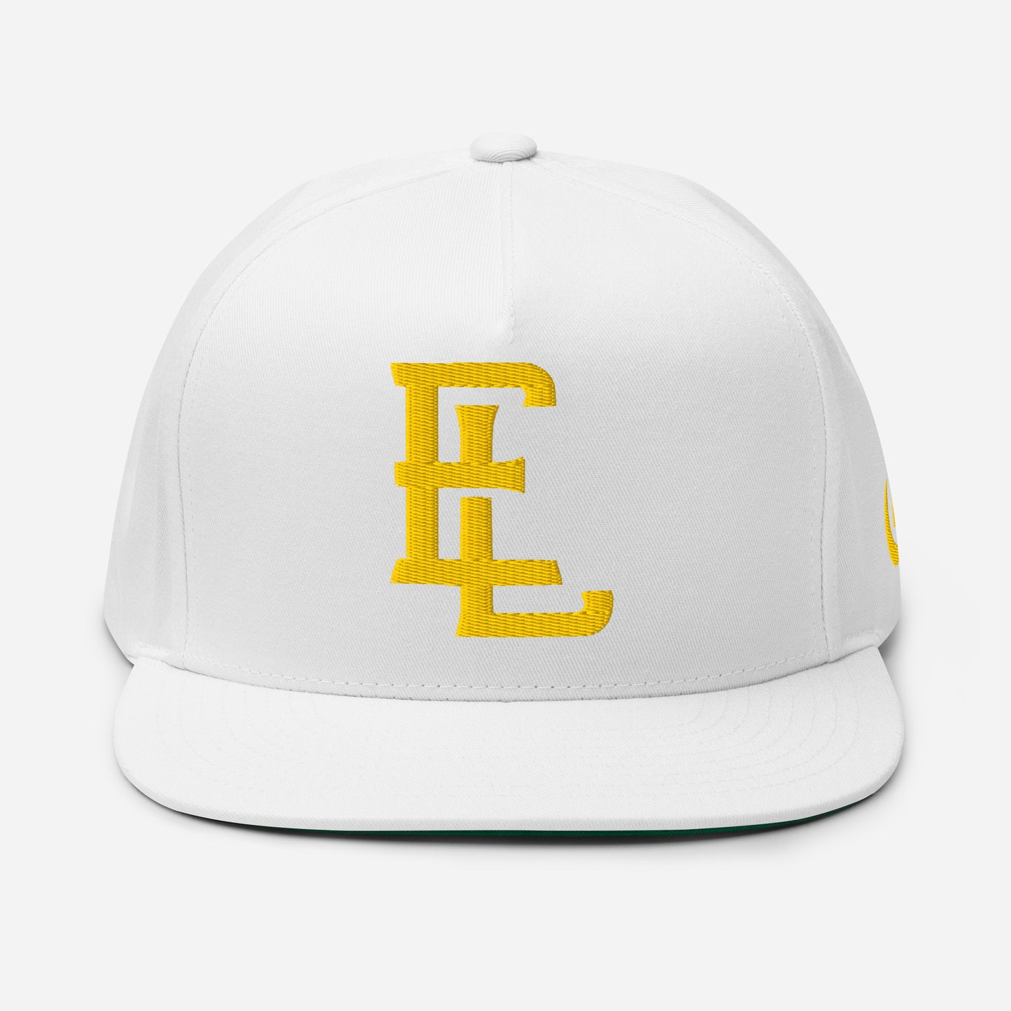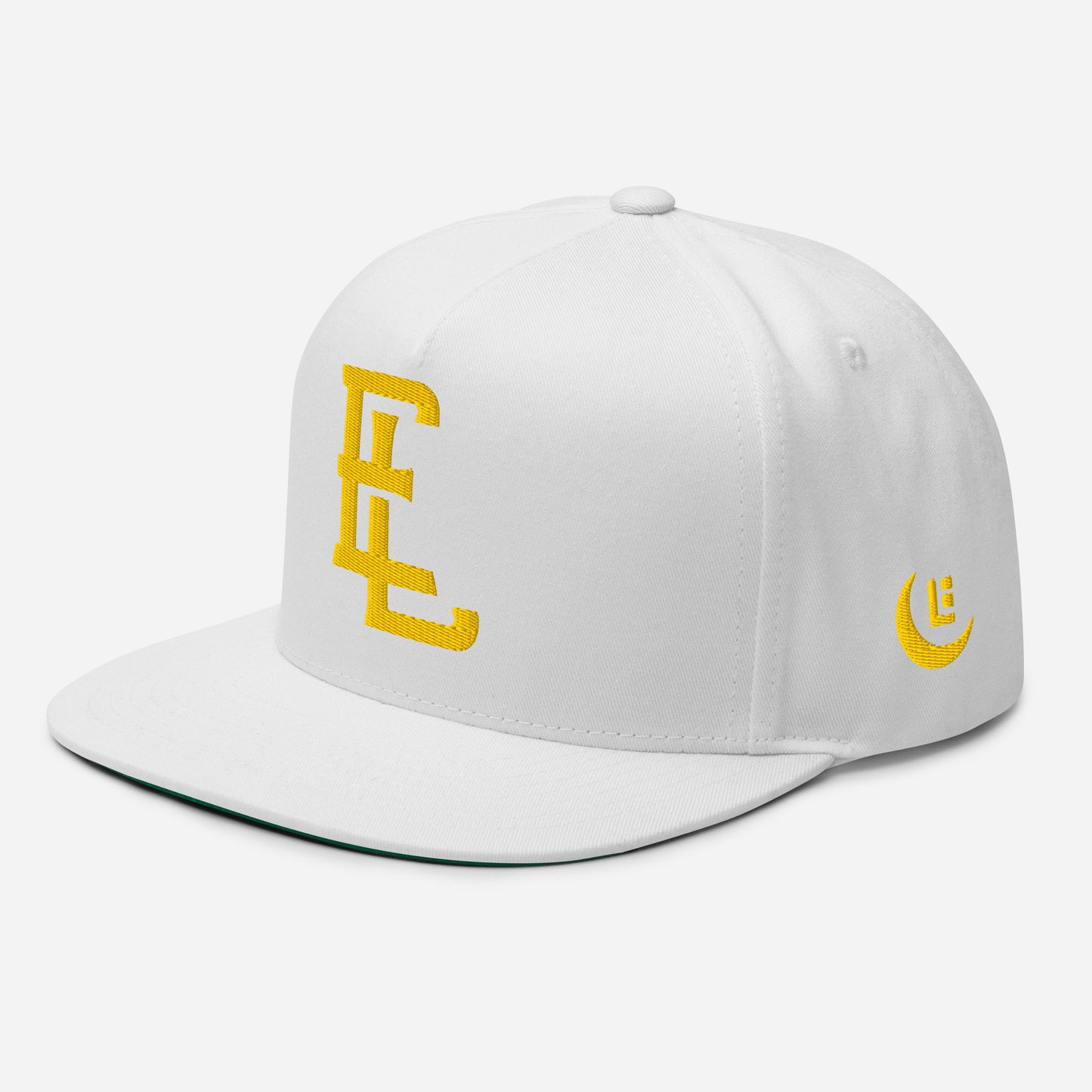 "EL" Flat Bill Cap | E Luna Brand SELECT | 3 Gold Thread Logos | 3D Puff Edition