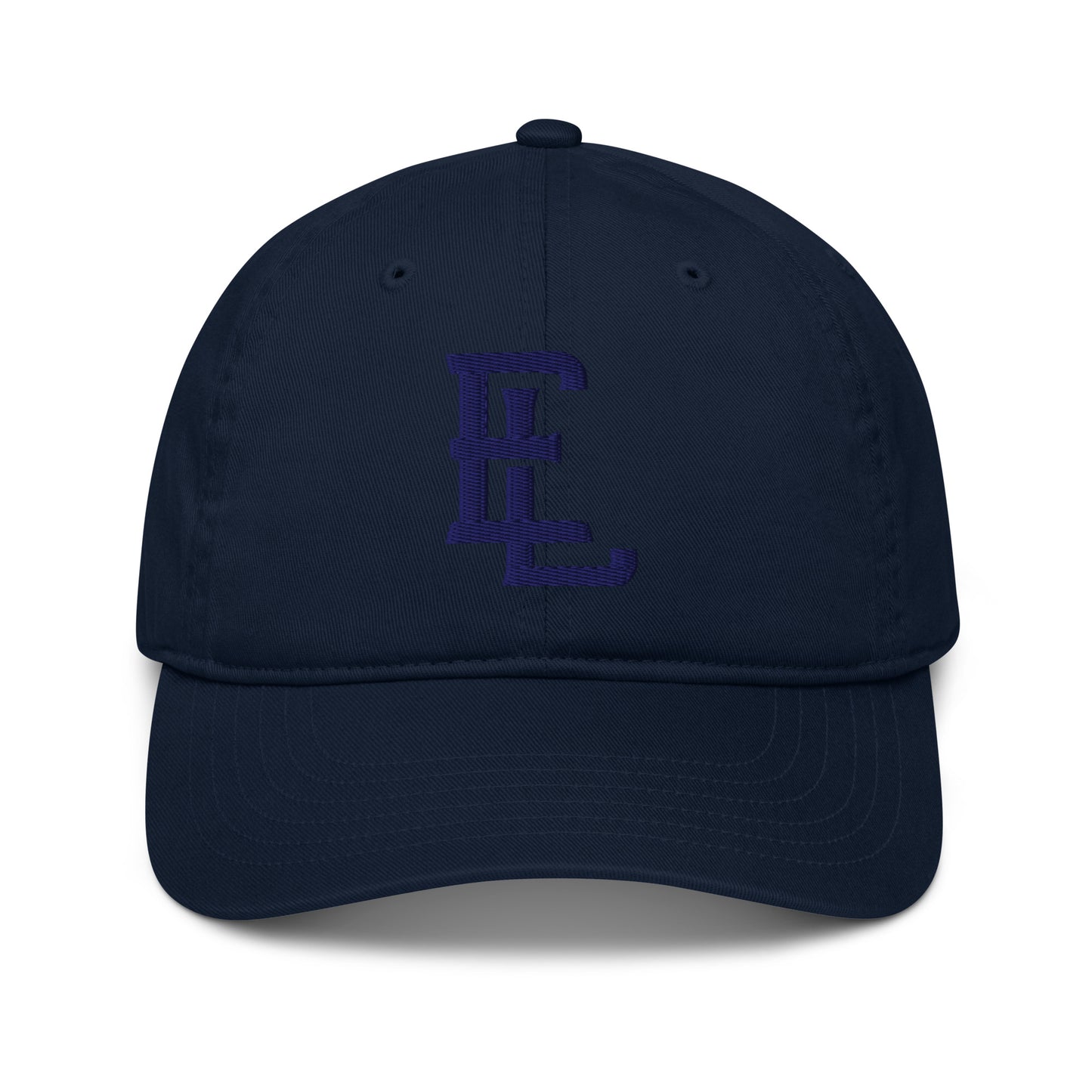 "EL" Organic Baseball Cap | E Luna Brand ESSENTIAL | 2 Navy Thread Logos
