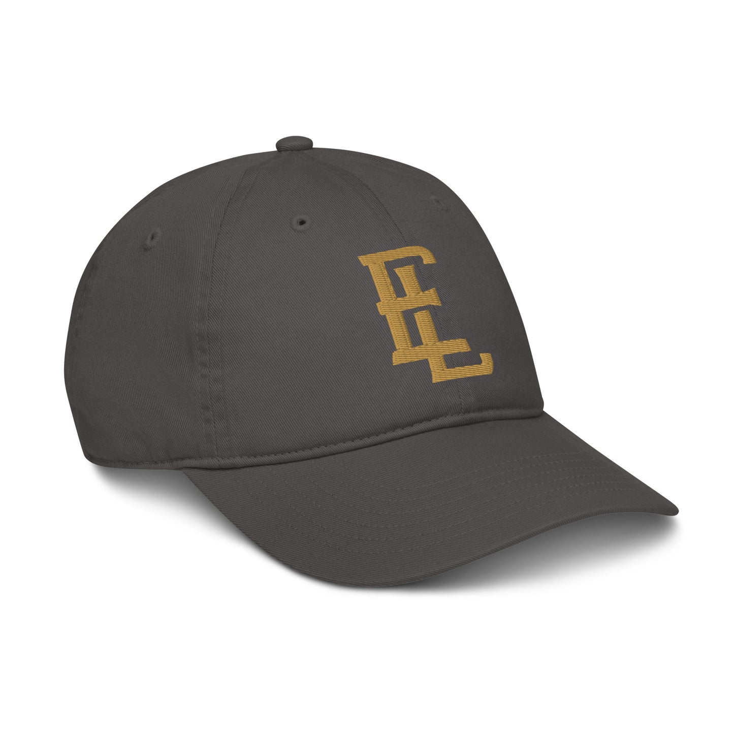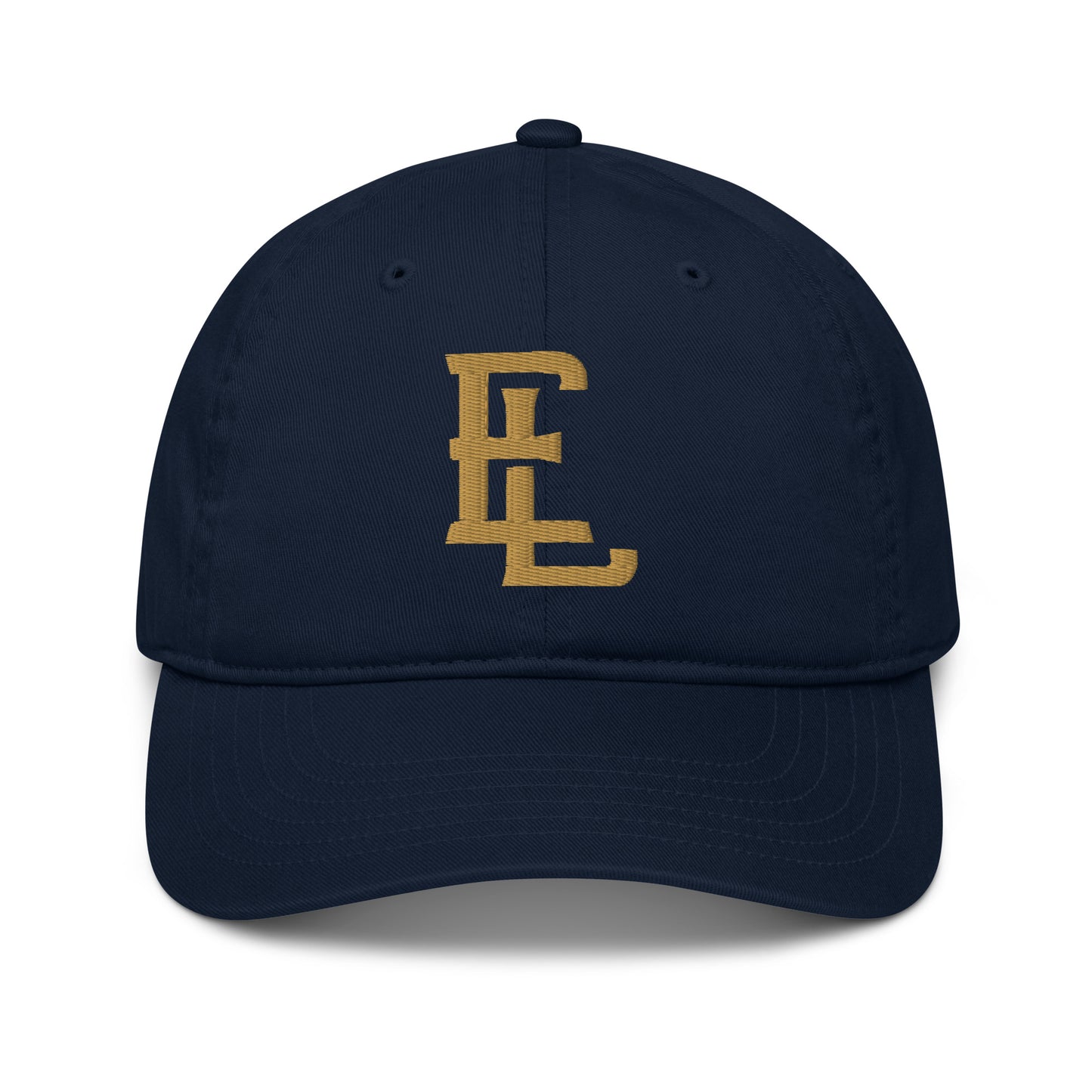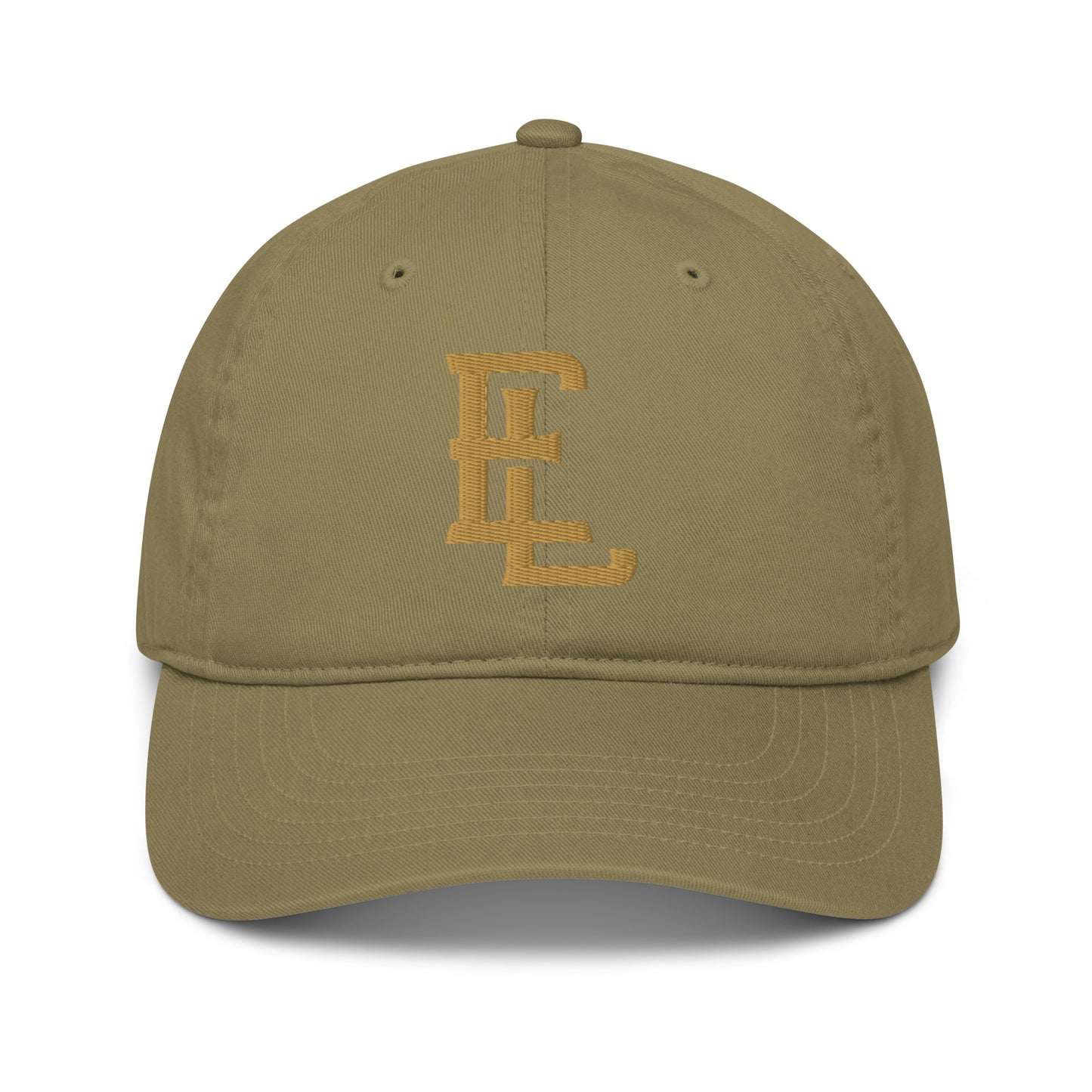 "EL" Organic Baseball Cap | E Luna Brand ESSENTIAL | 2 Old Gold Thread Logos