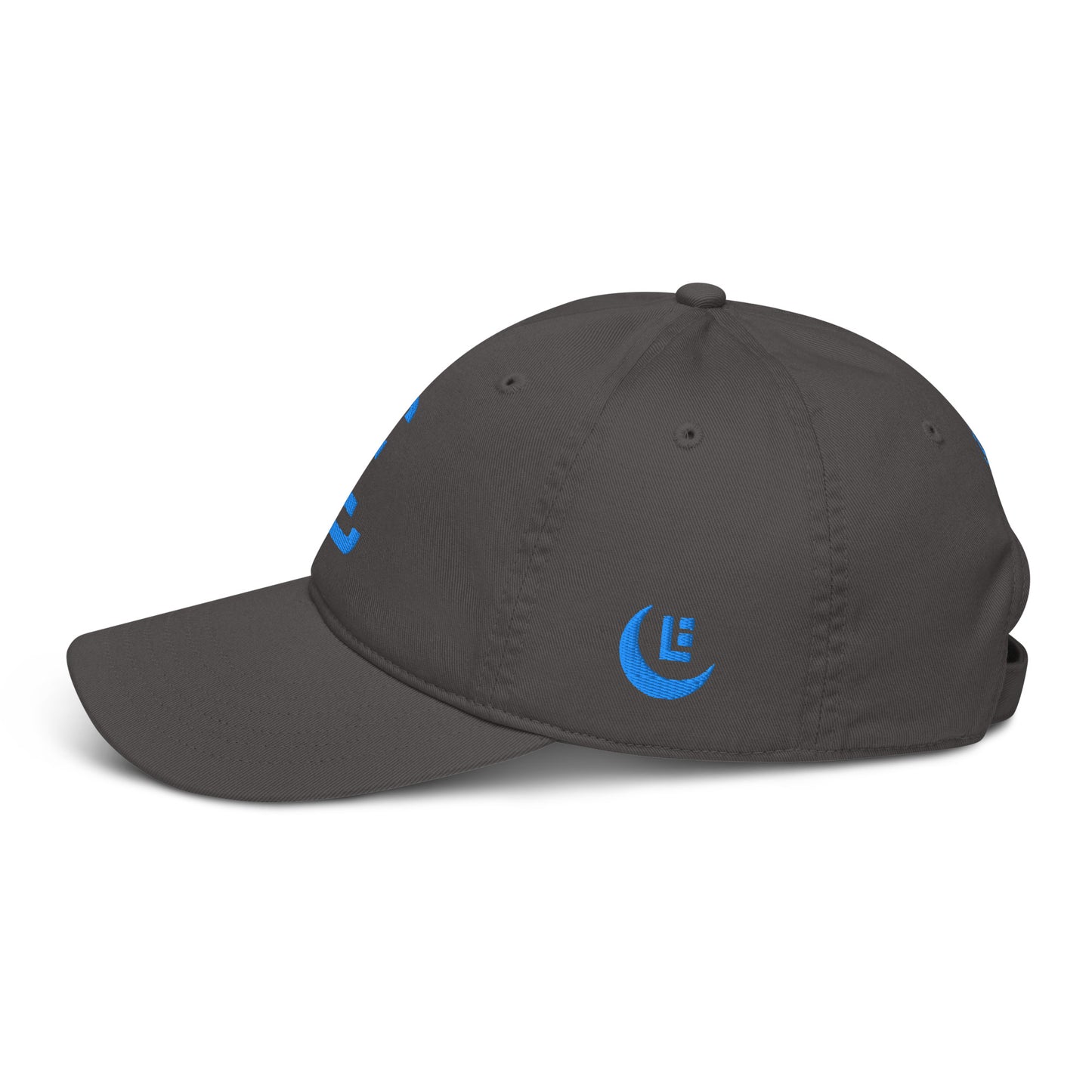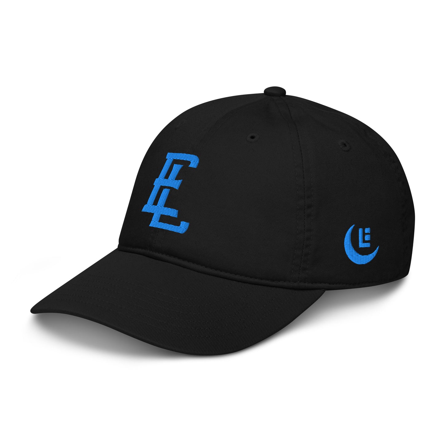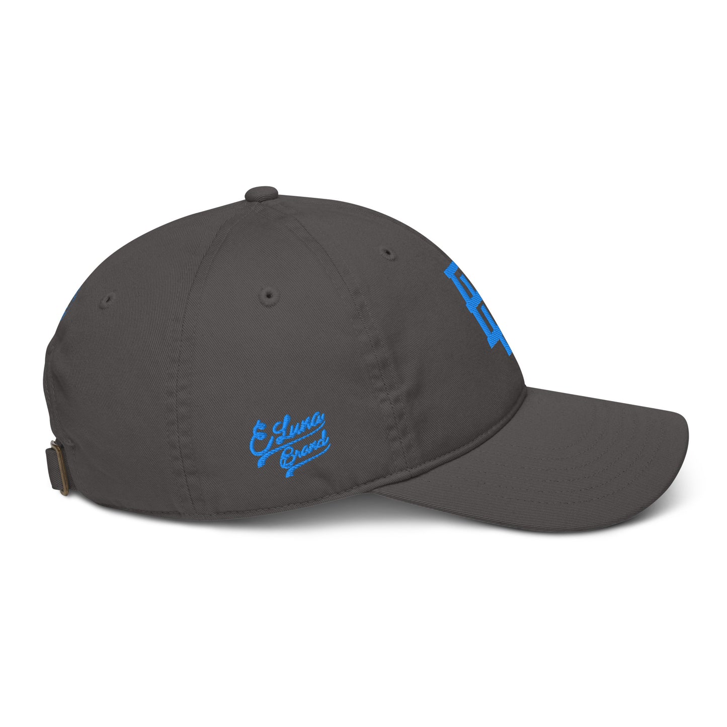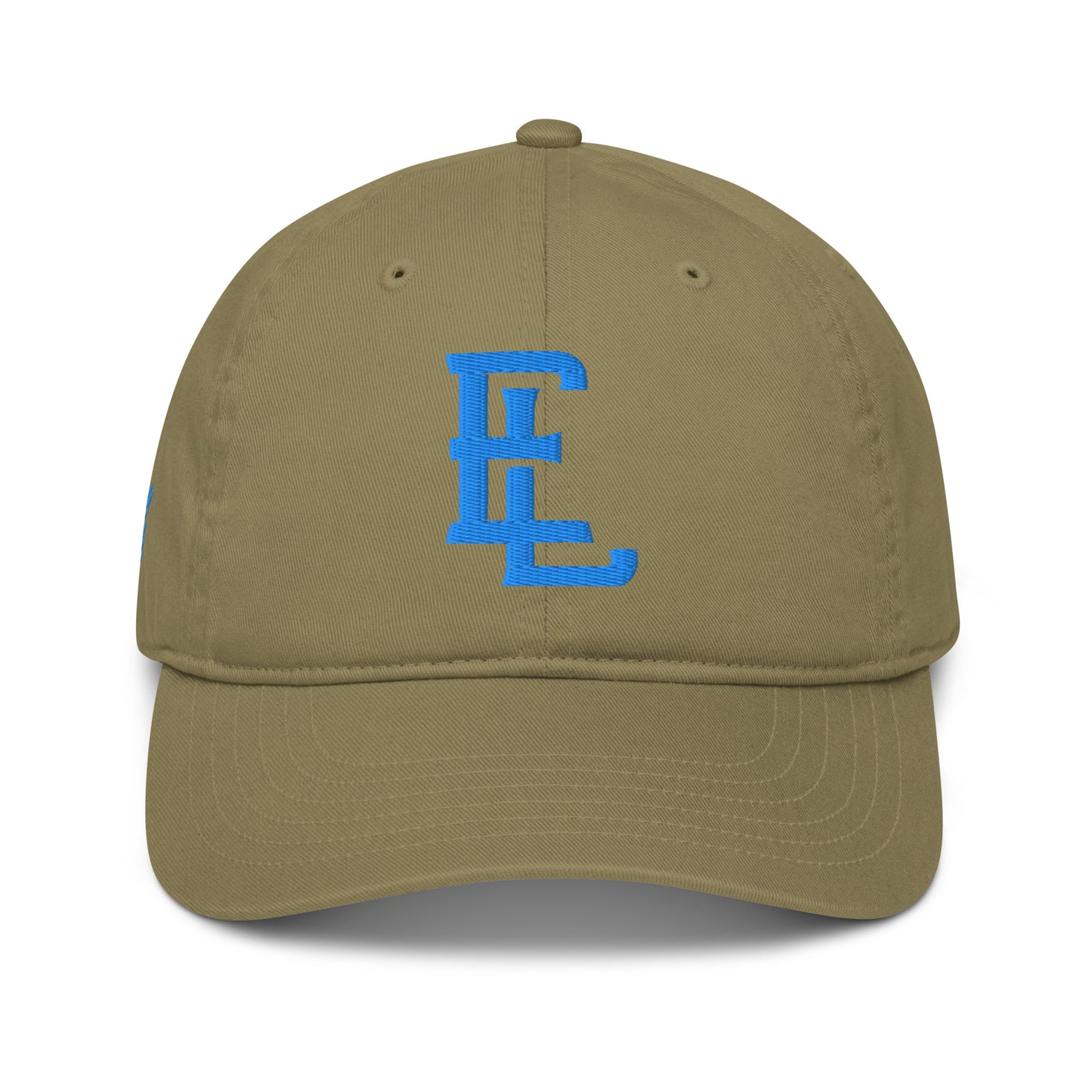 "EL" Organic Baseball Cap | E Luna Brand PREMIUM | 4 Aqua/Teal Thread Logos | 3D Puff Edition