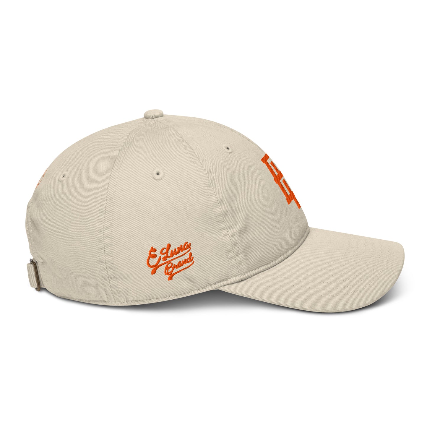 "EL" Organic Baseball Cap | E Luna Brand PREMIUM | 4 Orange Thread Logos | 3D Puff Edition