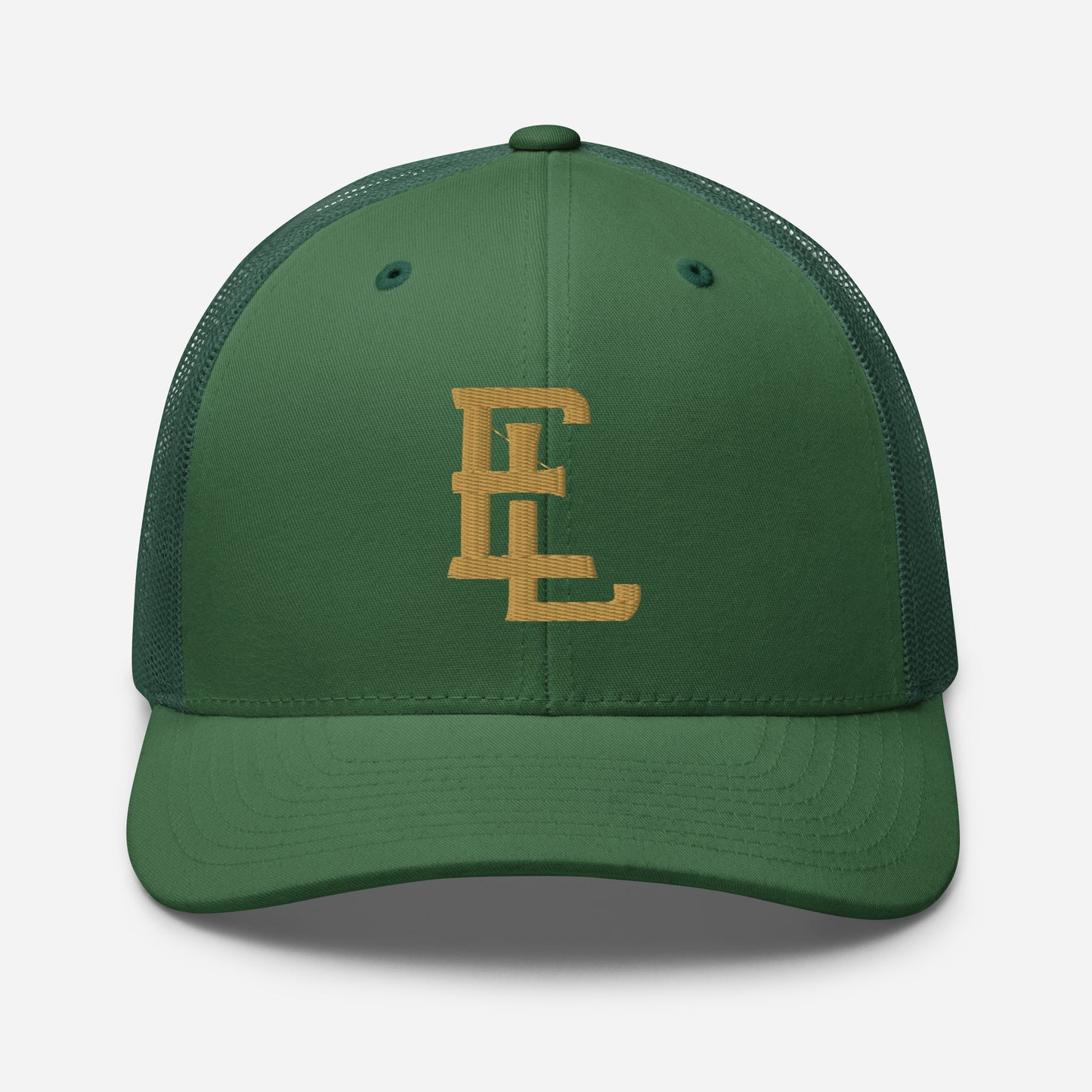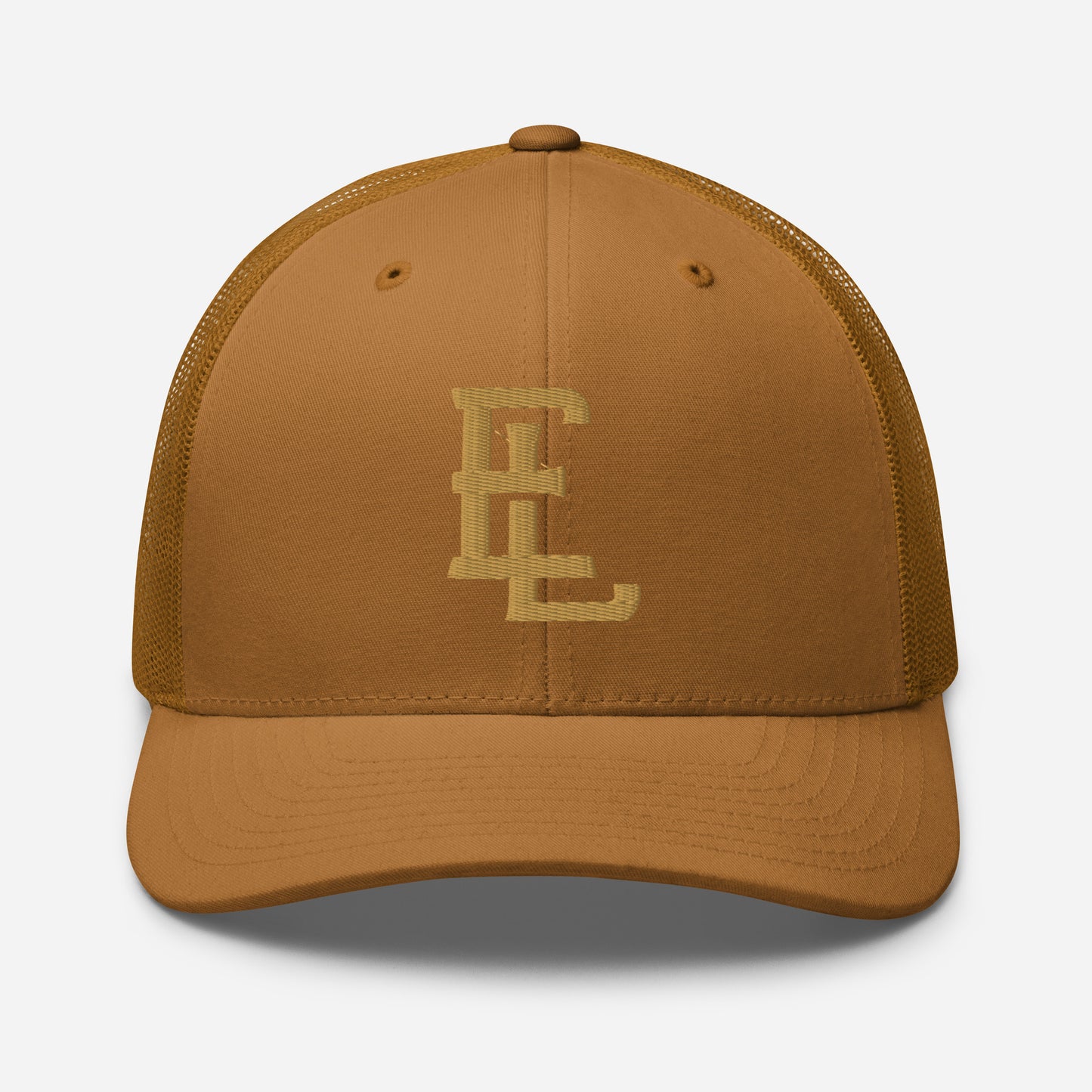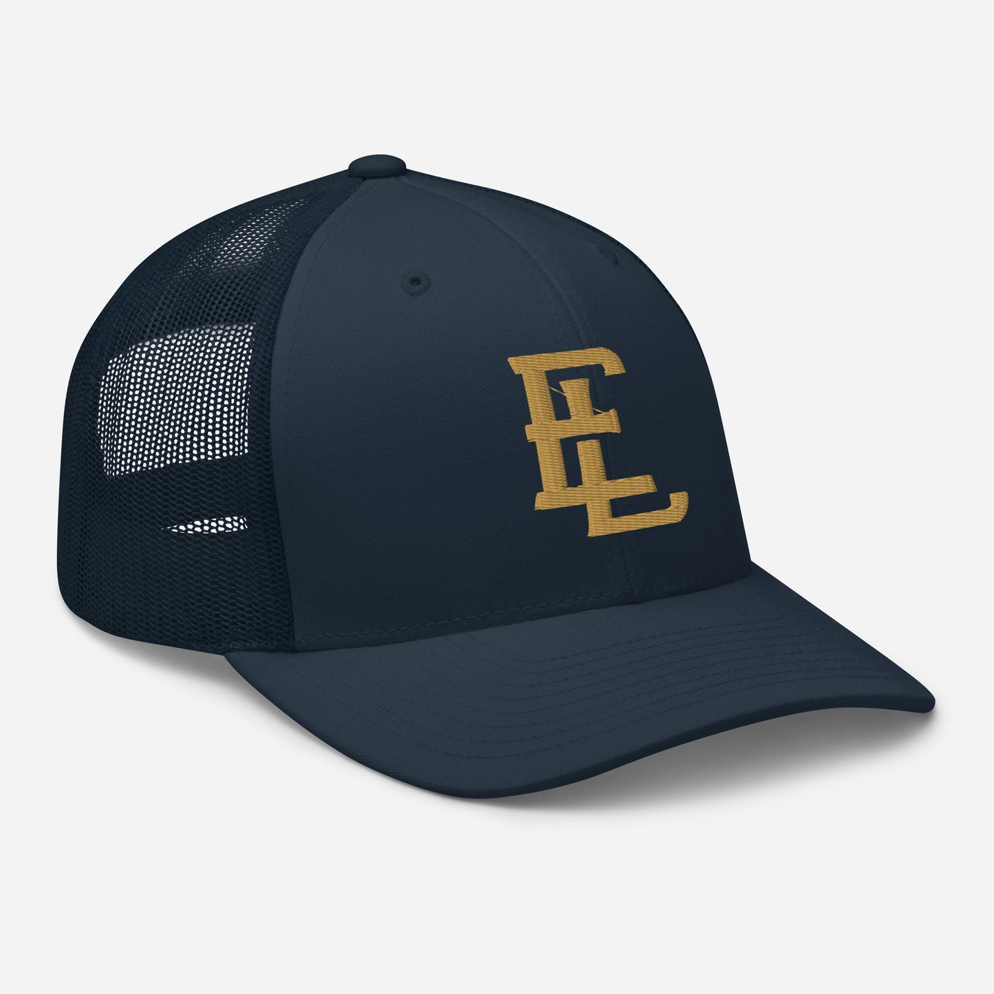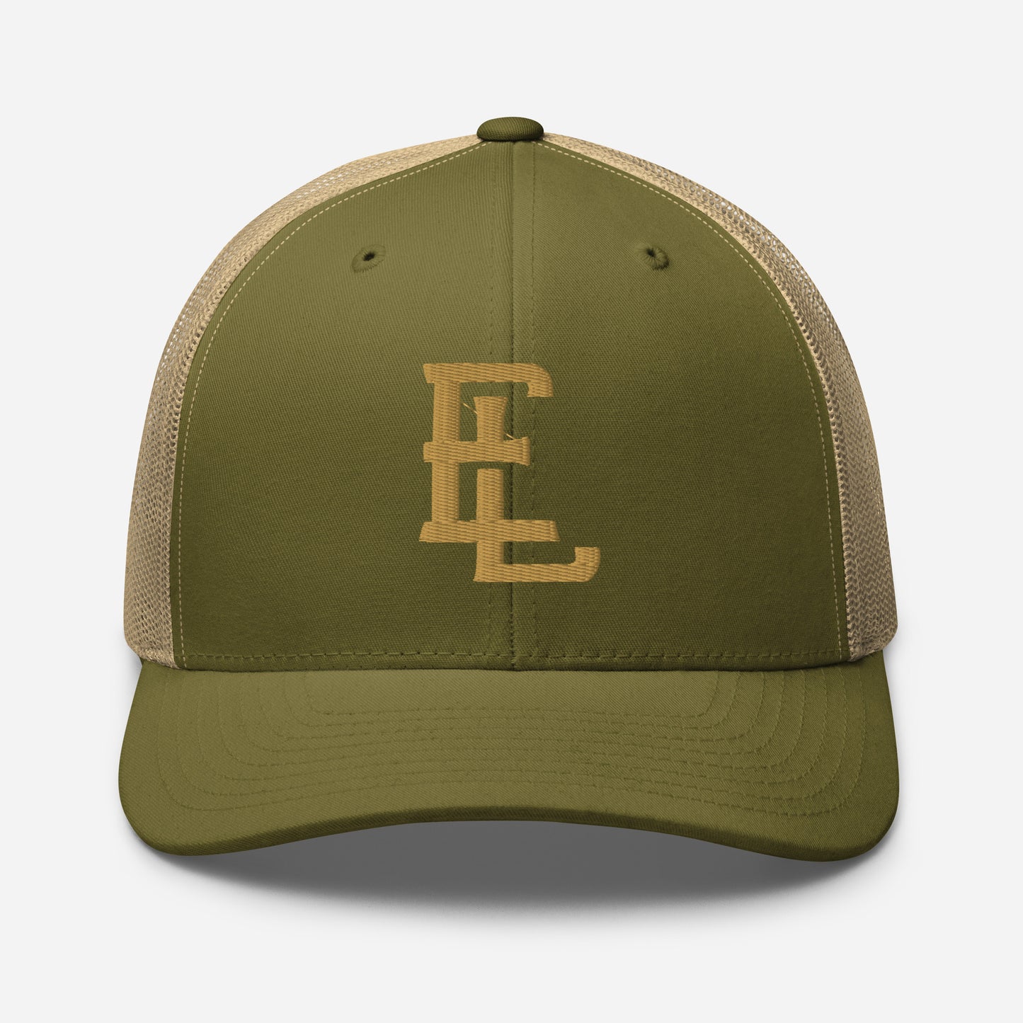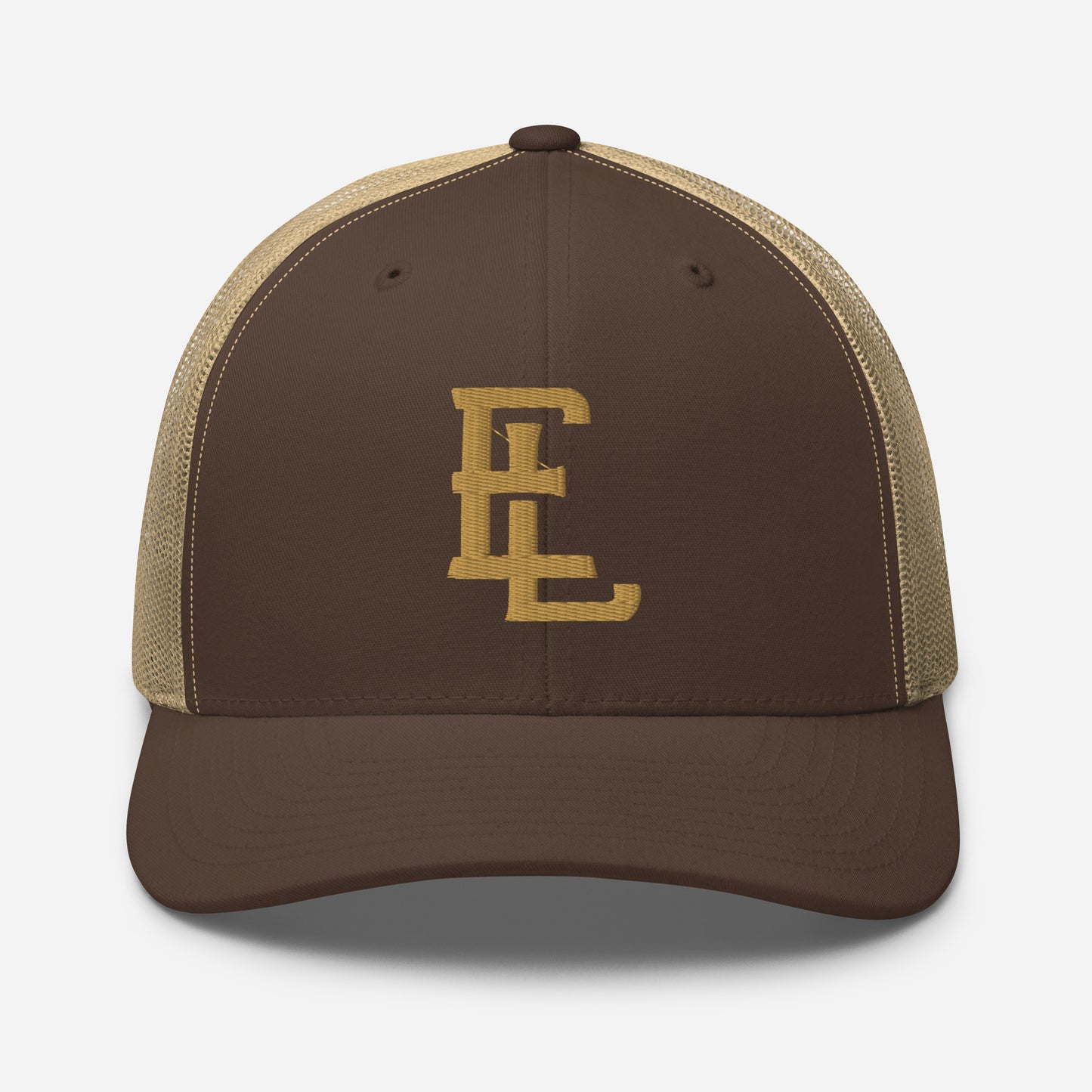 "EL" Retro Trucker Hat | E Luna Brand CLASSIC | 1 Old Gold Thread Logo | 3D Puff Edition