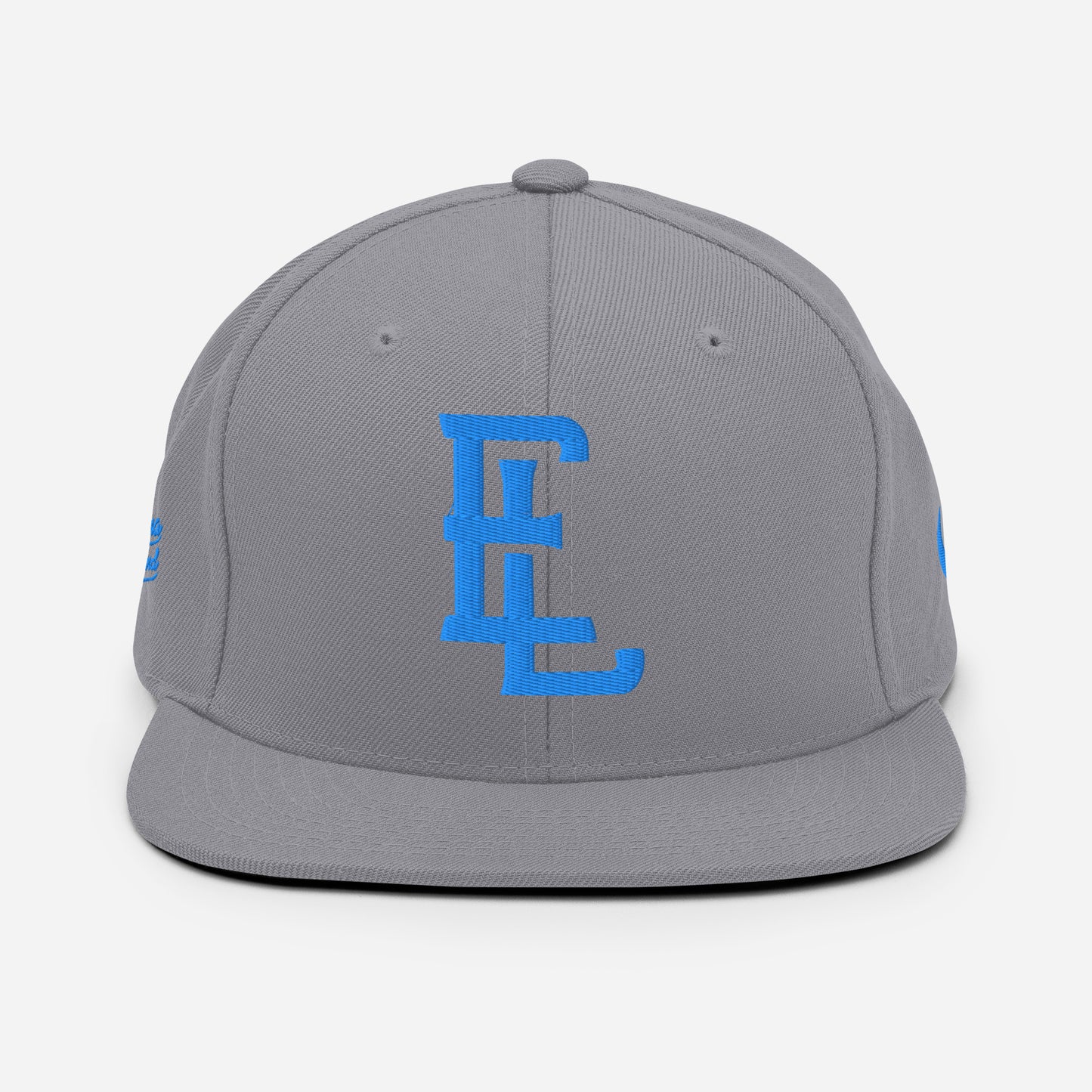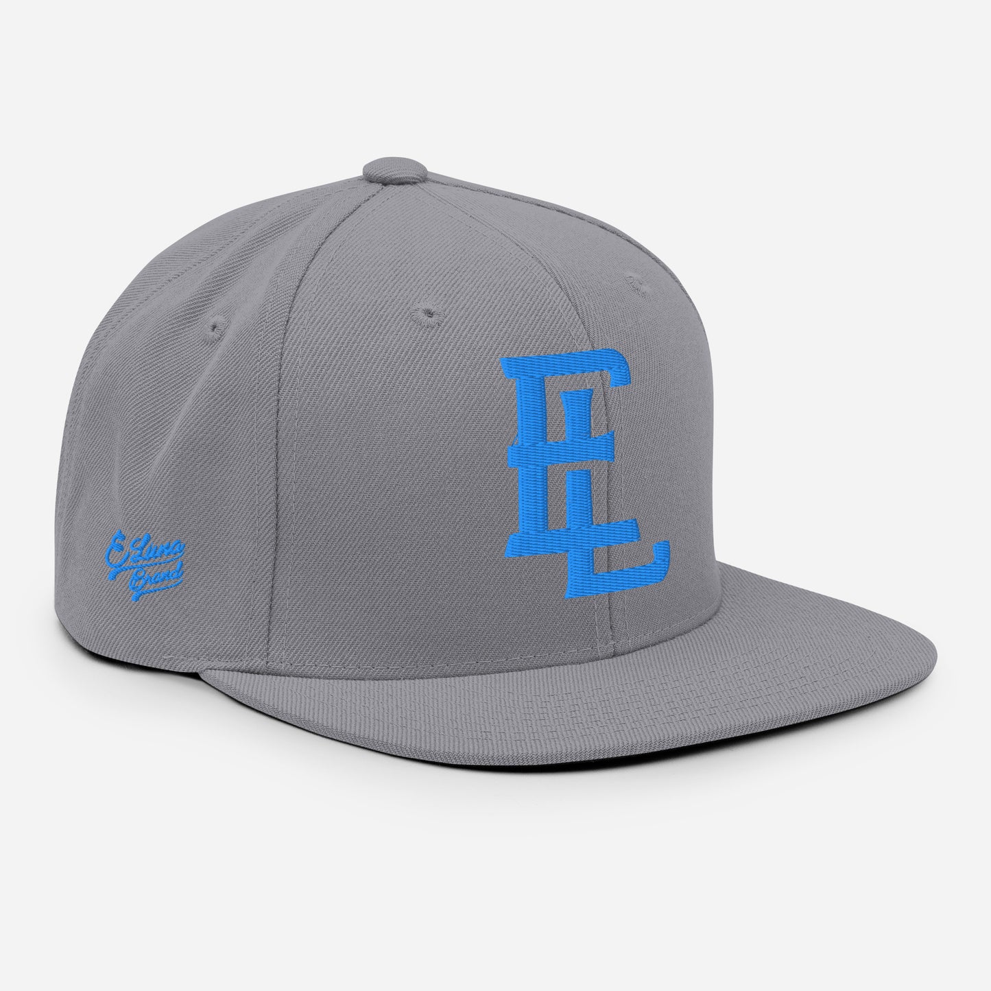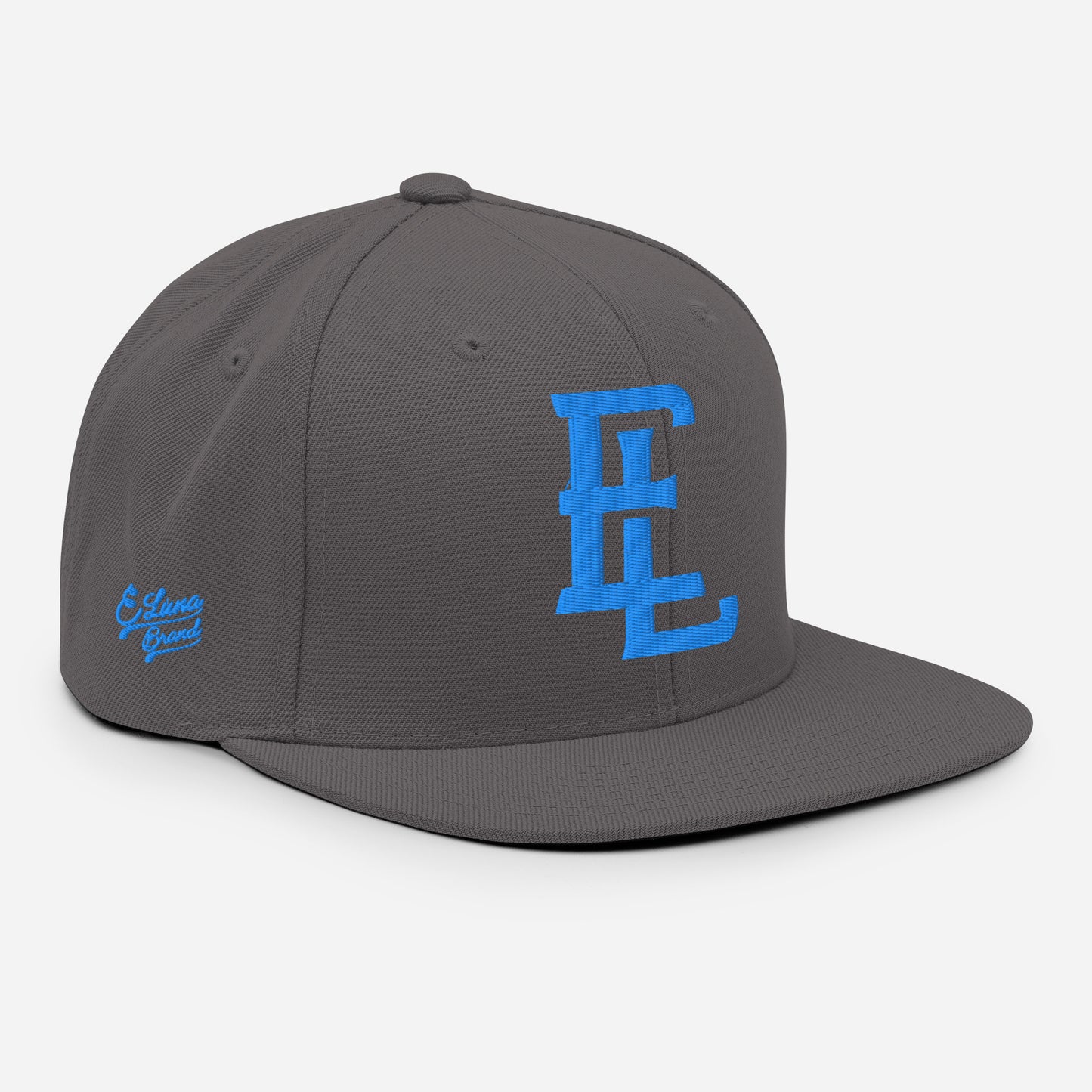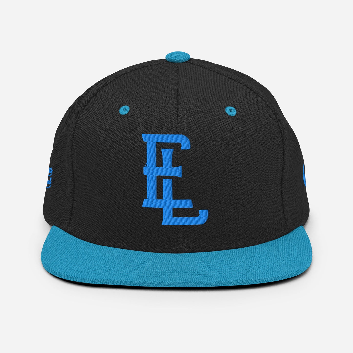"EL" Wool Blend Snapback | E Luna Brand PREMIUM | 4 Aqua/Teal Thread Logos | 3D Puff Edition