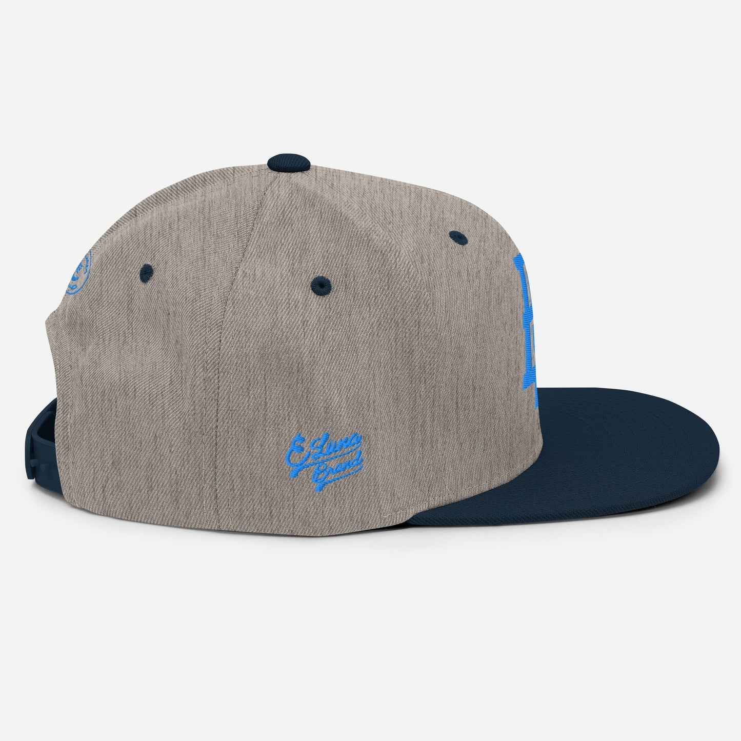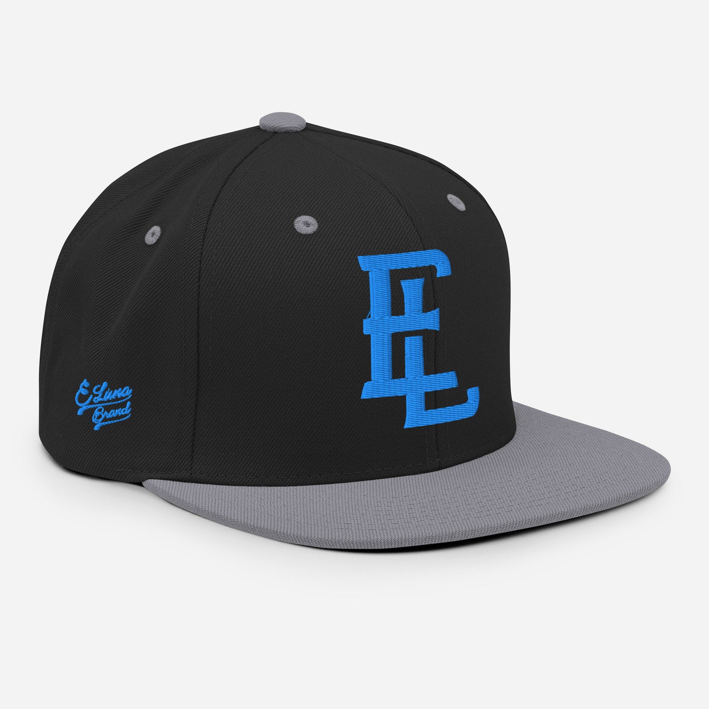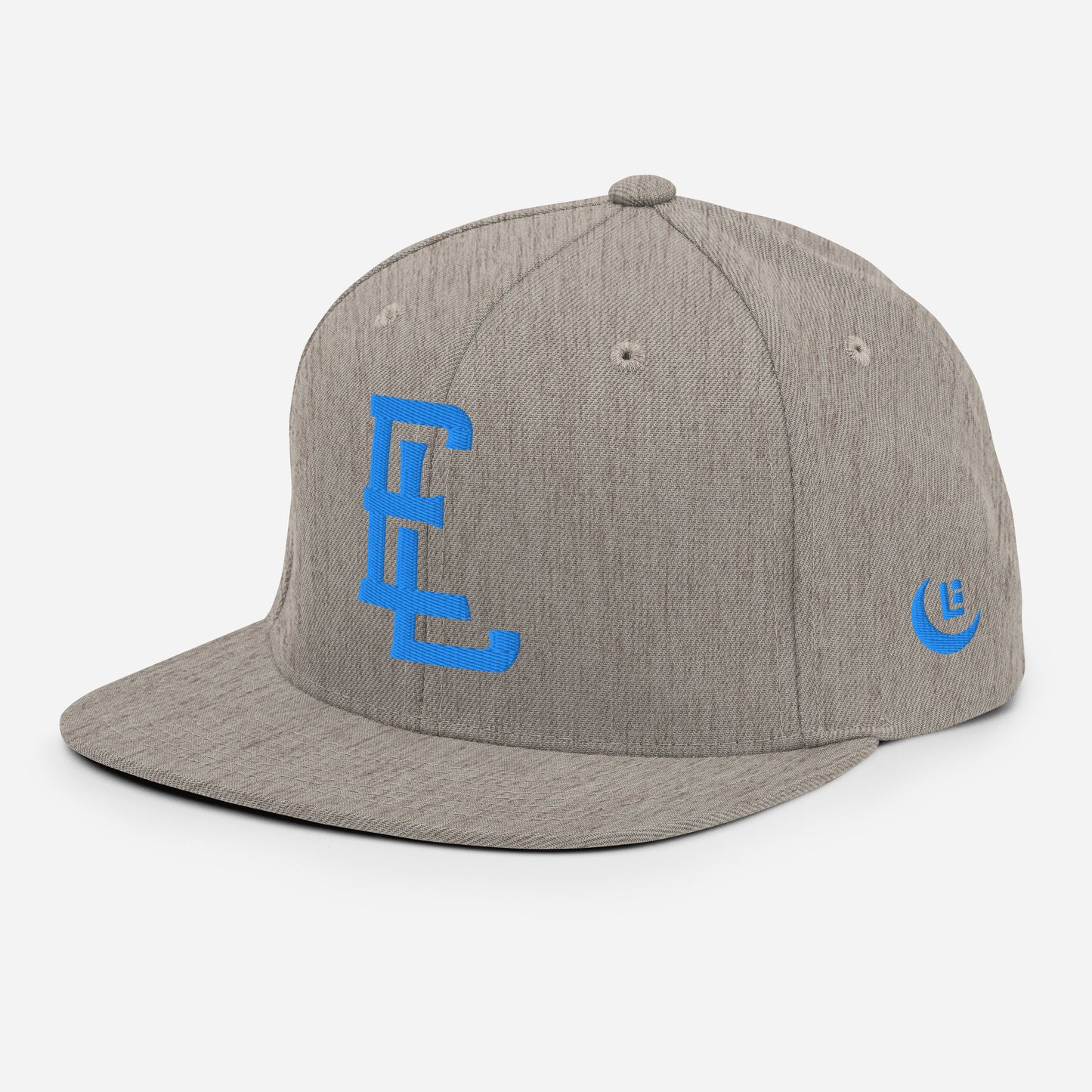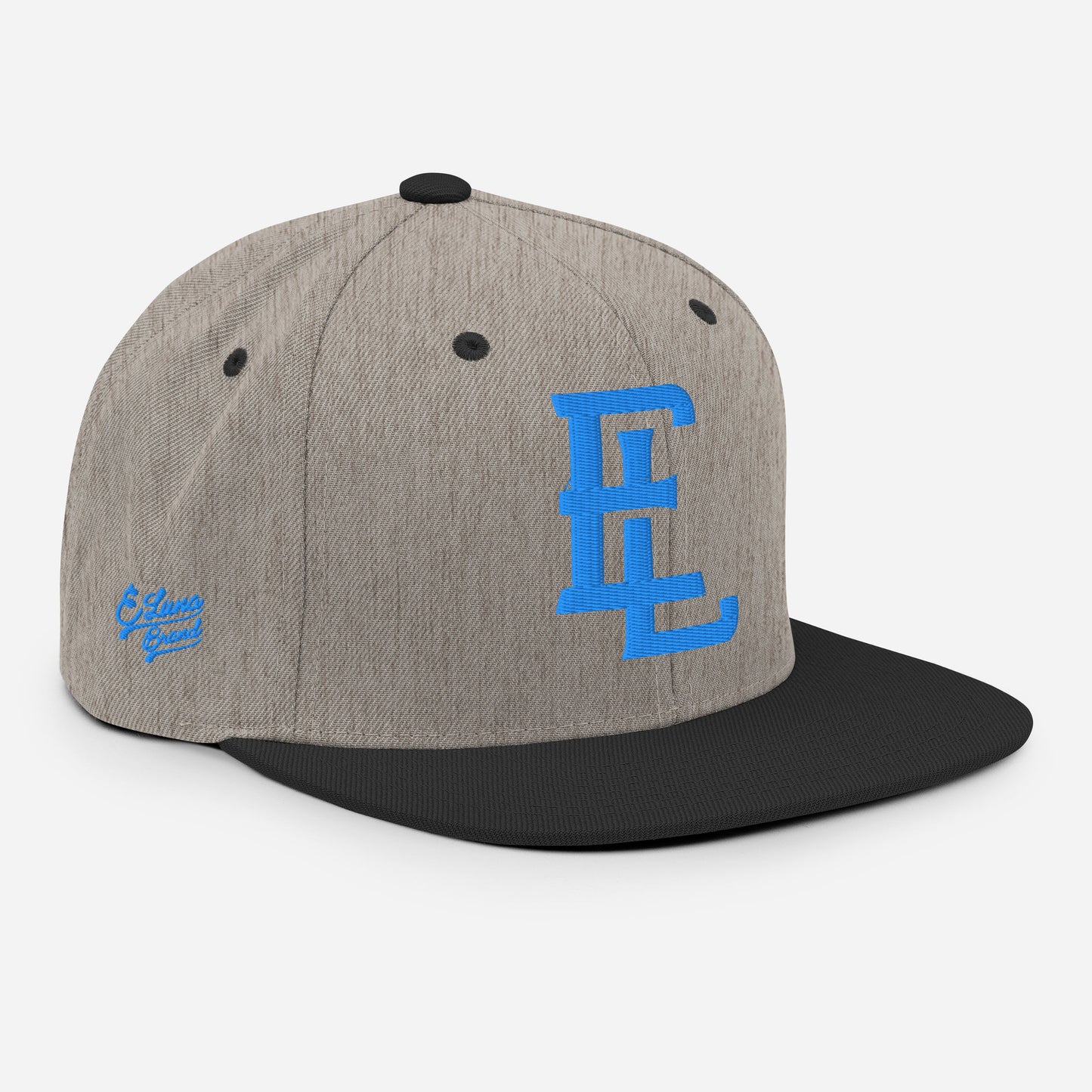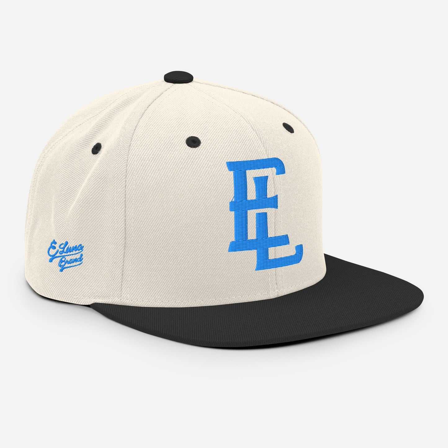 "EL" Wool Blend Snapback | E Luna Brand PREMIUM | 4 Aqua/Teal Thread Logos | 3D Puff Edition